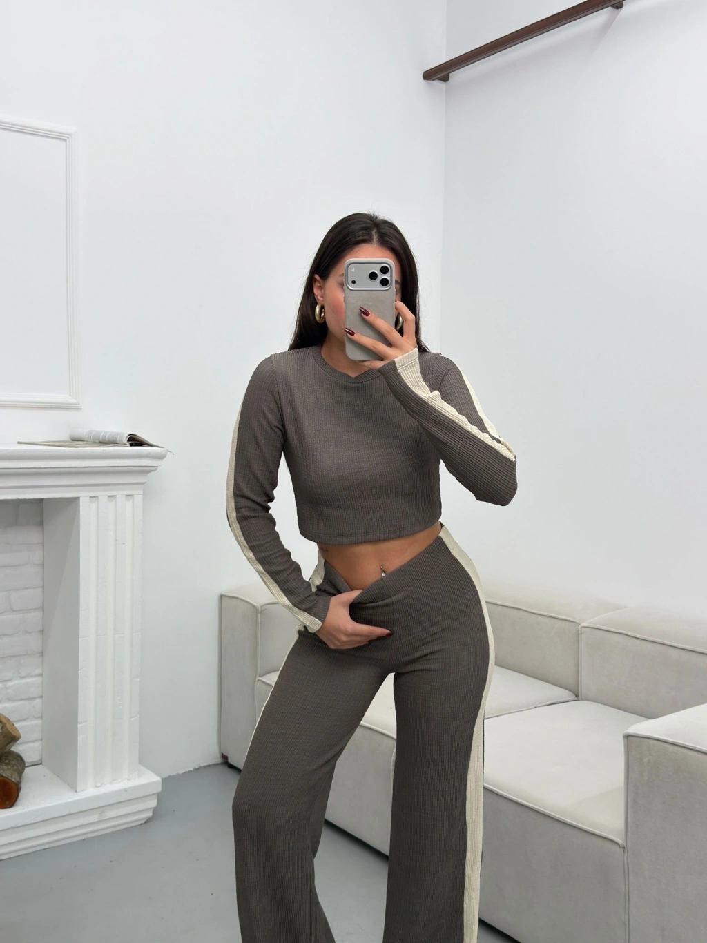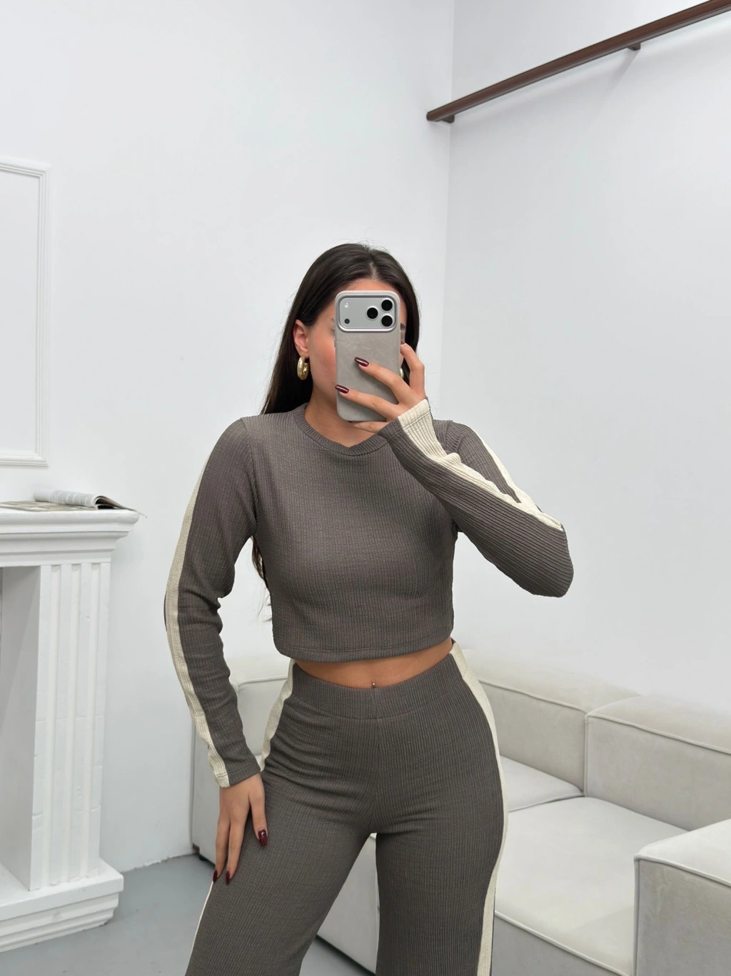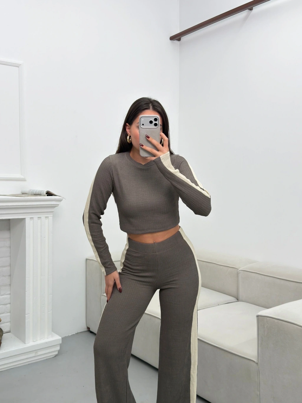 Garnili Triko Pantolon Takım - GRİ