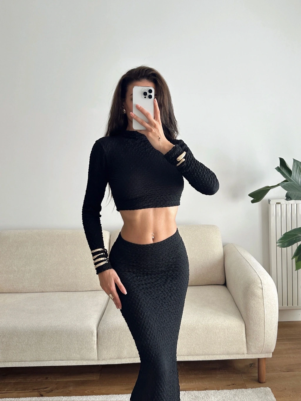 Gofre Crop & Etekli Takım - SİYAH