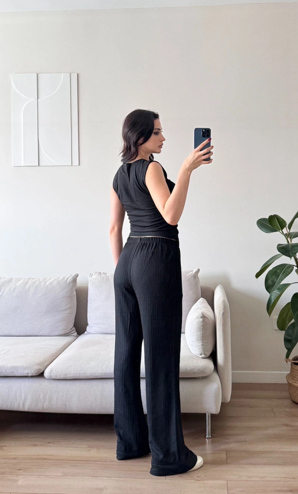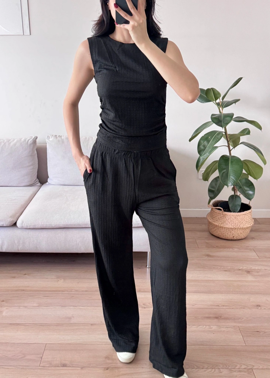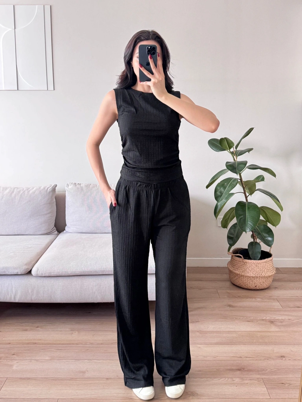 Gofre Yan Büzgü İkili Takım - SİYAH