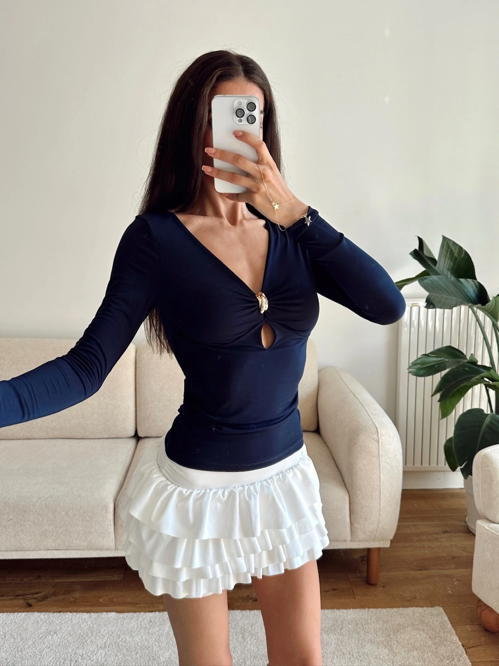 Göğüs Aksesuar Halka Crop - LACİVERT