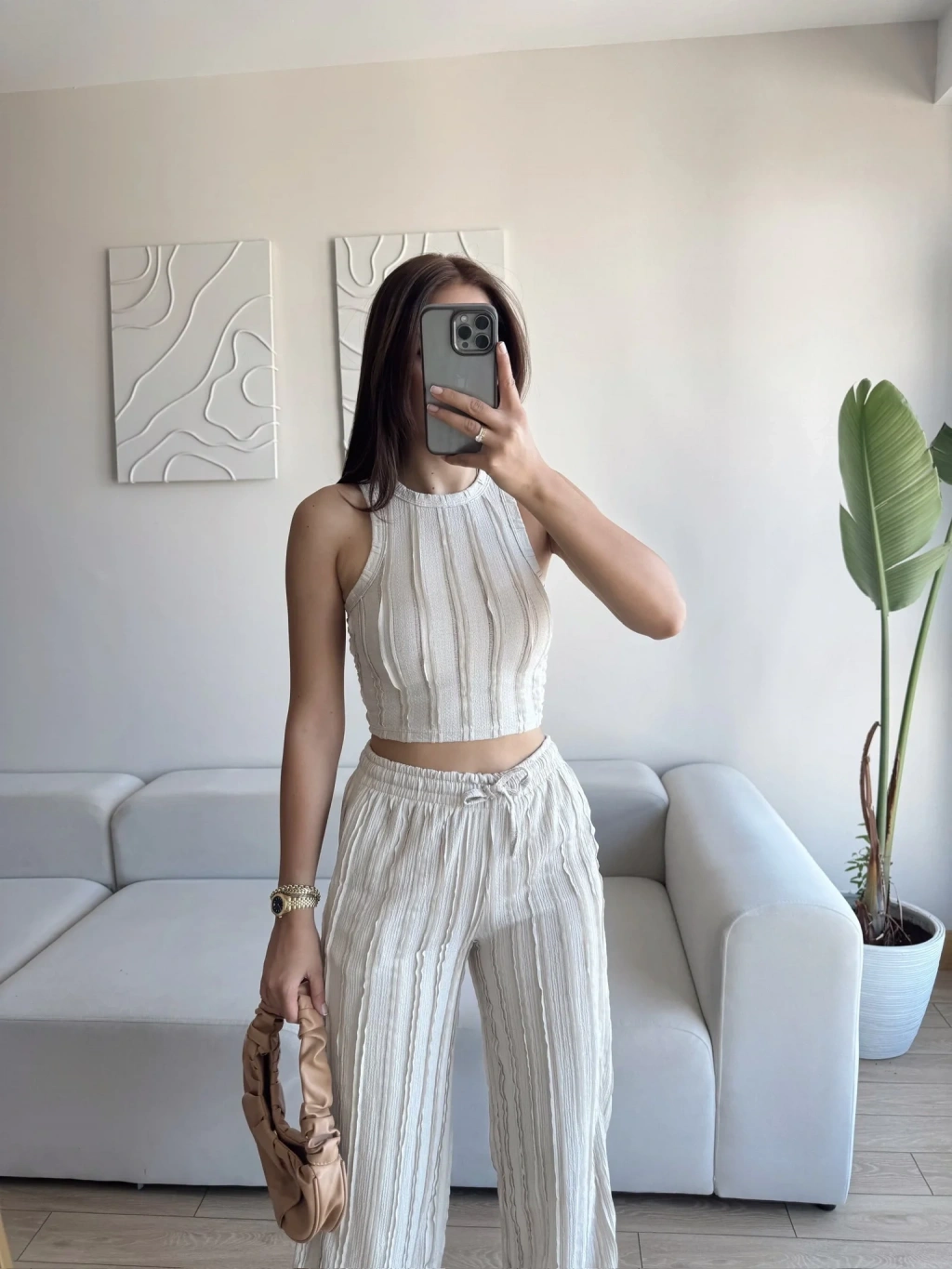 Halter Fitilli İkili Takım - BEJ