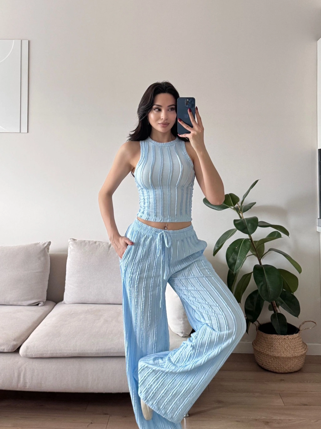 Halter Fitilli İkili Takım - MAVİ