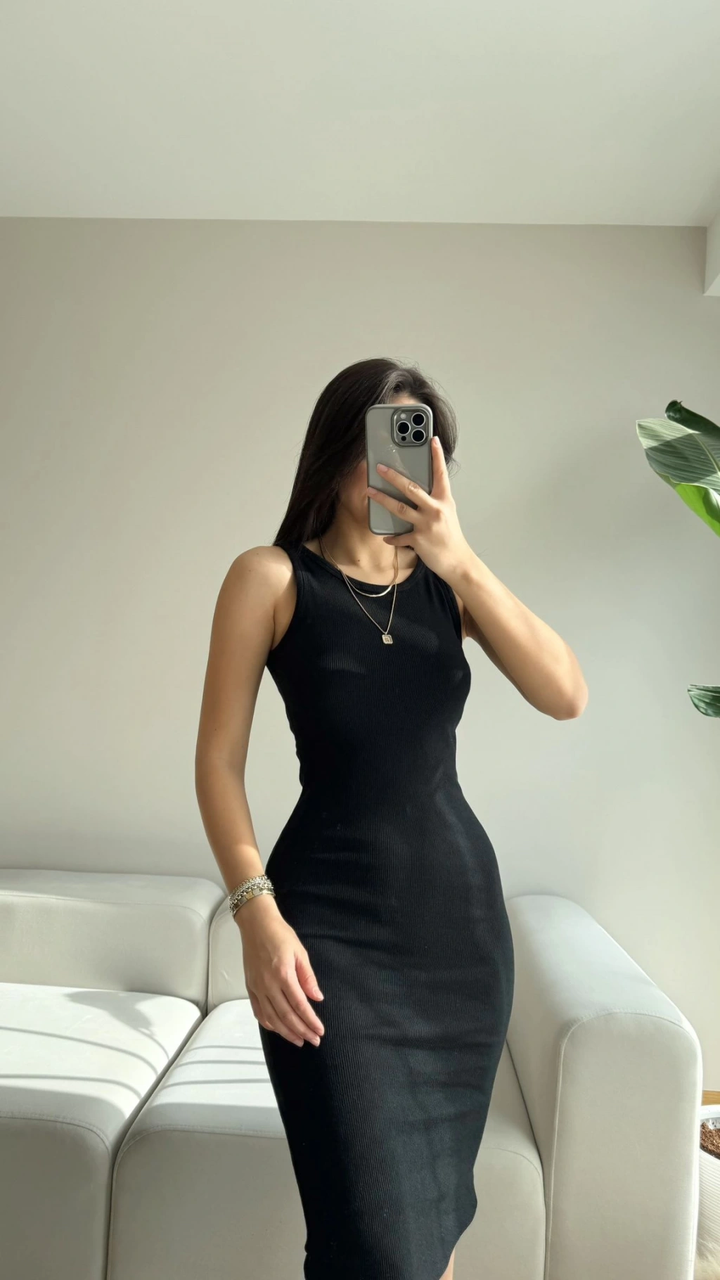 Halter Yaka Kaşkorse Basic Elbise-SİYAH