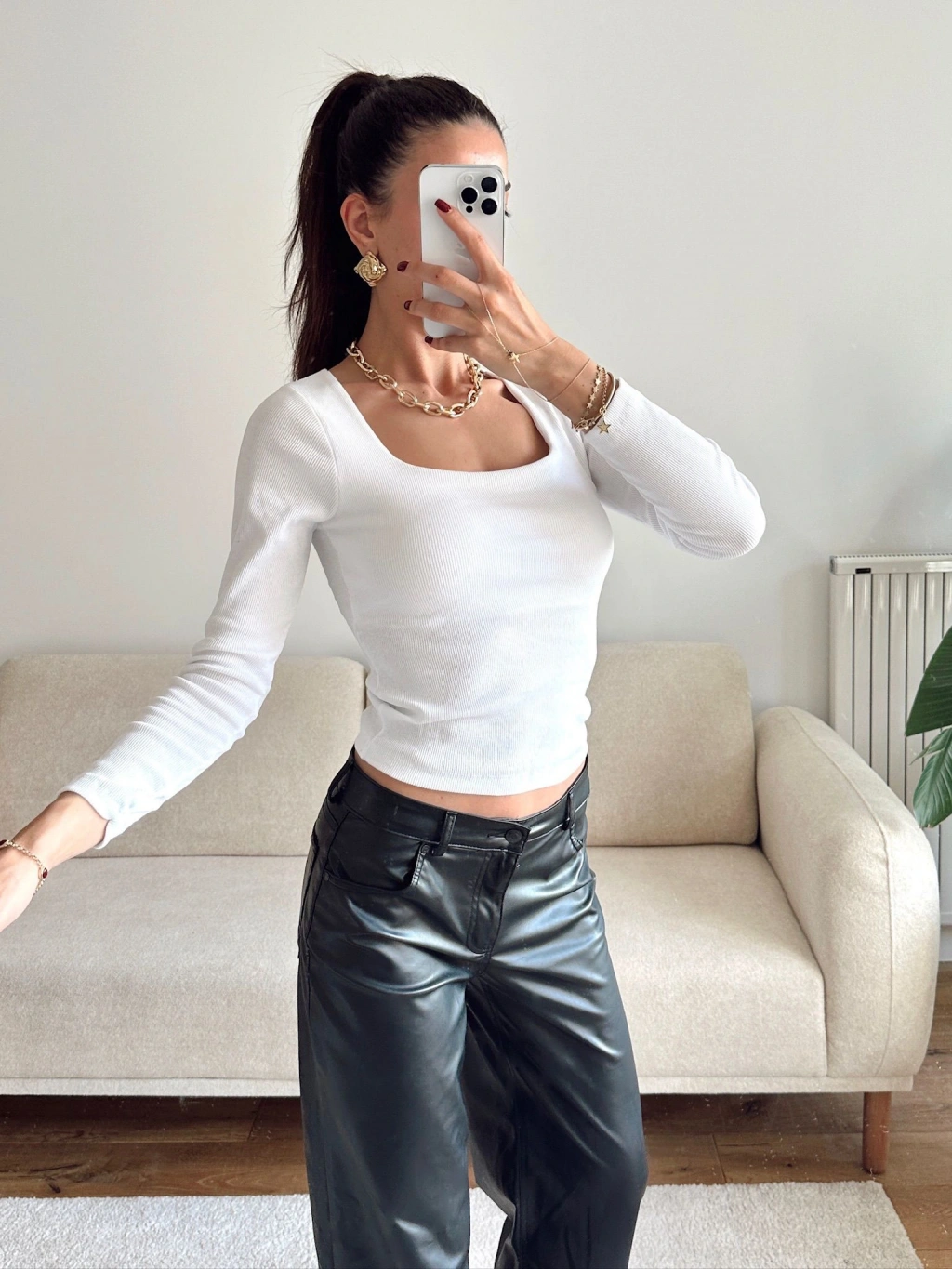Kaşkorse Kare Yaka Crop - BEYAZ
