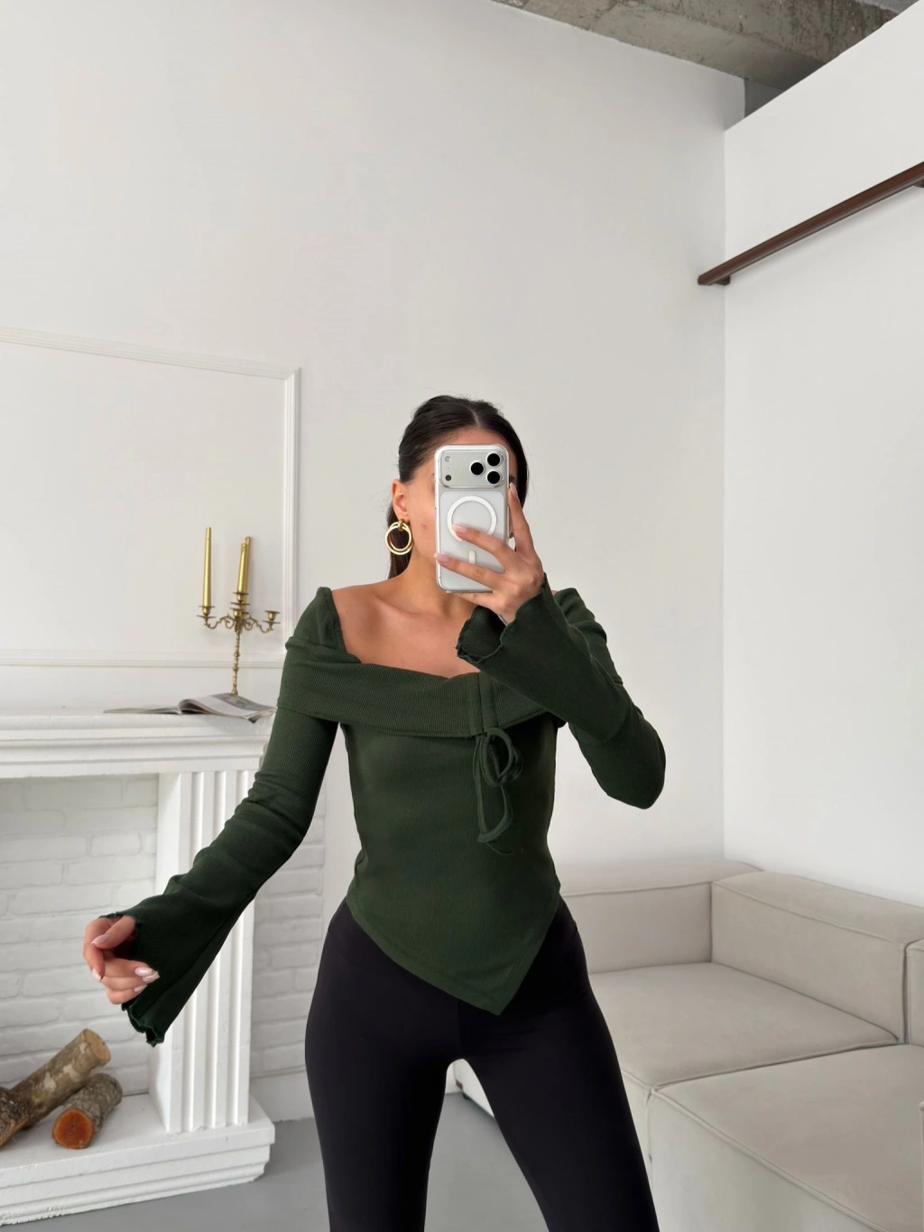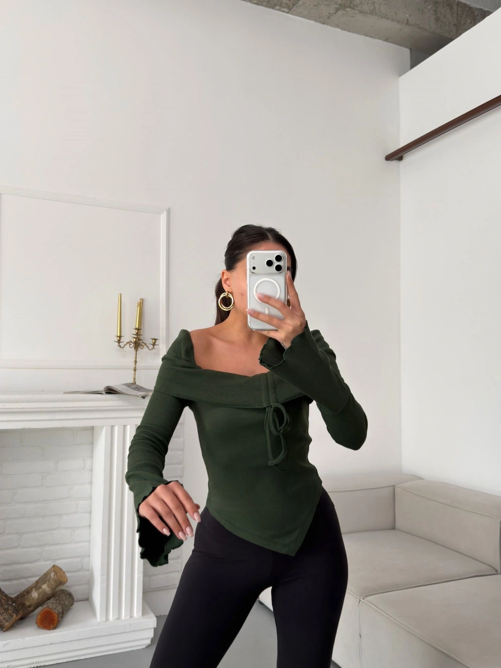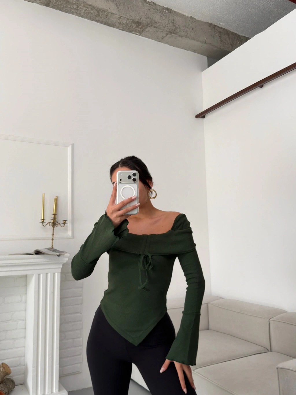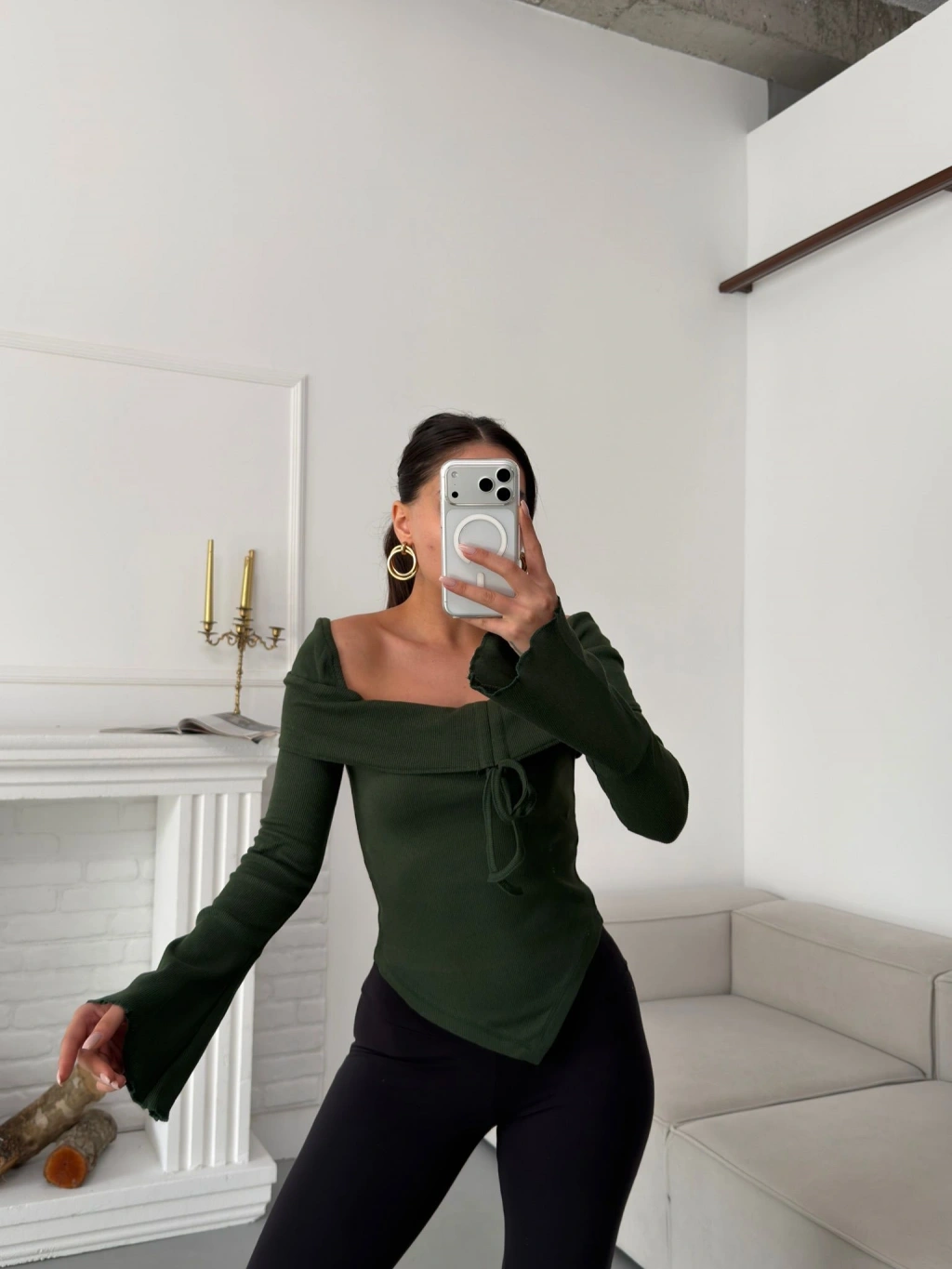 Kaşkorse Madonna Ön Büzgü Bluz - YEŞİL