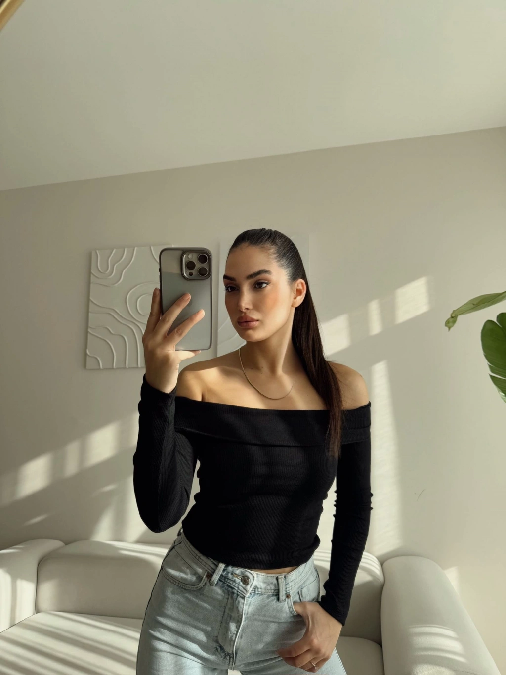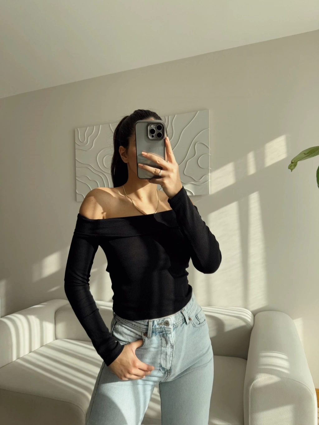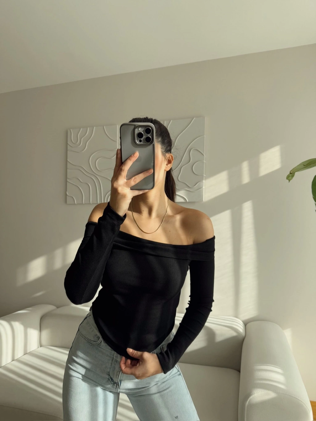 Kaşkorse Madonna Yaka Bluz - SİYAH