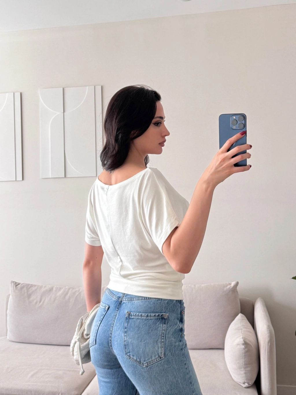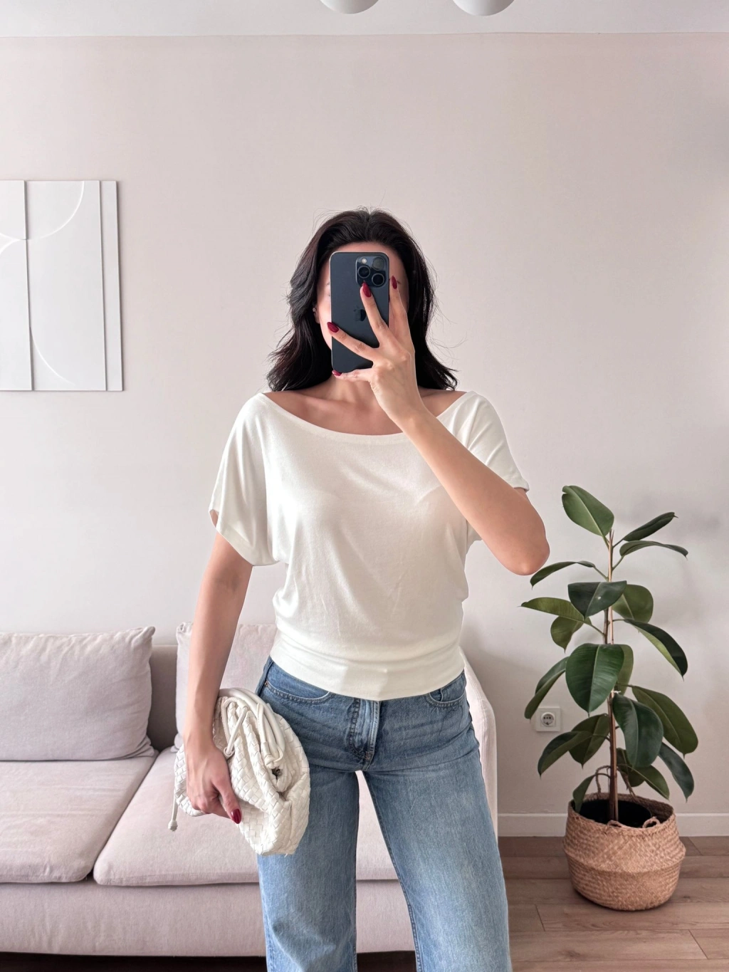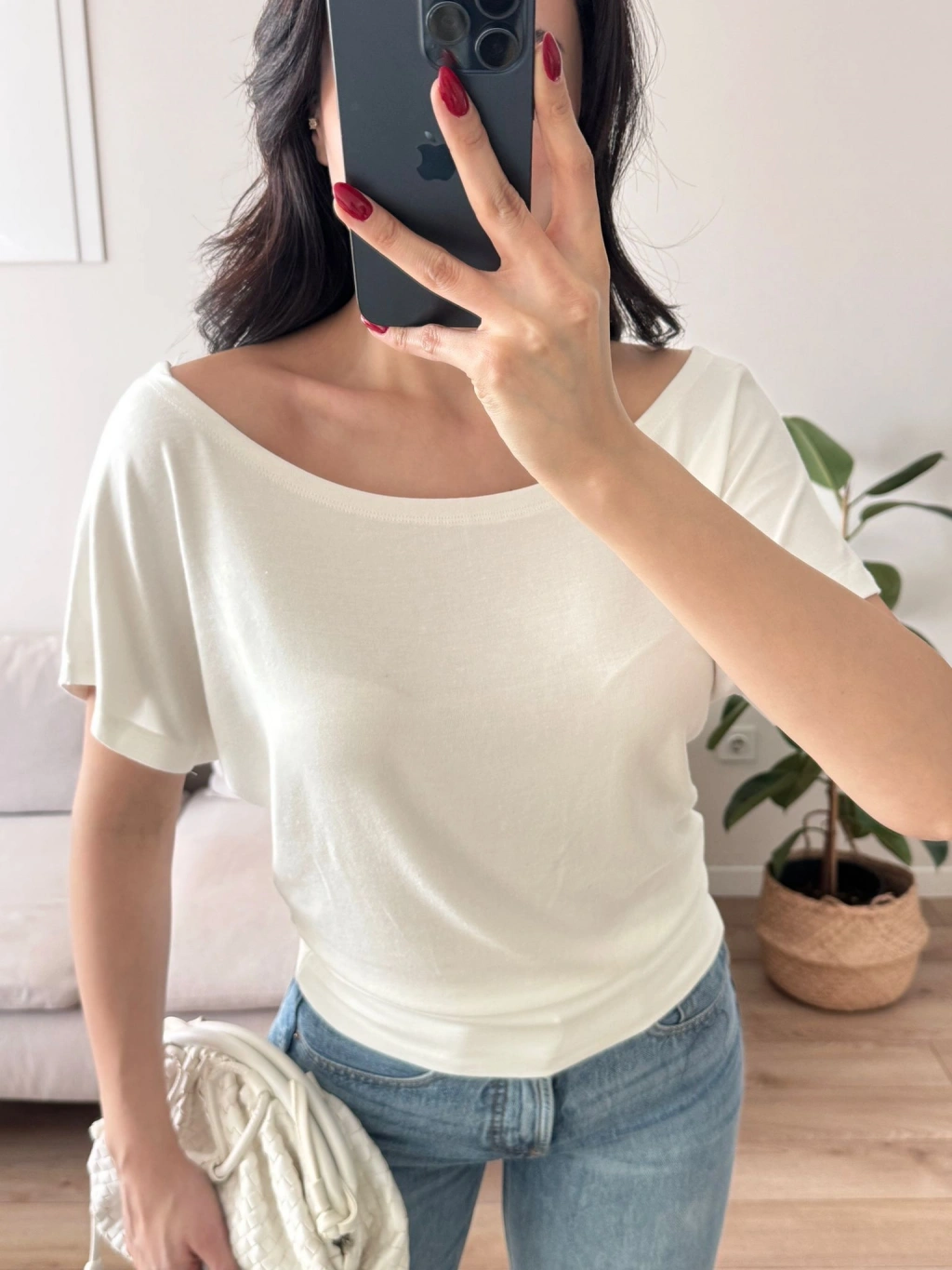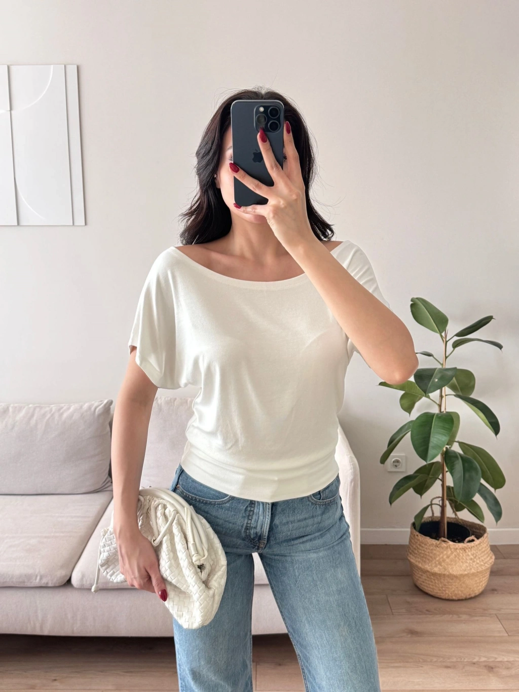 Kayık Yaka Bel Lastik Crop - BEYAZ