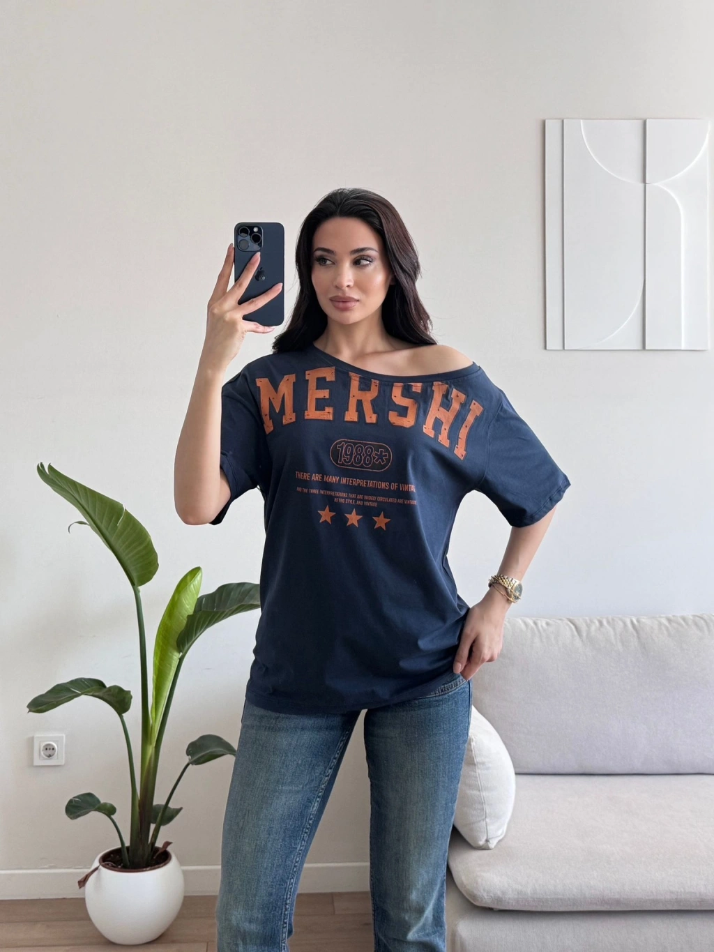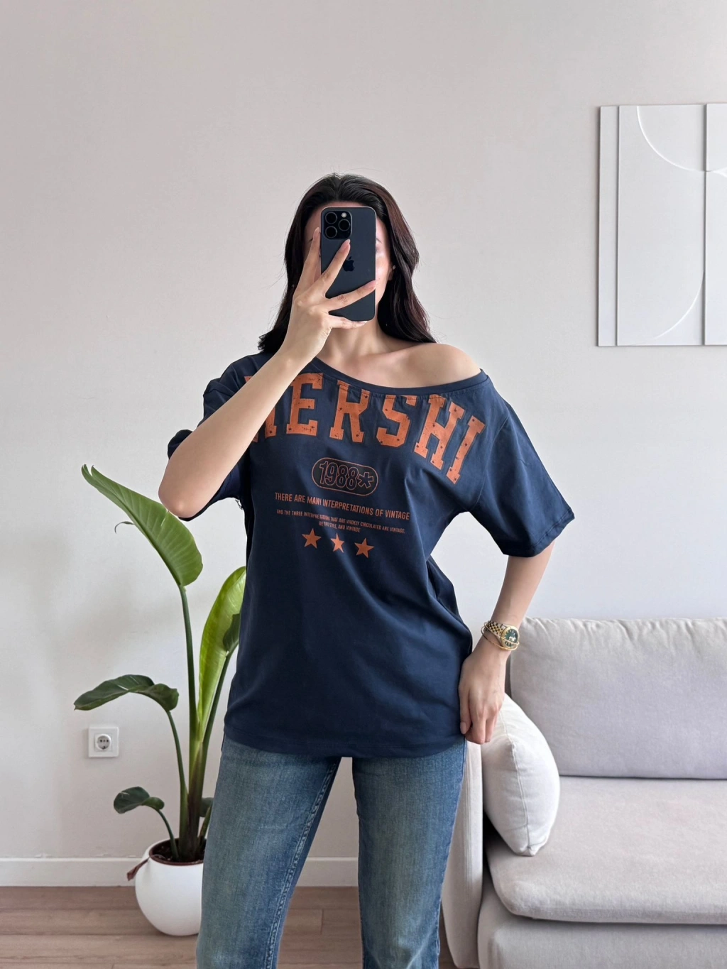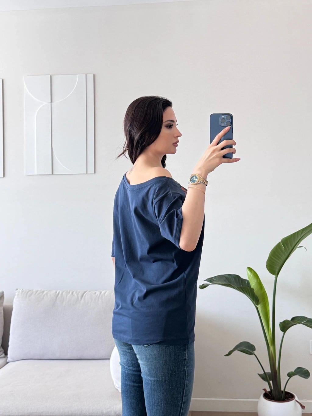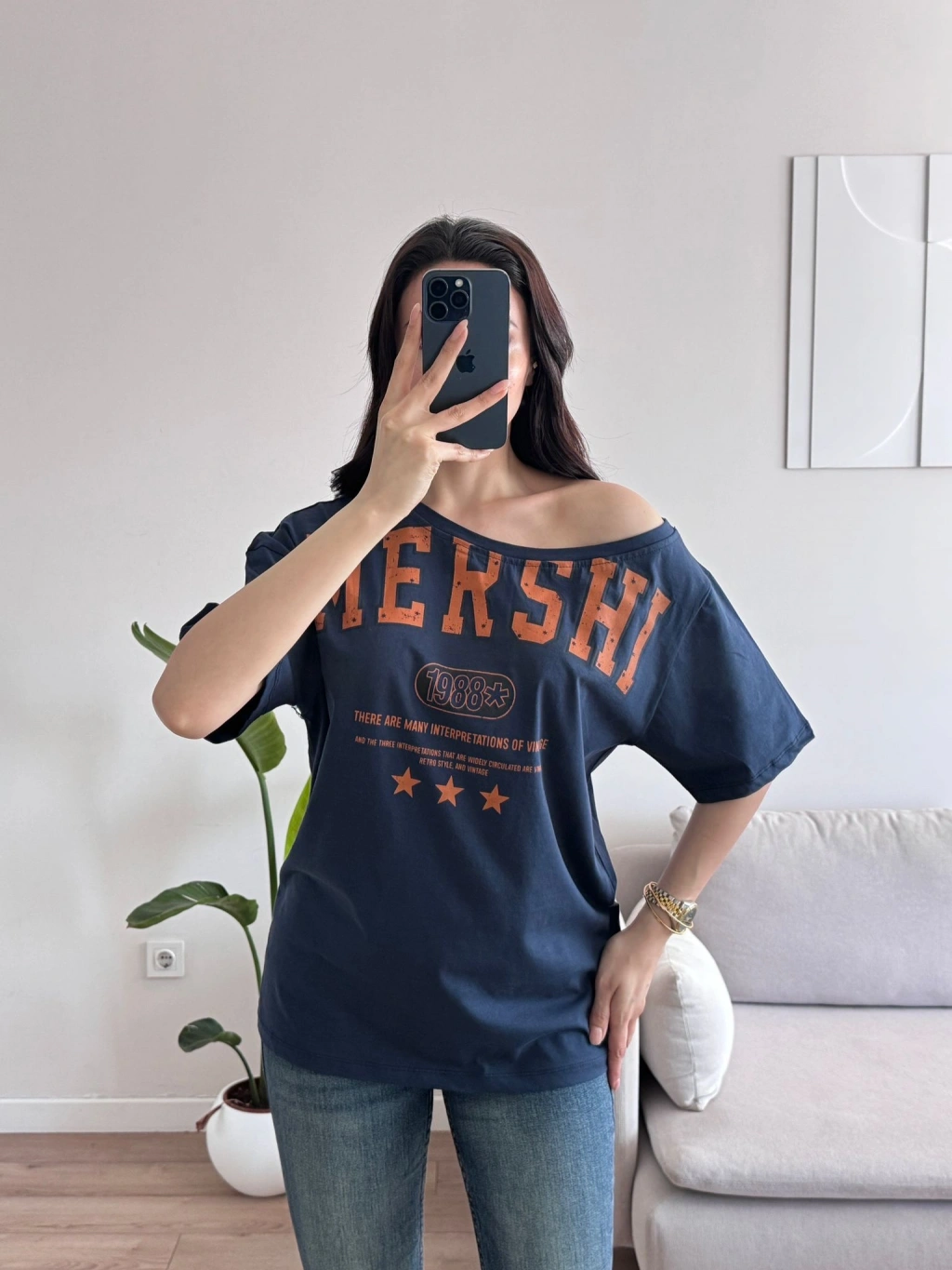 Kayık Yaka Mershi Tshirt - LACİVERT