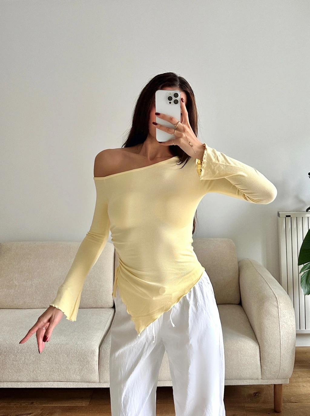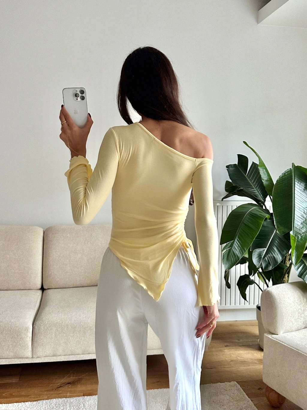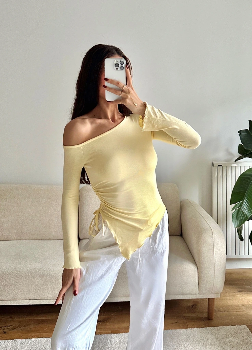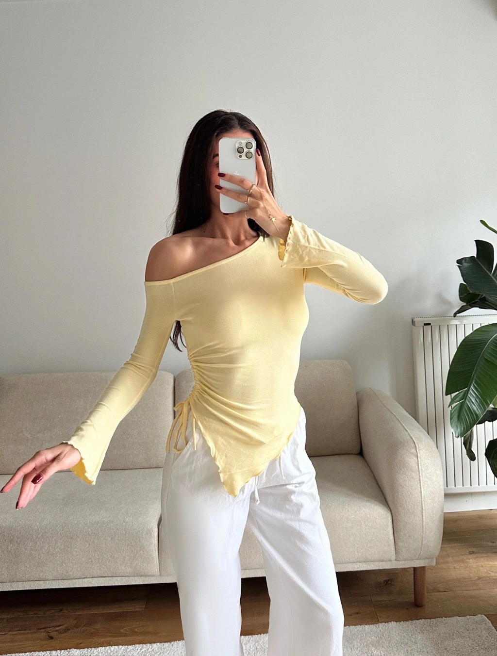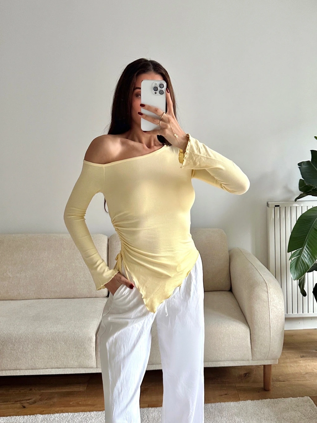 Kayık Yaka Yan Büzgü Bluz - SASRI