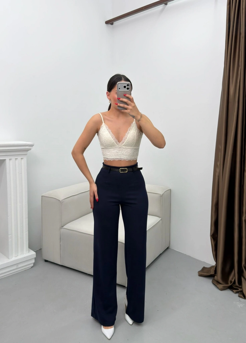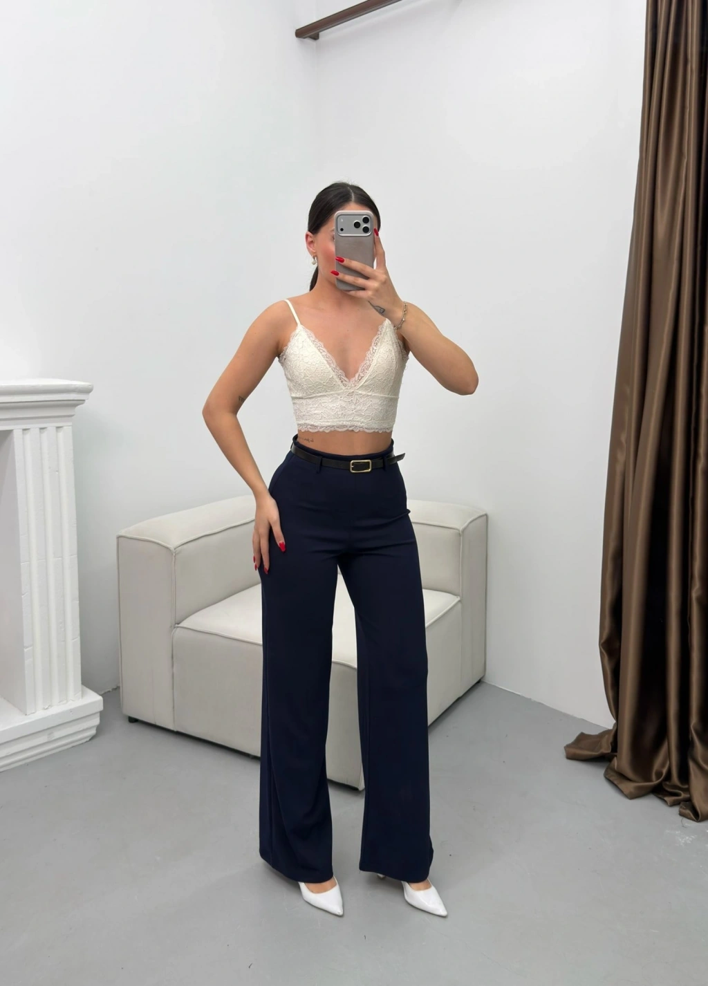 Kemerli Scuba Palazzo Pantolon - LACİVERT