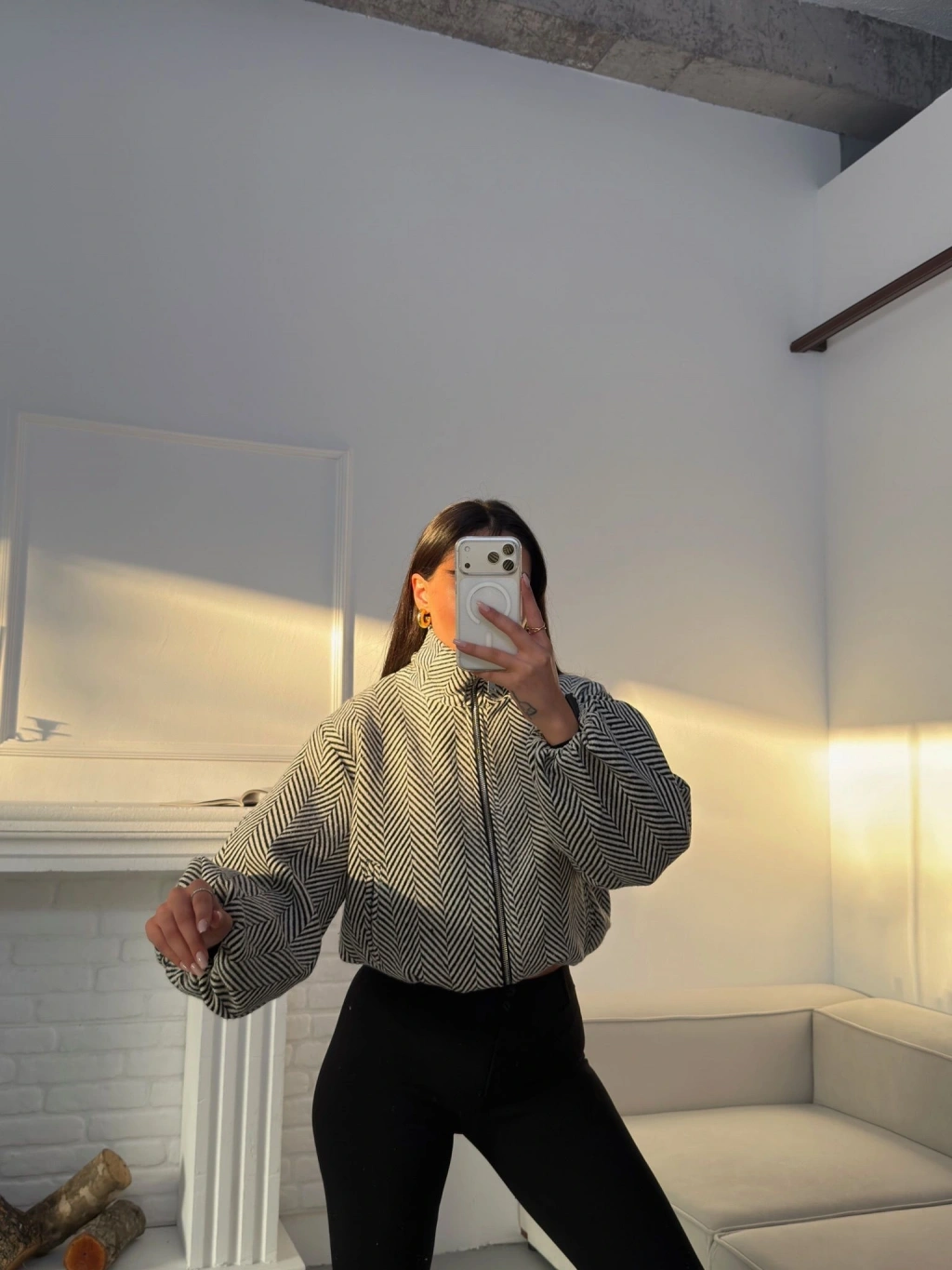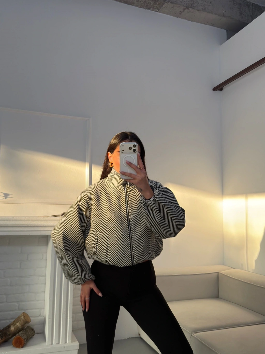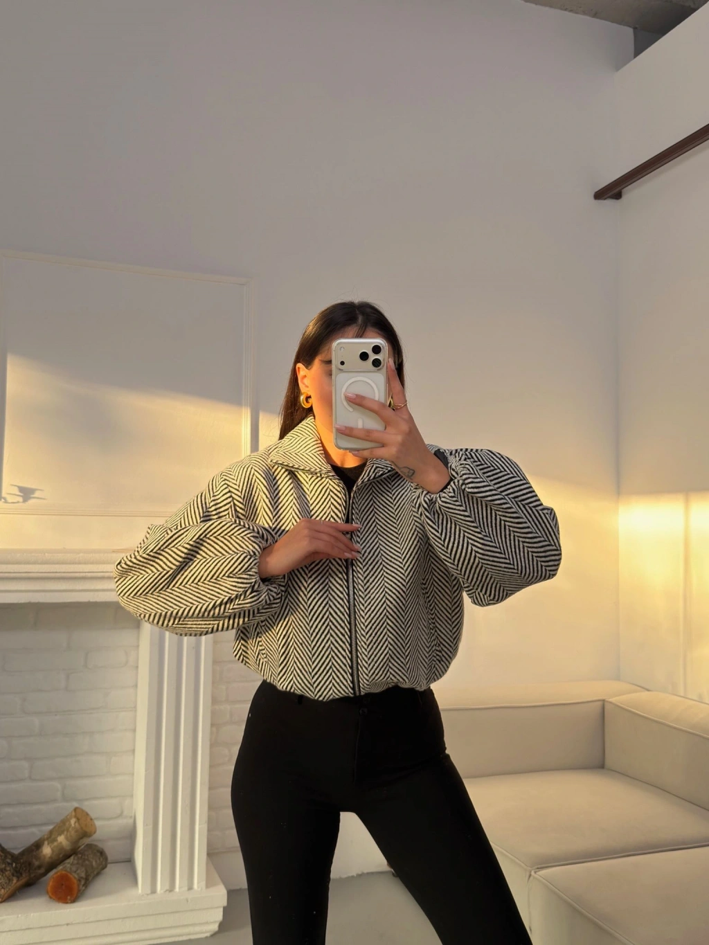 Kırçıllı Fermuar Ceket - BEYAZ