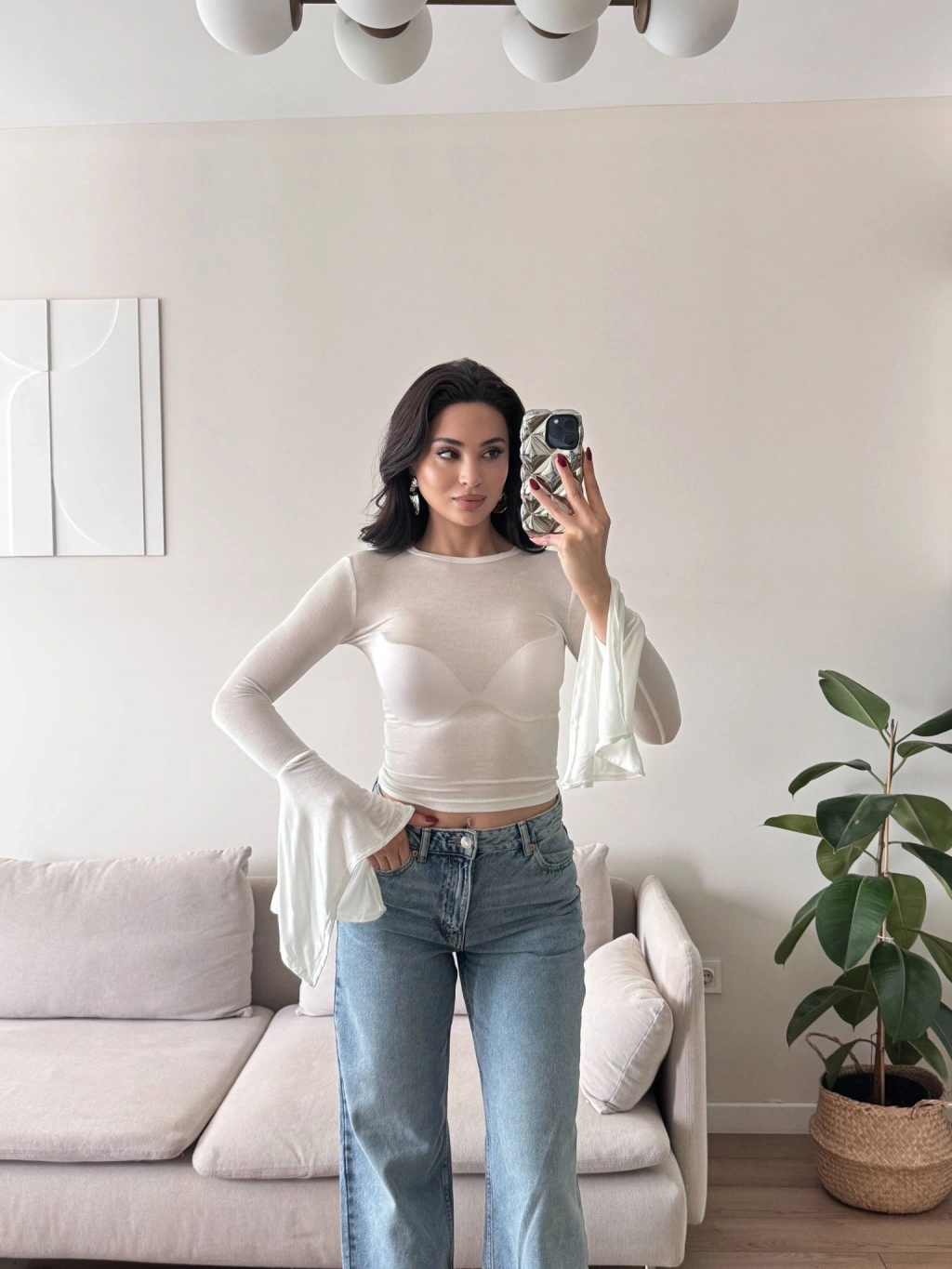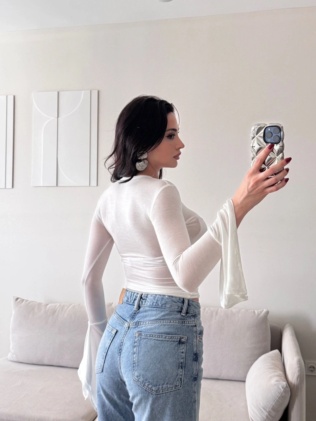 Kol Volanlı Transparan Crop - BEYAZ