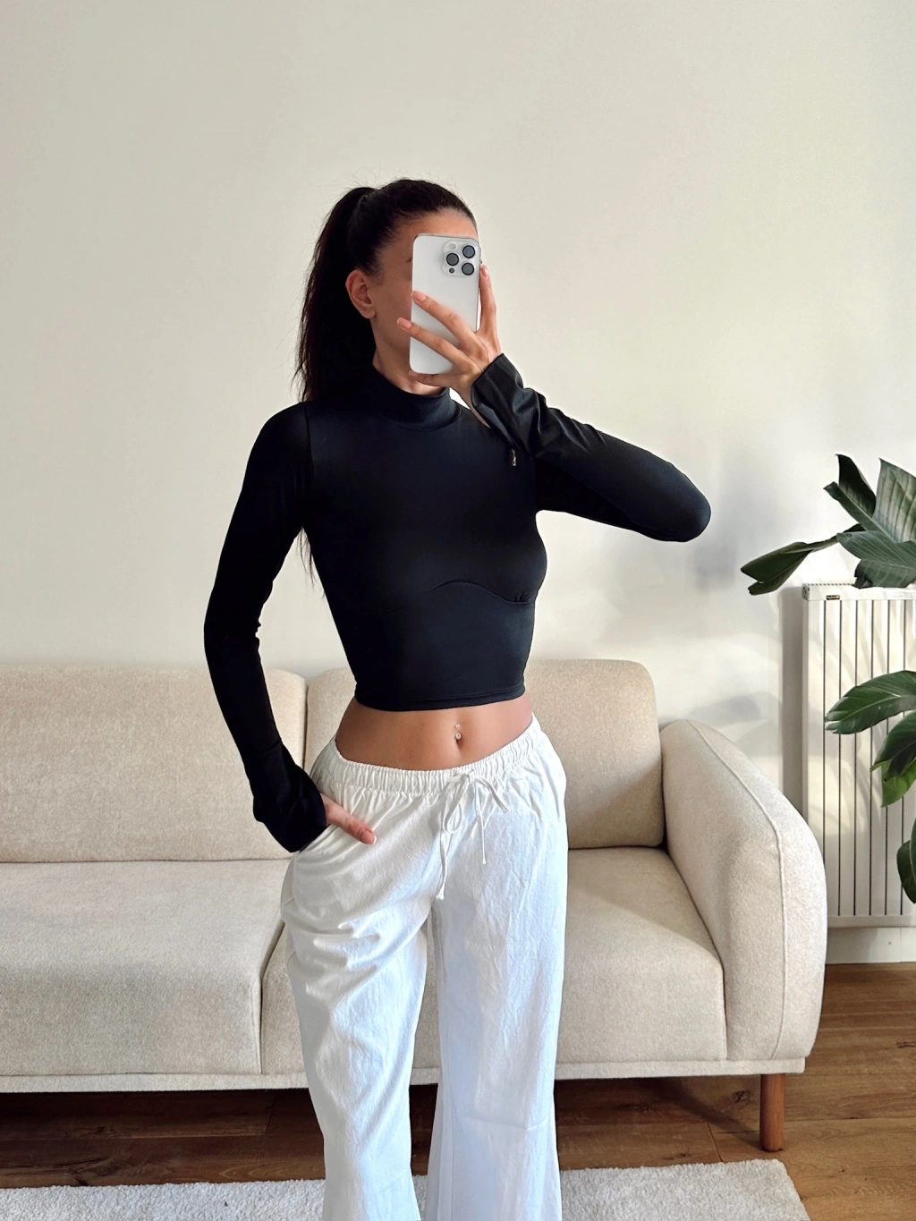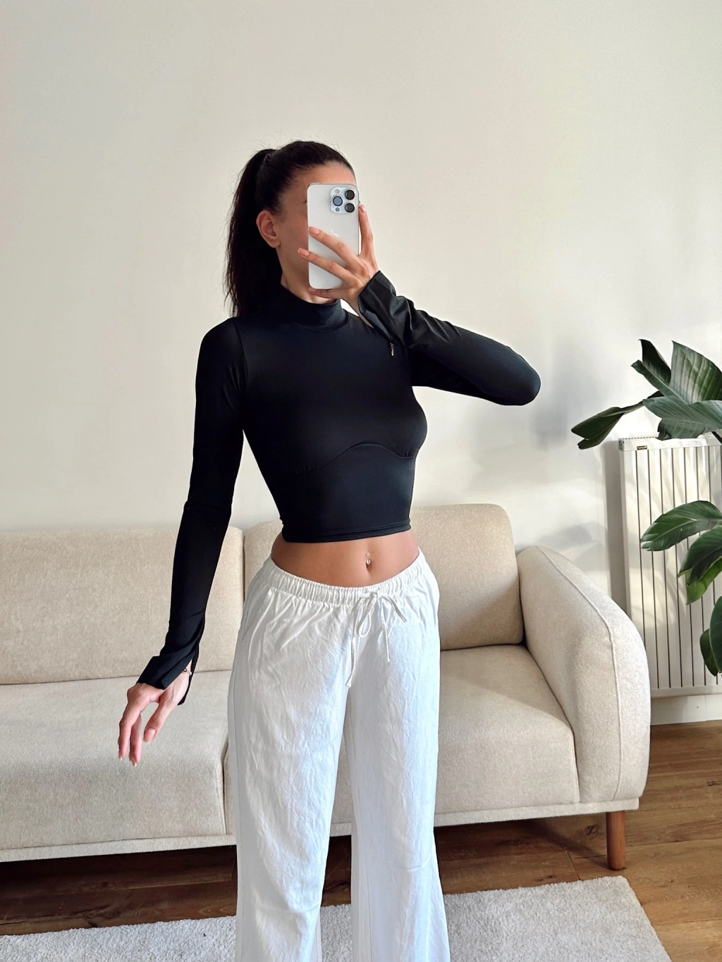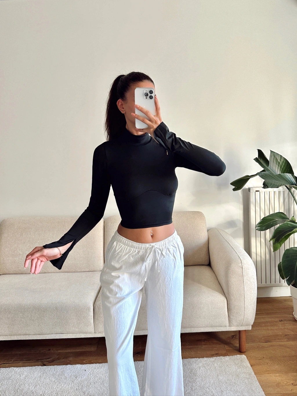 Kol Yırtmaç Yarım Balıkçı Crop - SİYAH