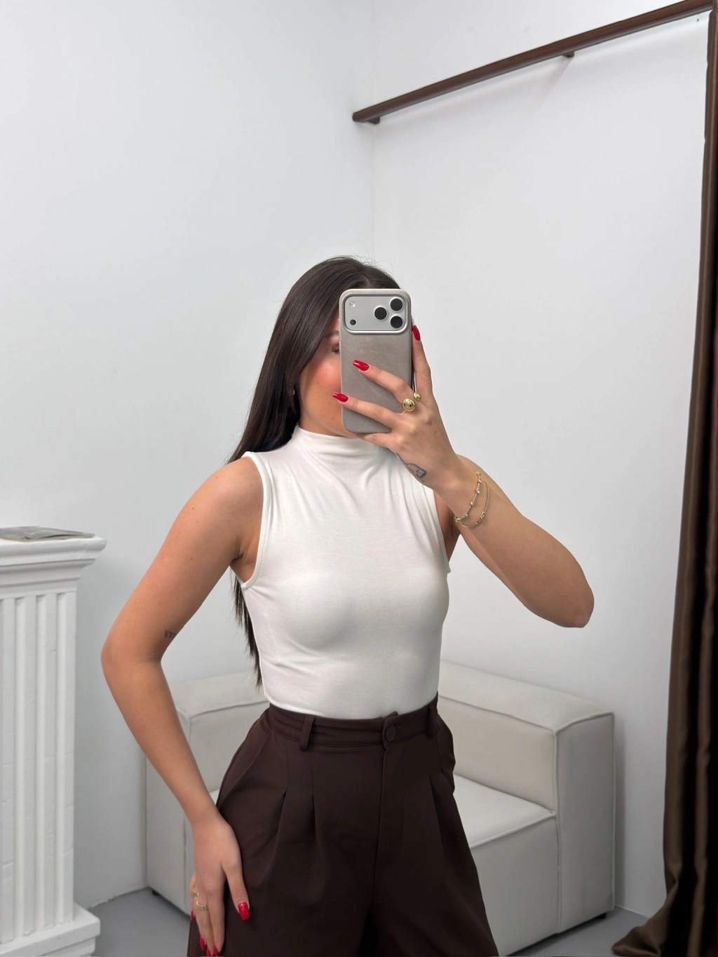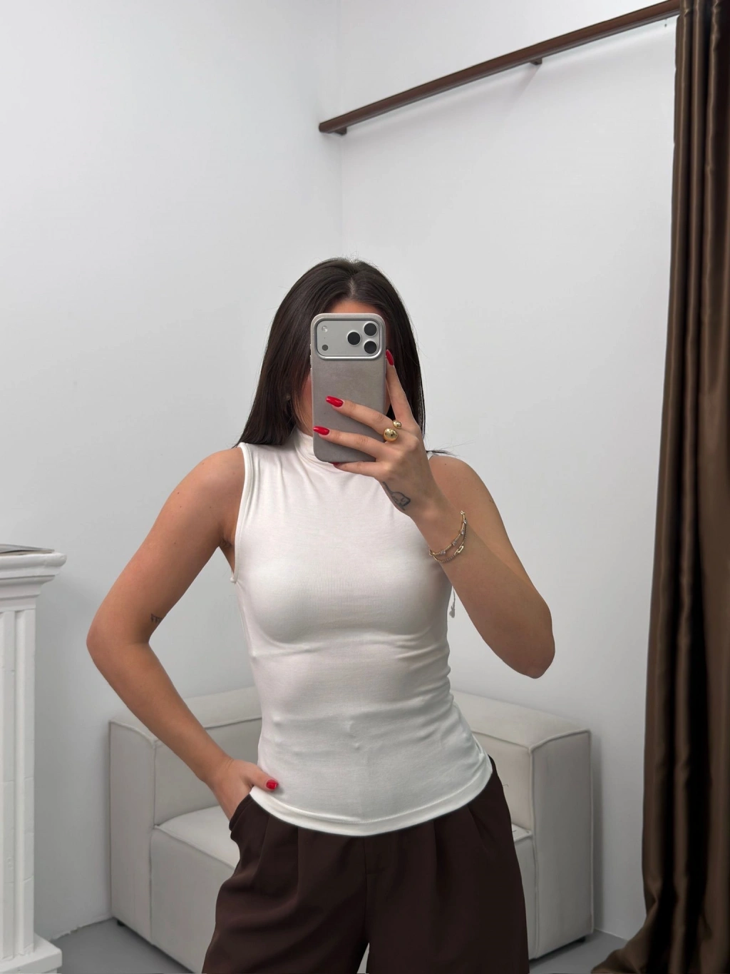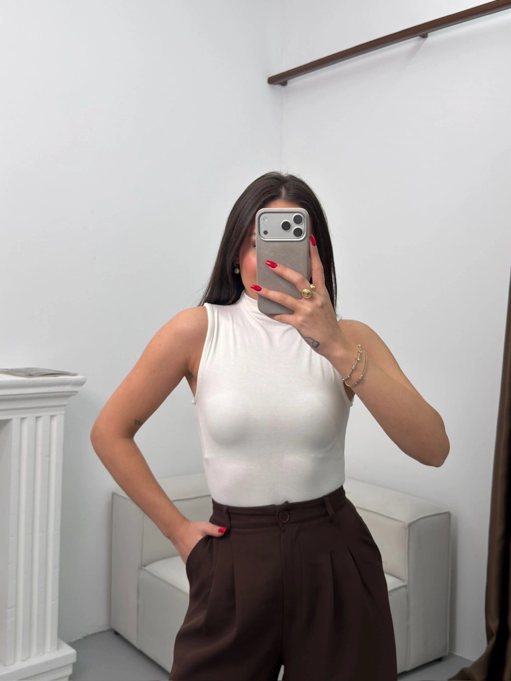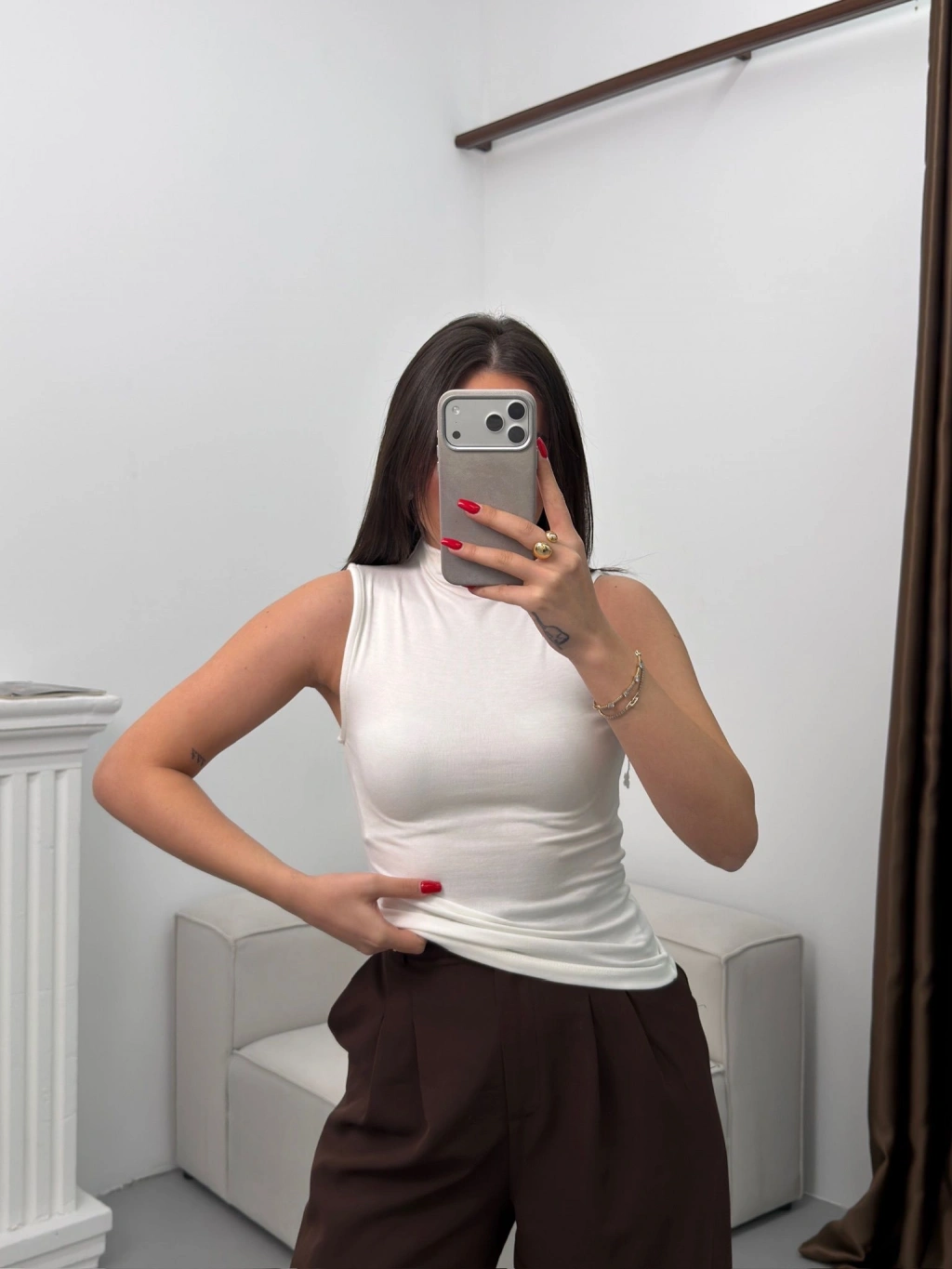Kolsuz Halter Yaka Crop - BEYAZ