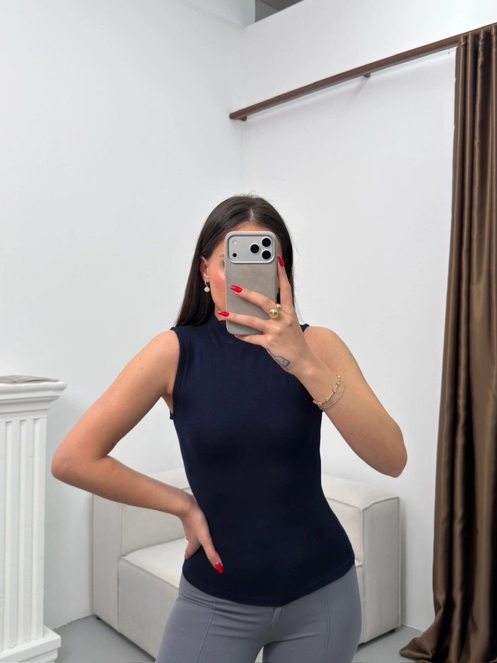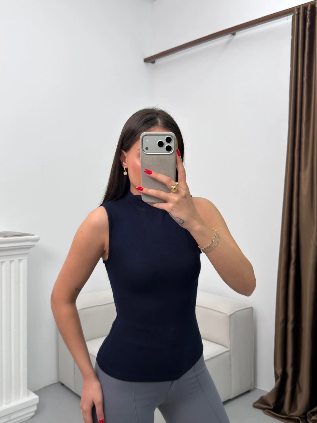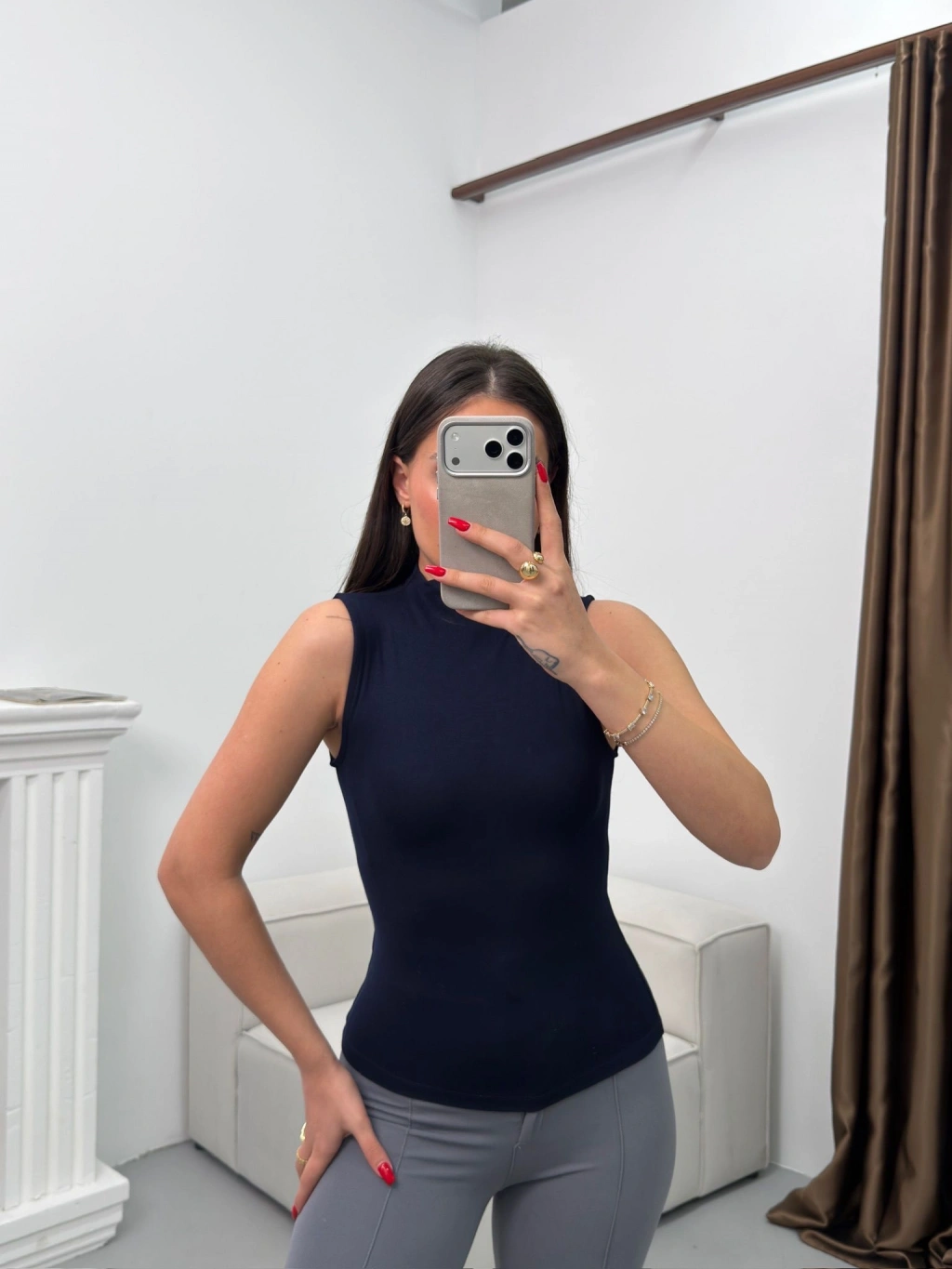 Kolsuz Halter Yaka Crop - LACİVERT
