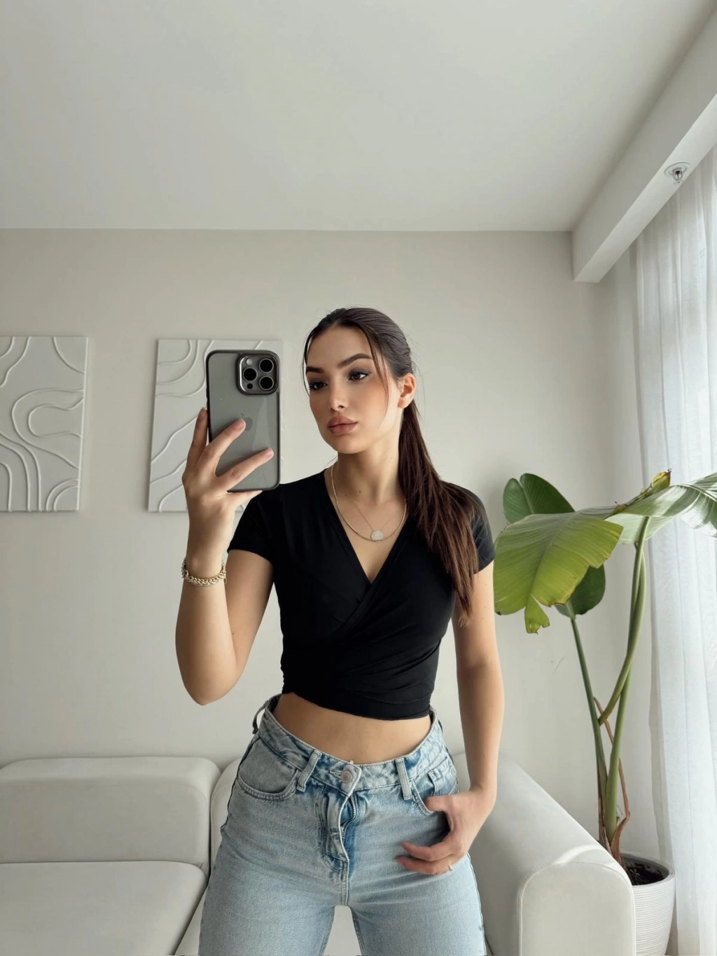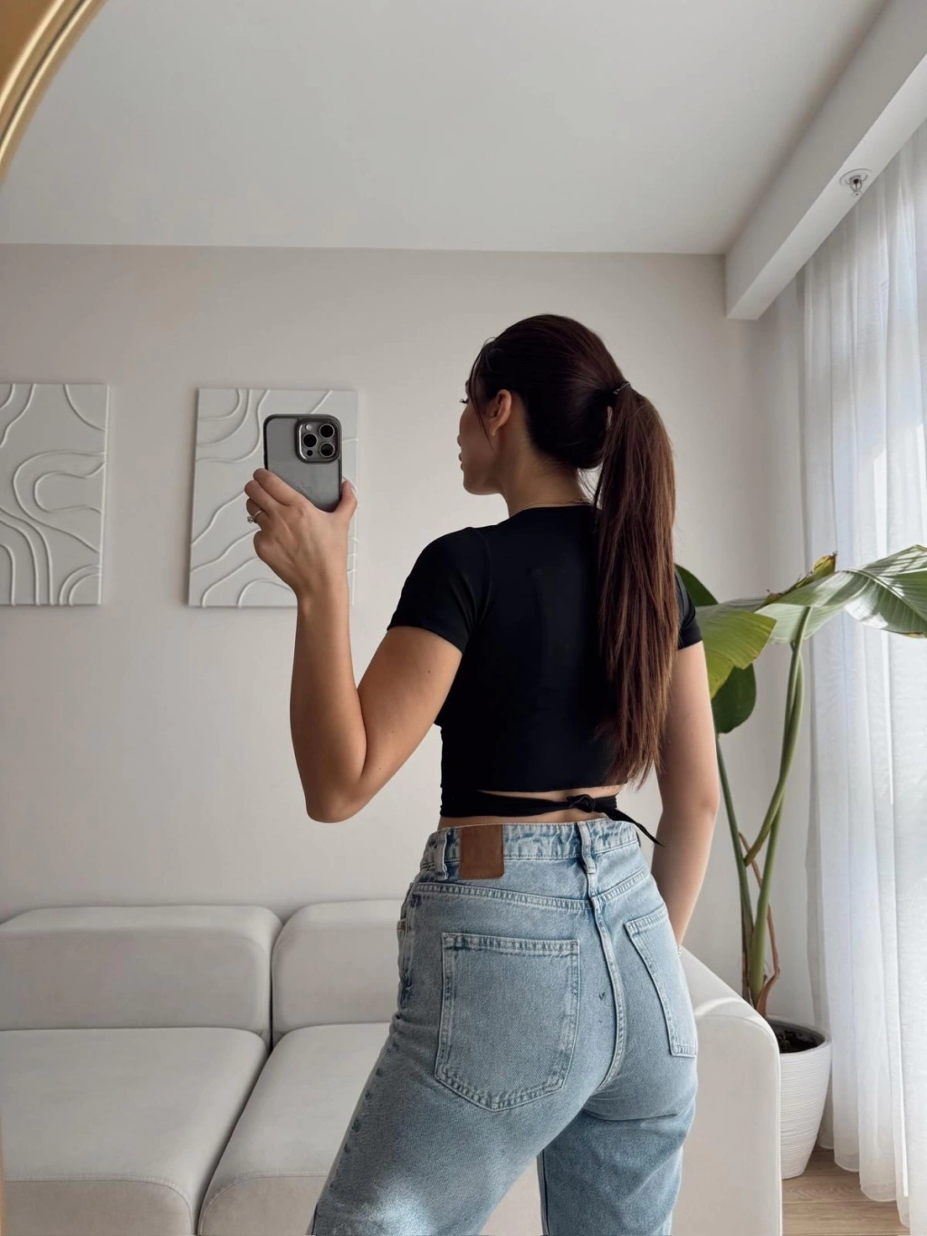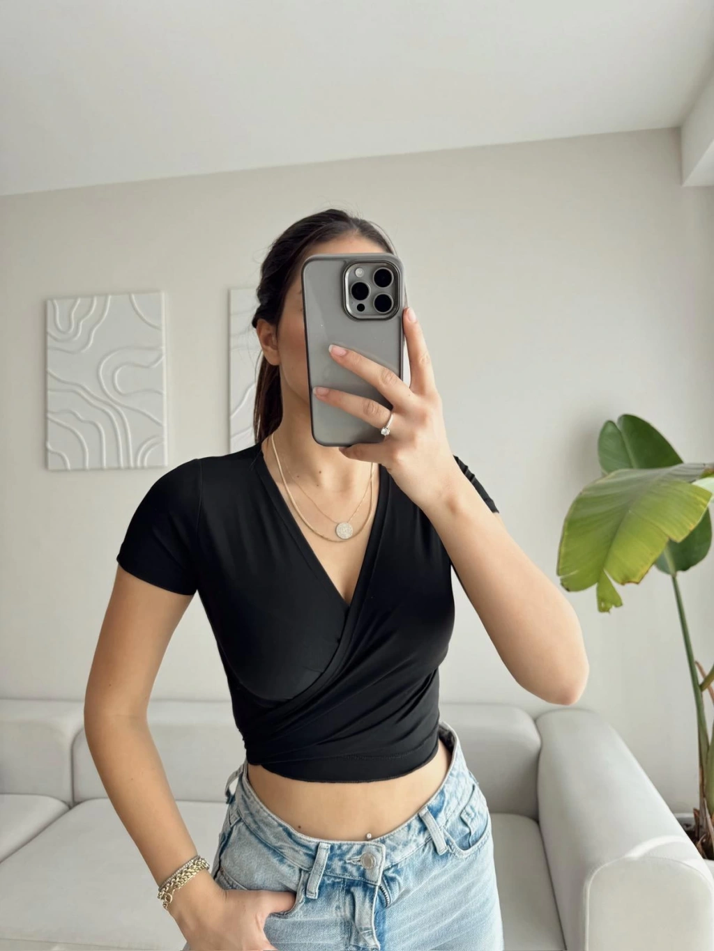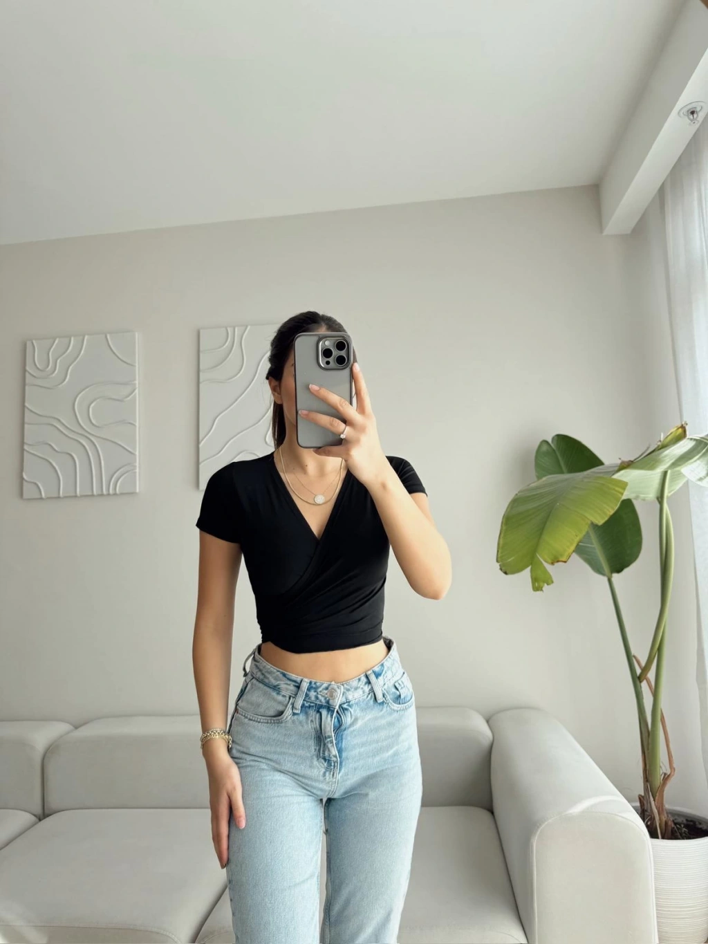 Kruvaze Bel Bağlamalı Crop - SİYAH