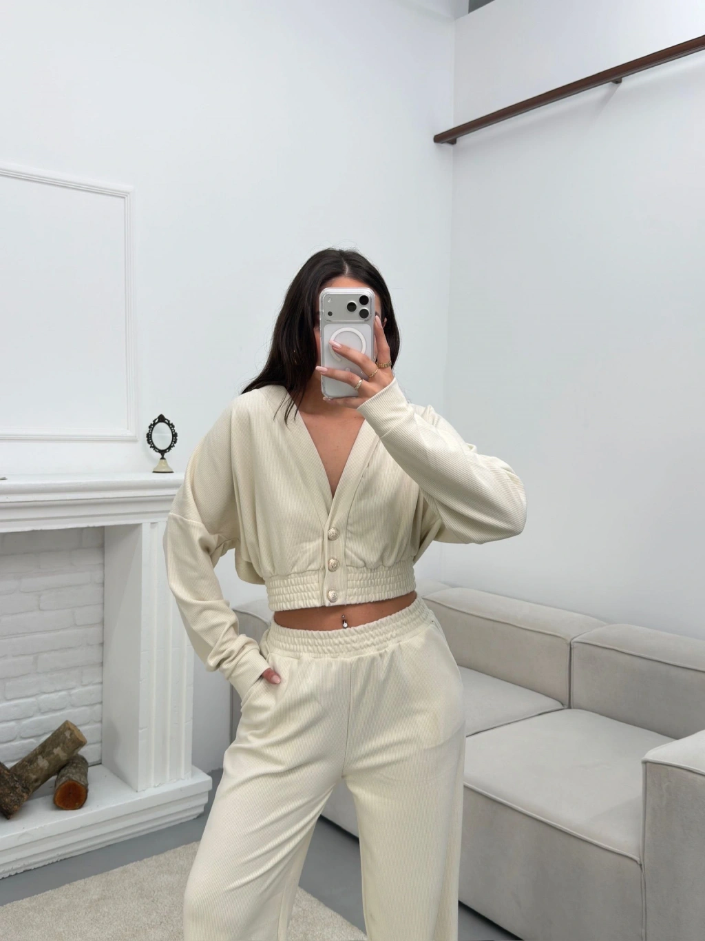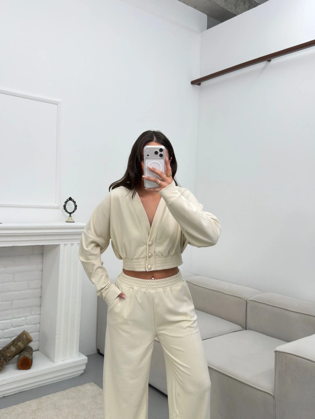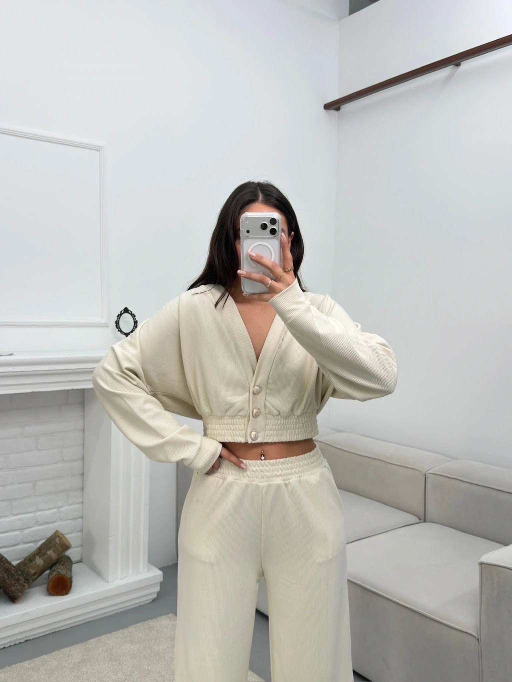 Kruvaze Hırka & Pantolon İkili Takım - BEJ