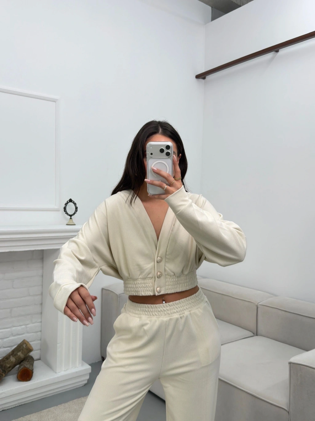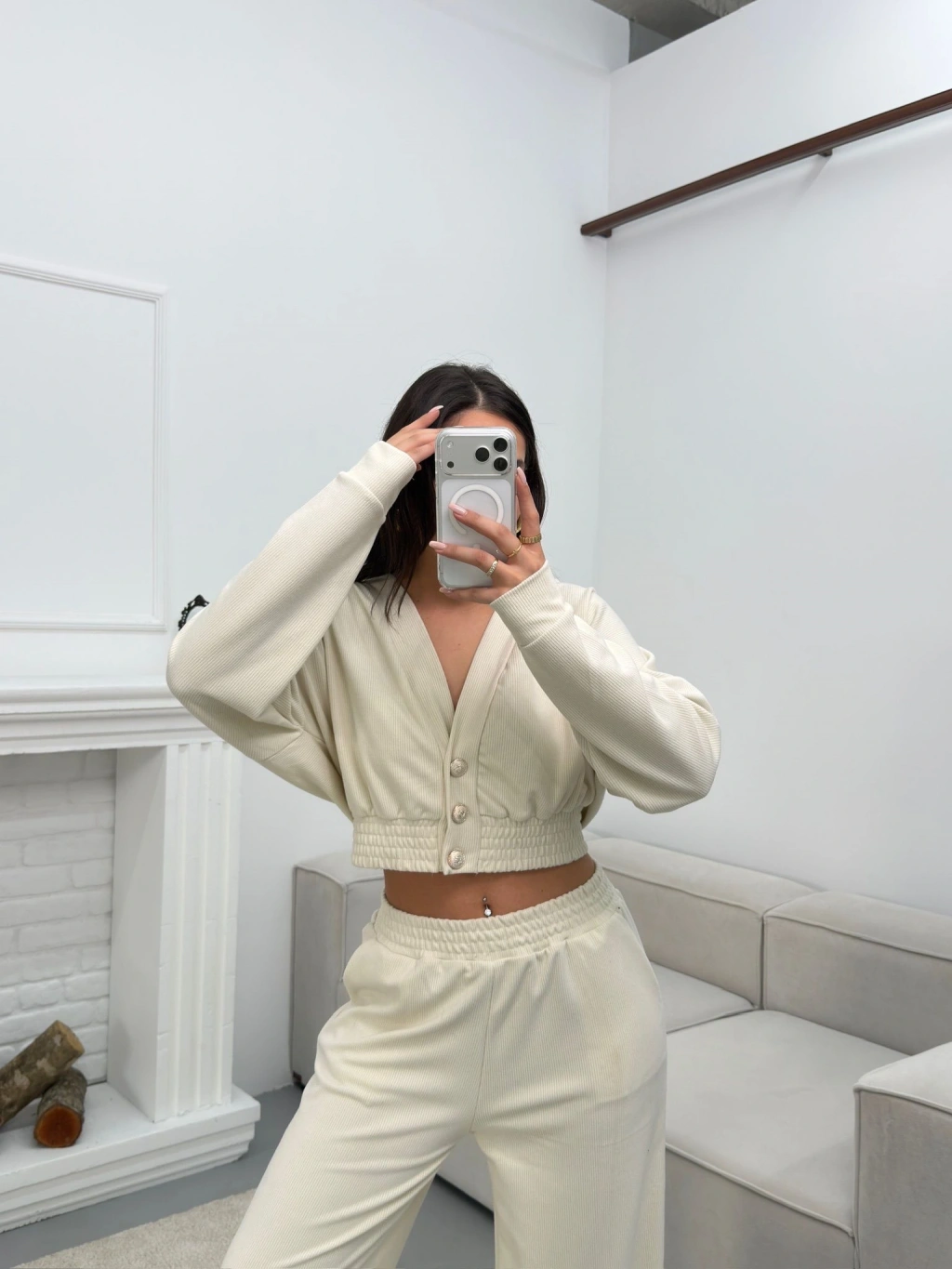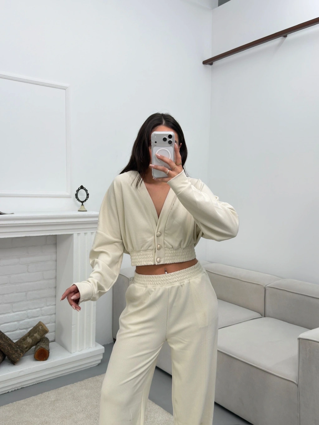 Kruvaze Hırka & Pantolon İkili Takım - BEJ