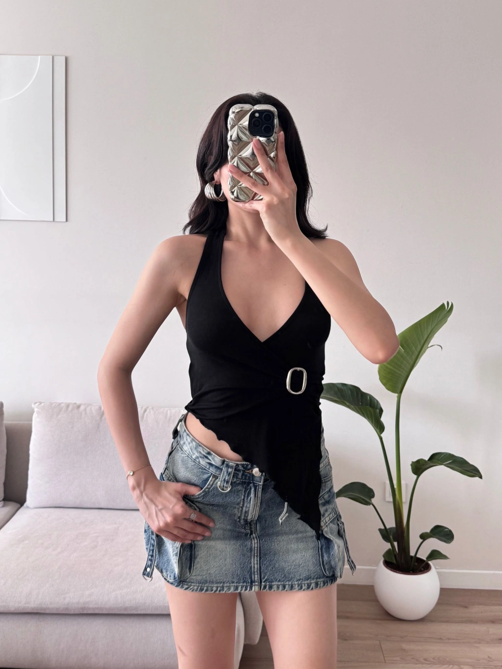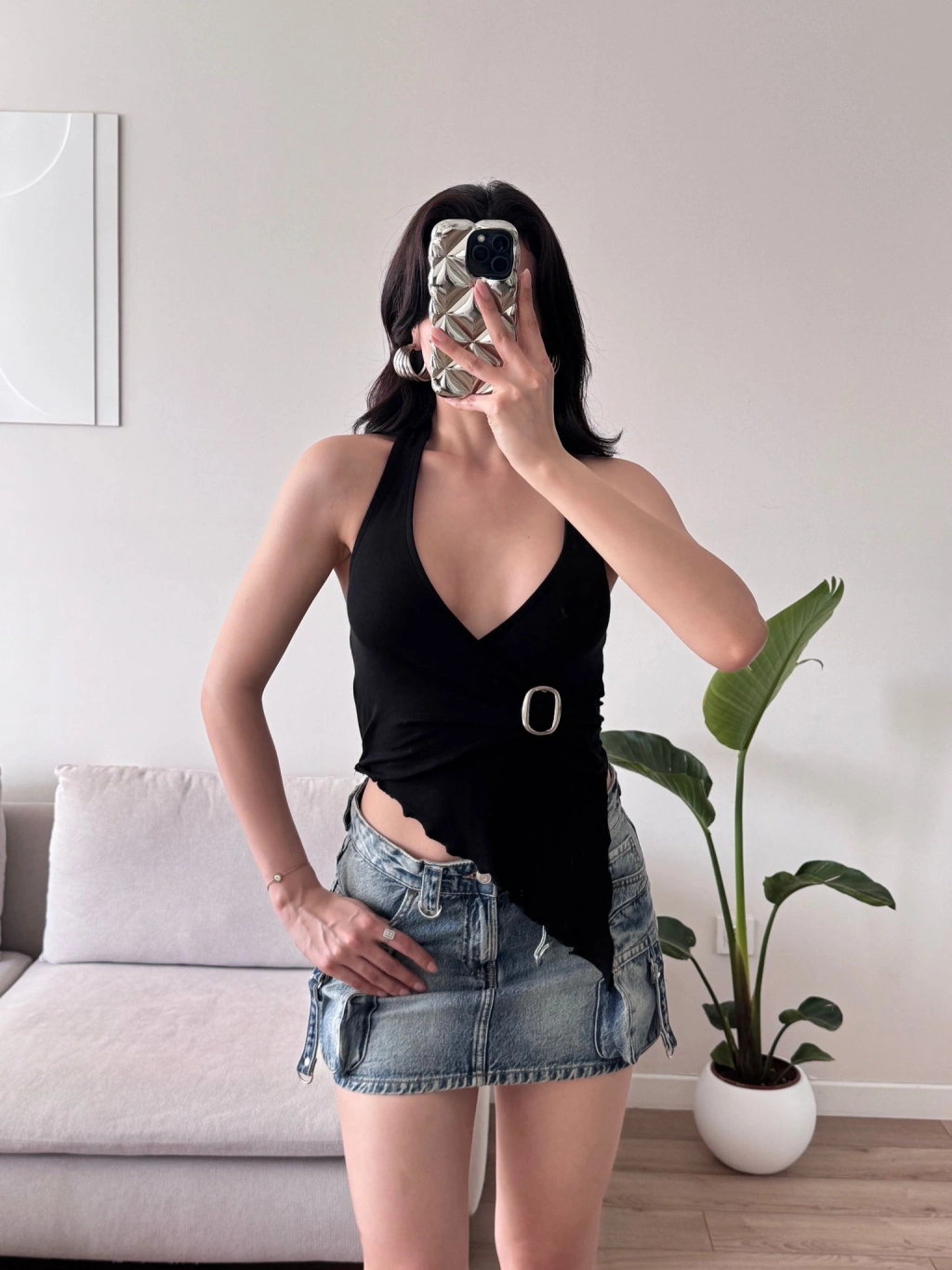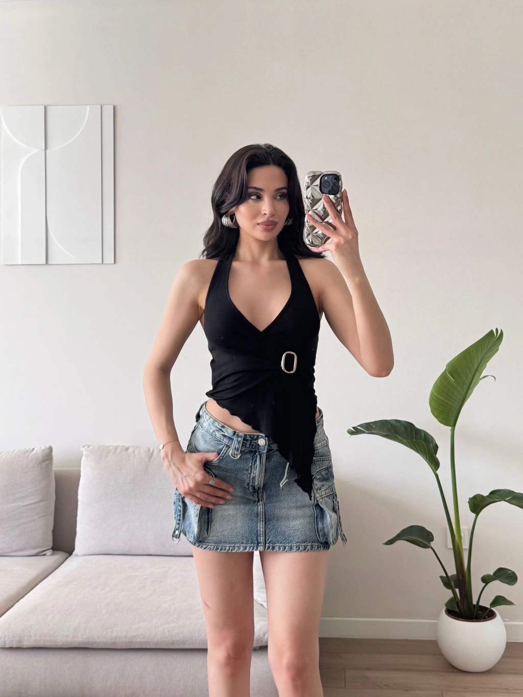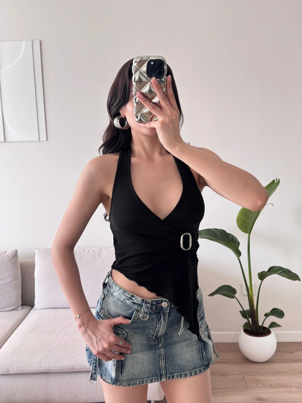 Kruvaze Tokalı Crop - SİYAH