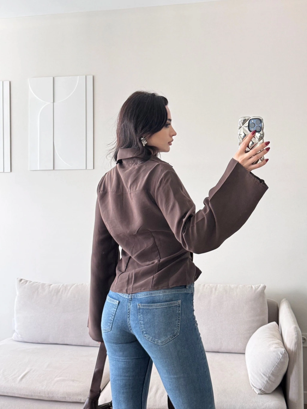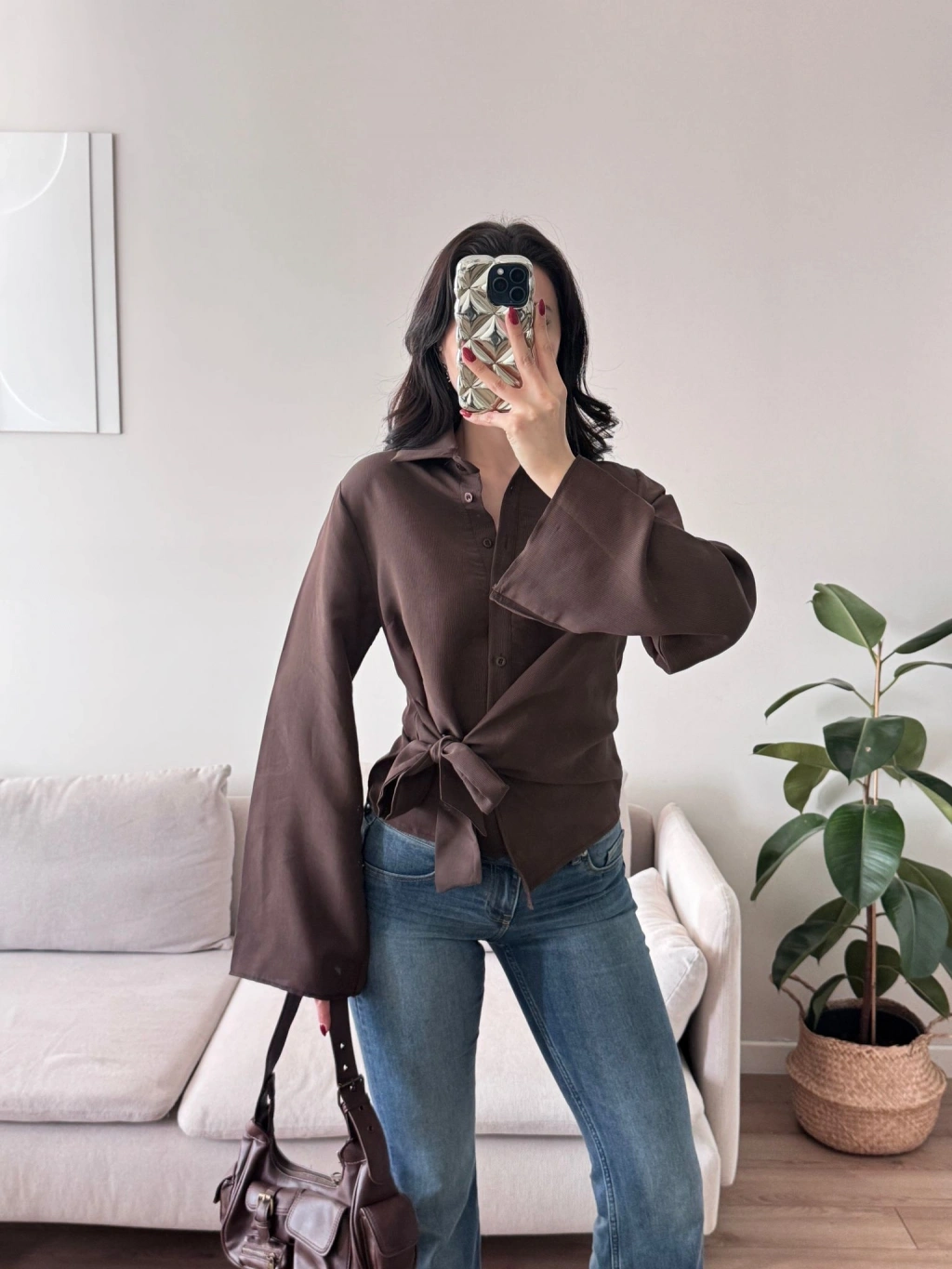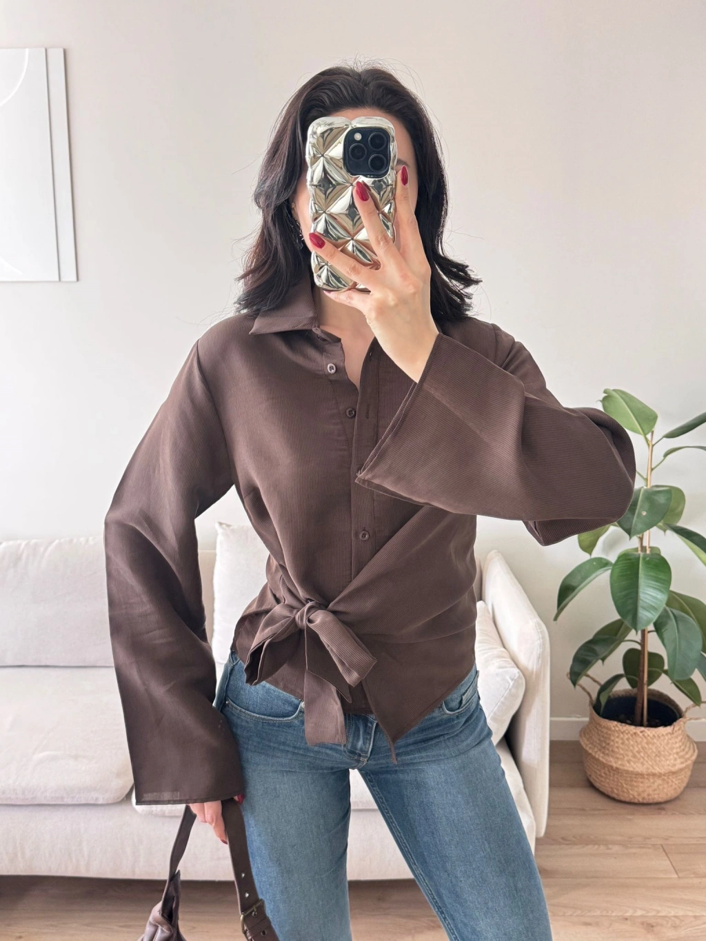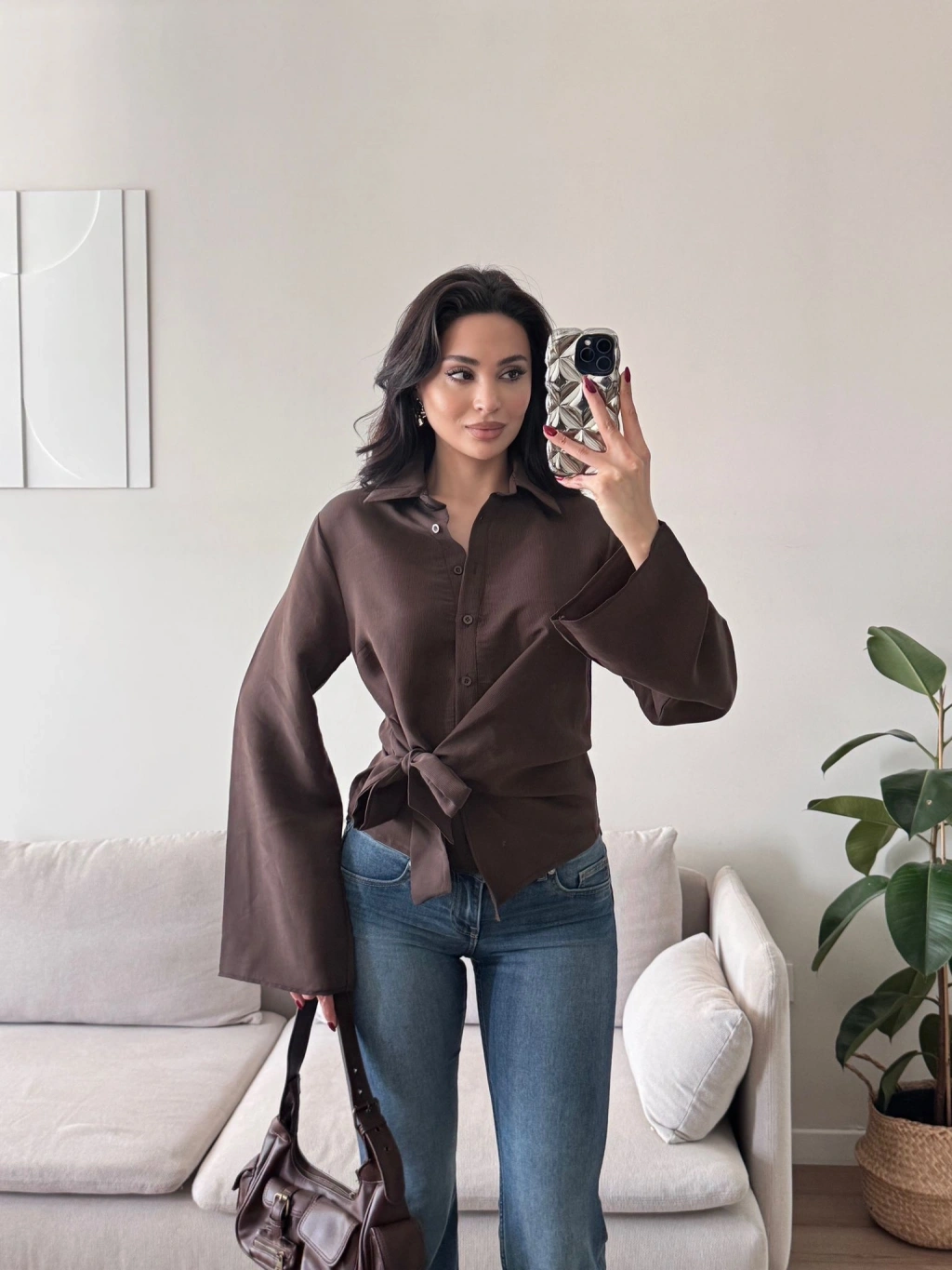 Kuşaklı Modal Gömlek - KAHVE