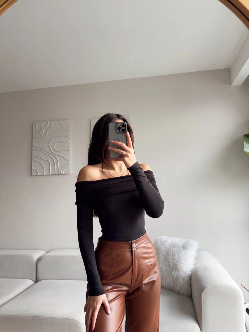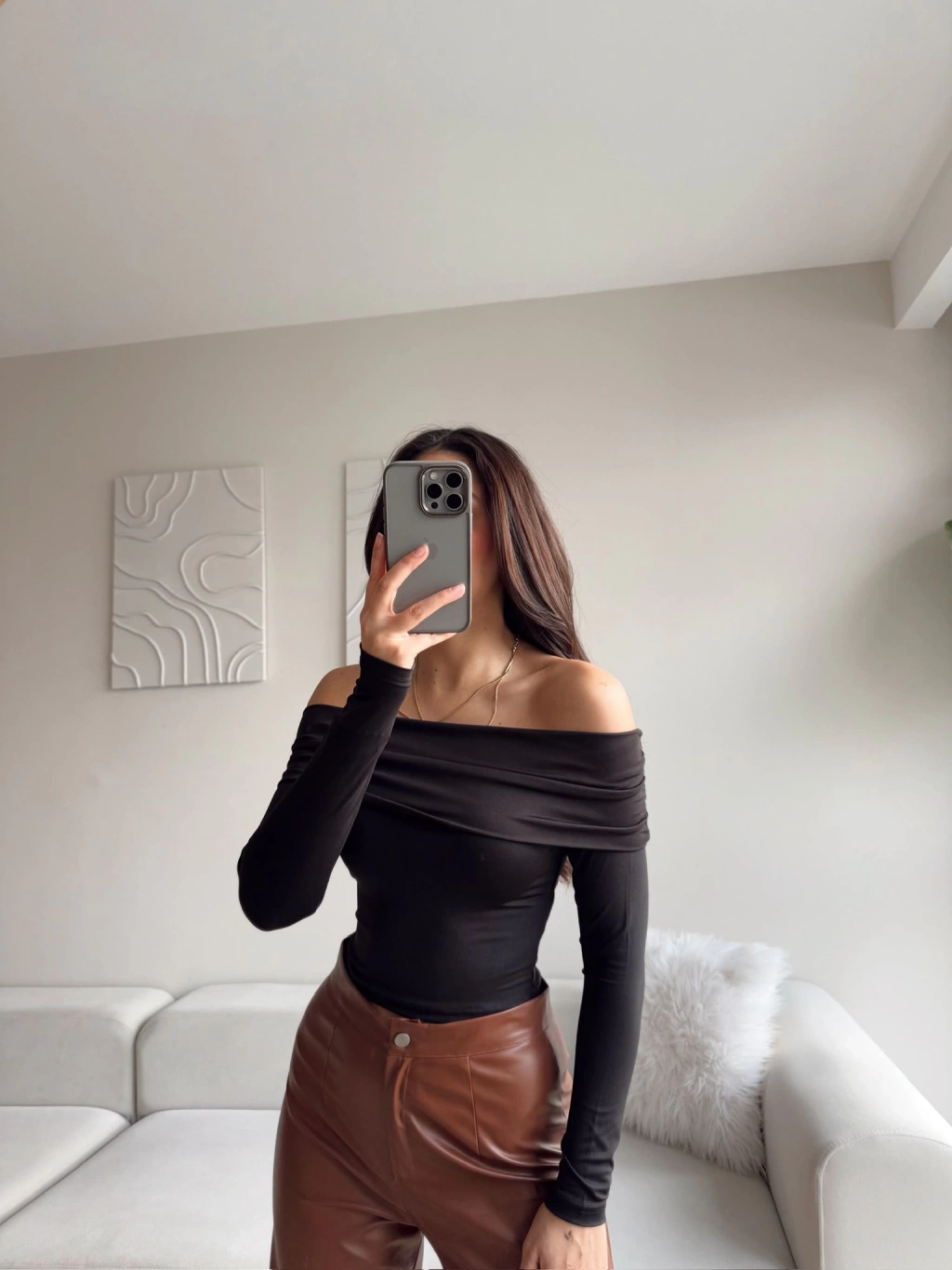 Siyahın zarifliğiyle tasarlanmış bu Madonna yaka dalgıç bluz, şıklığı ve modernliği bir araya getiriyor: