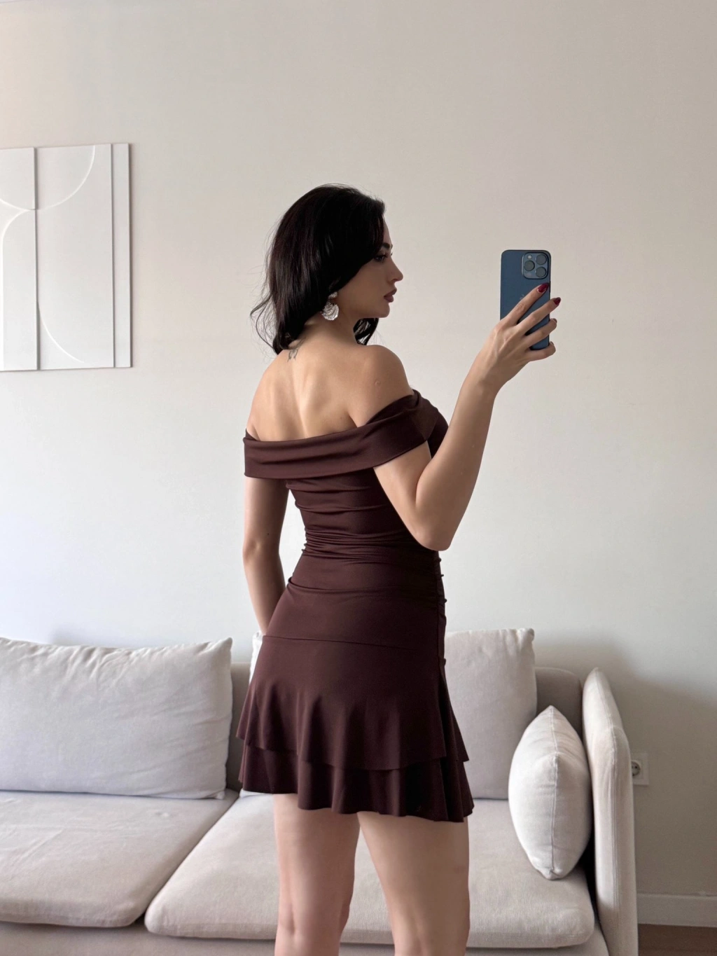 Madonna Yaka Fırfırlı Elbise - KAHVE