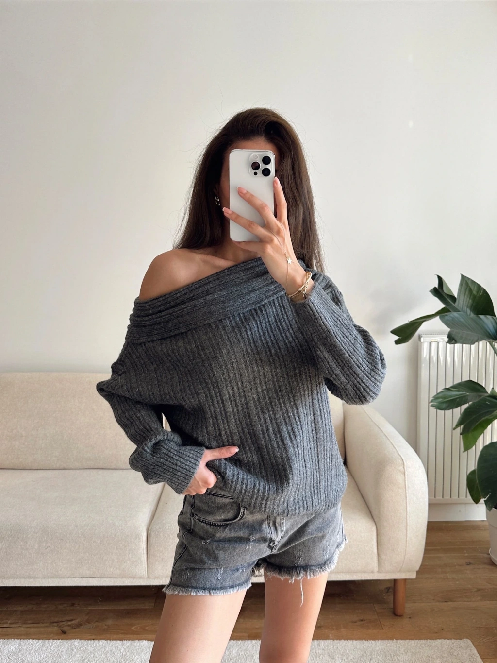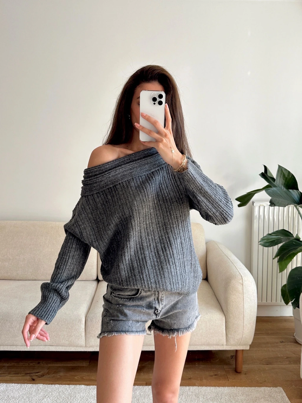 Madonna Yaka Şardonlu Kazak - ANTRASİT