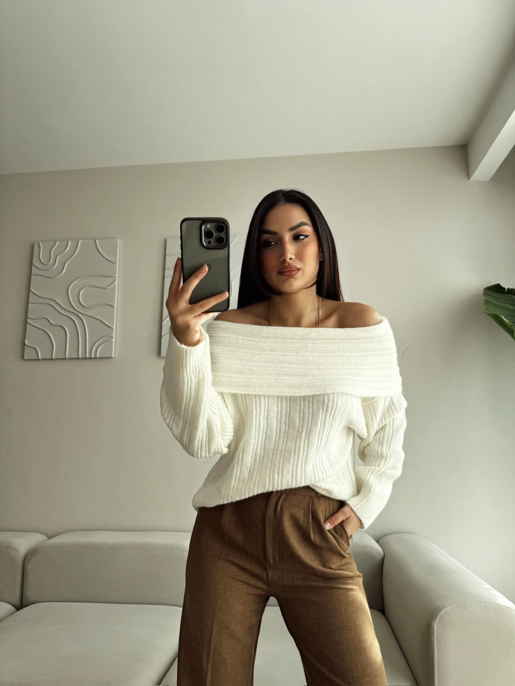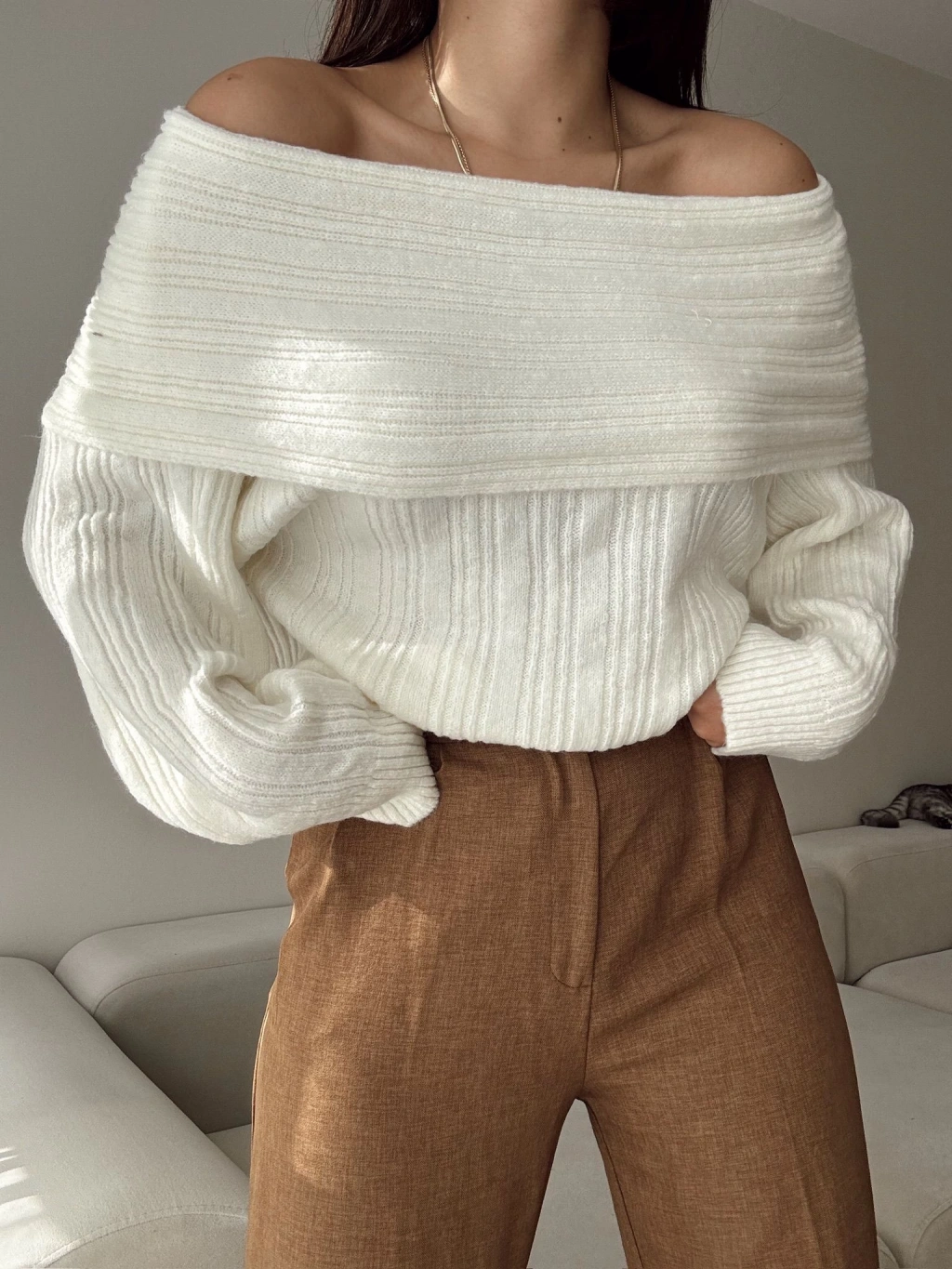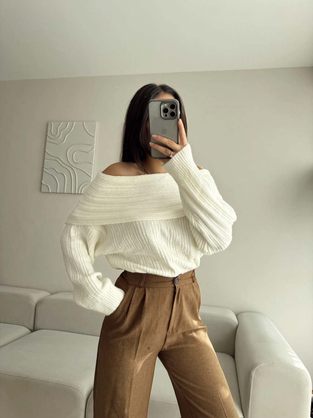 Madonna Yaka Şardonlu Kazak - EKRU
