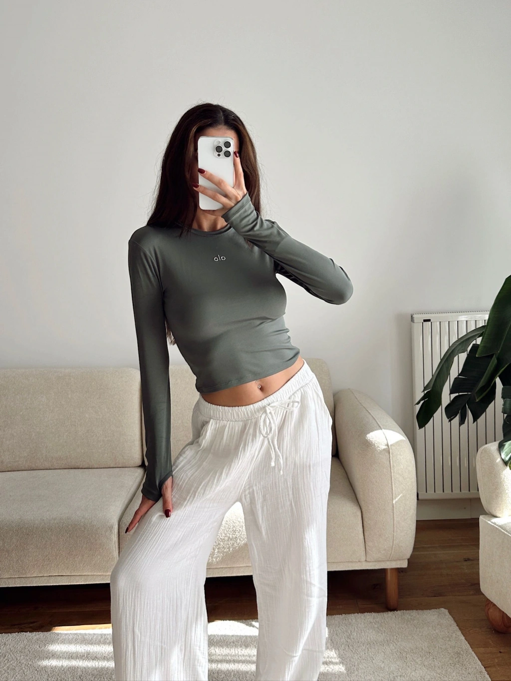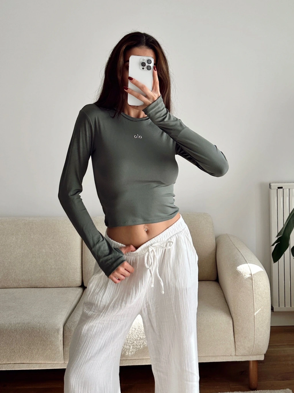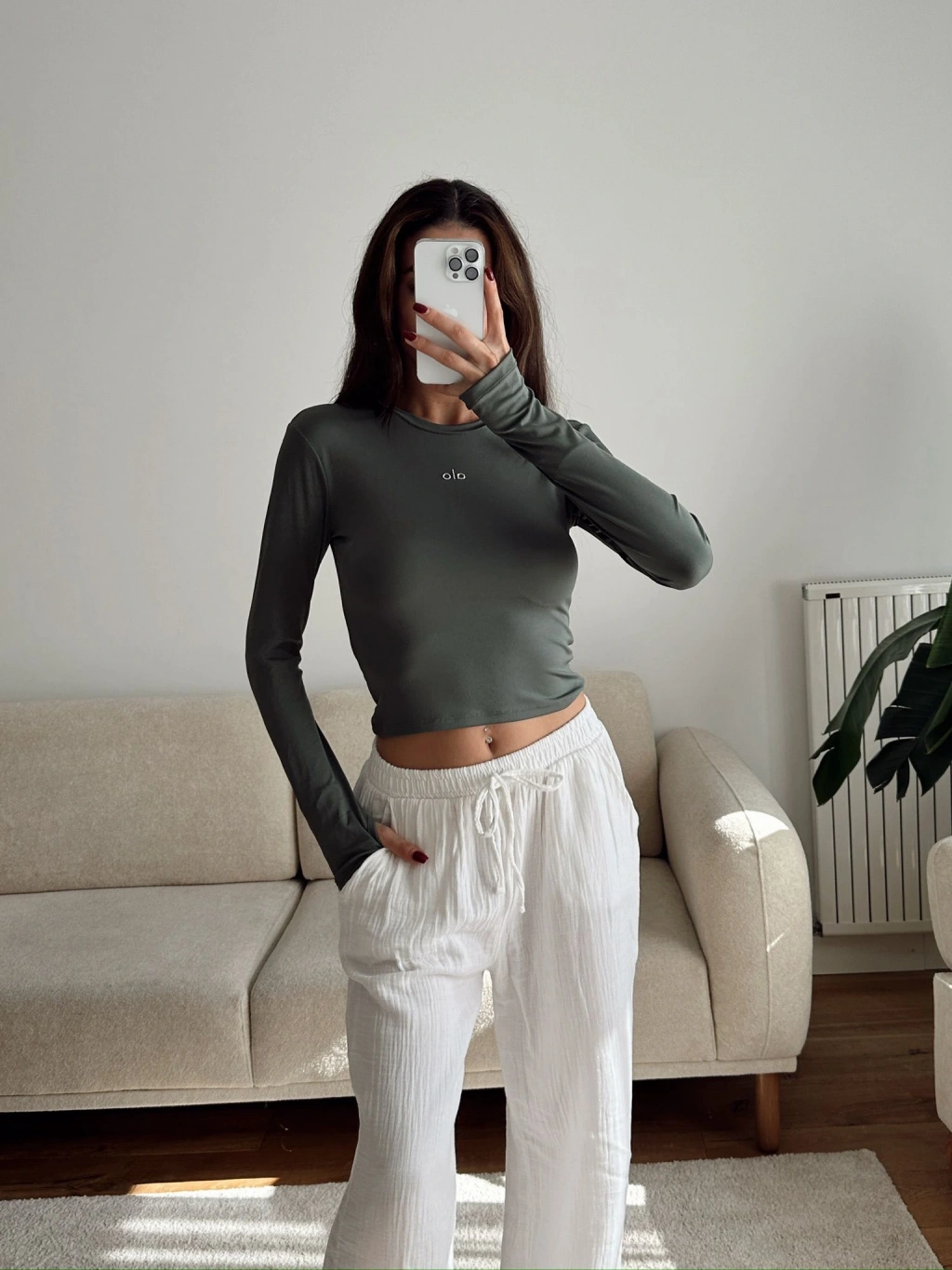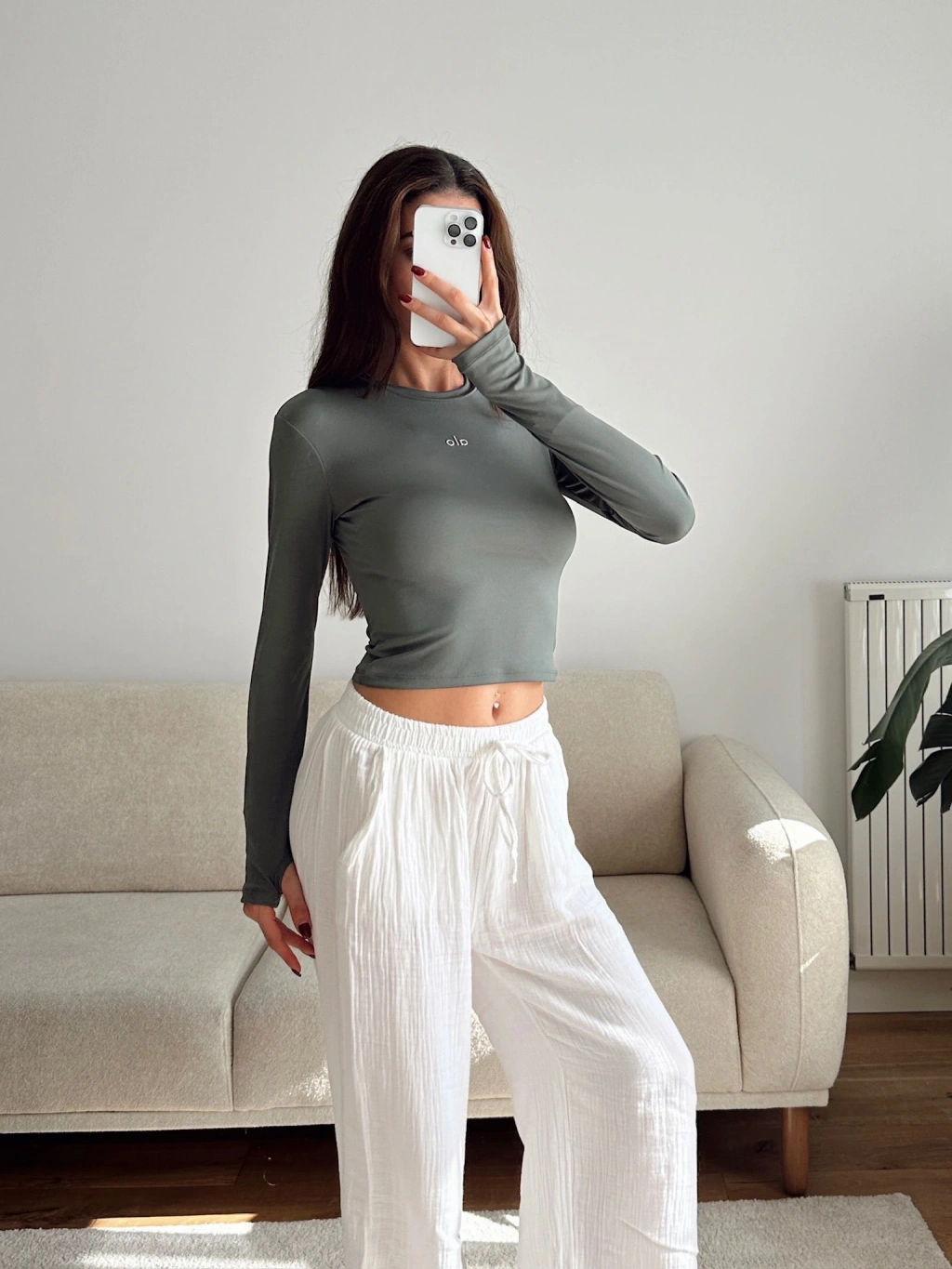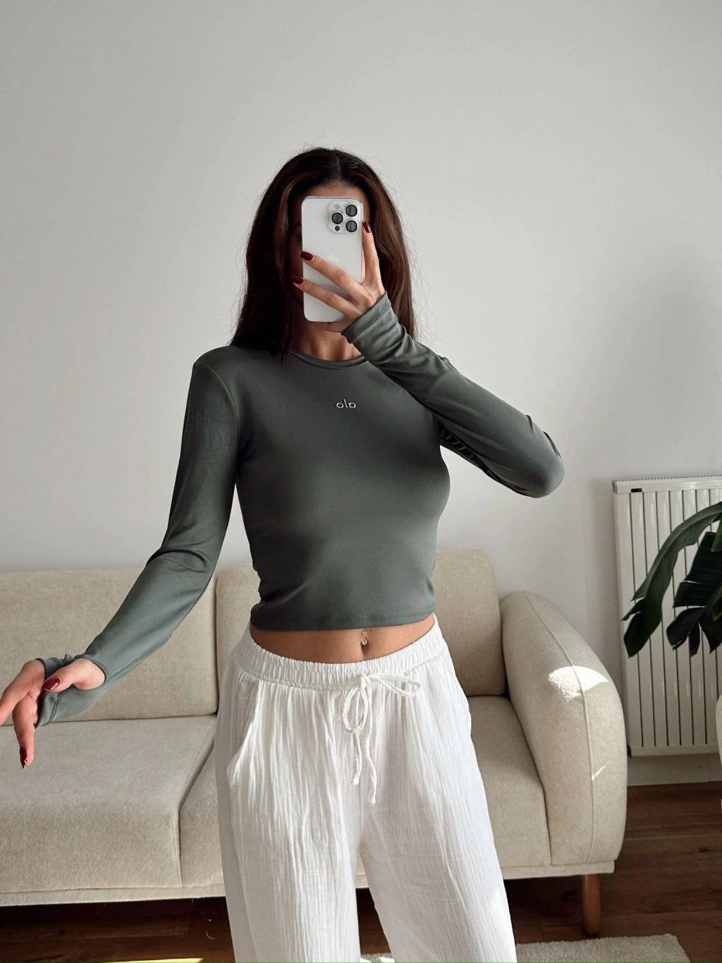 Marka Parmak Geçmeli Basic Crop - HAKİ