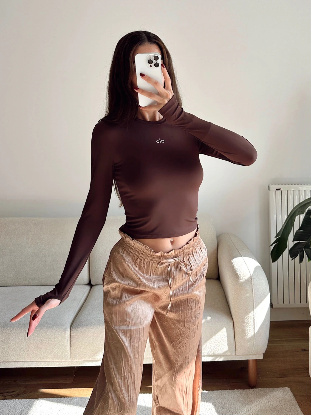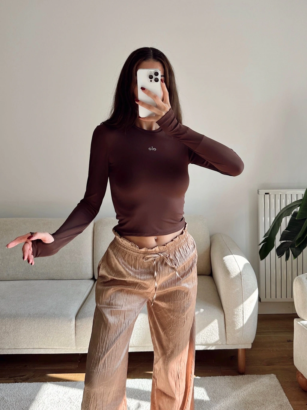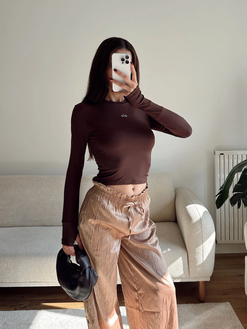 Marka Parmak Geçmeli Basic Crop - KAHVE