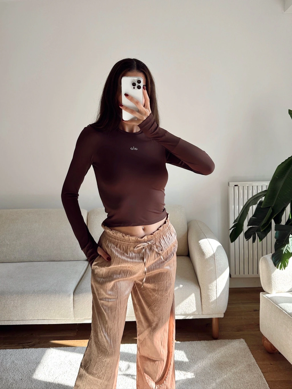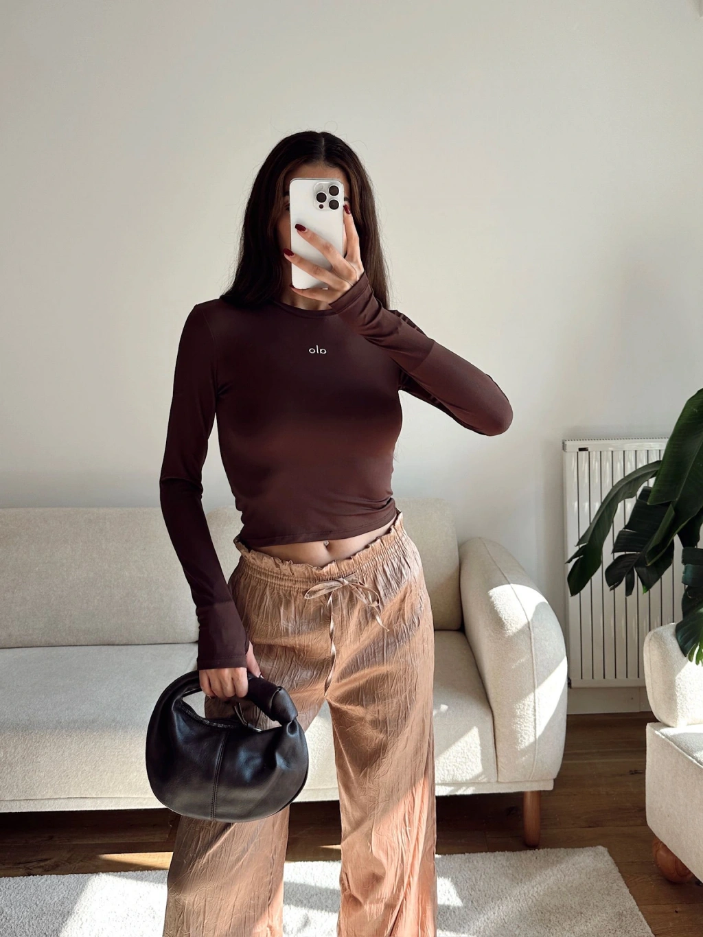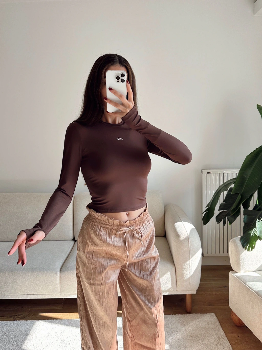 Marka Parmak Geçmeli Basic Crop - KAHVE