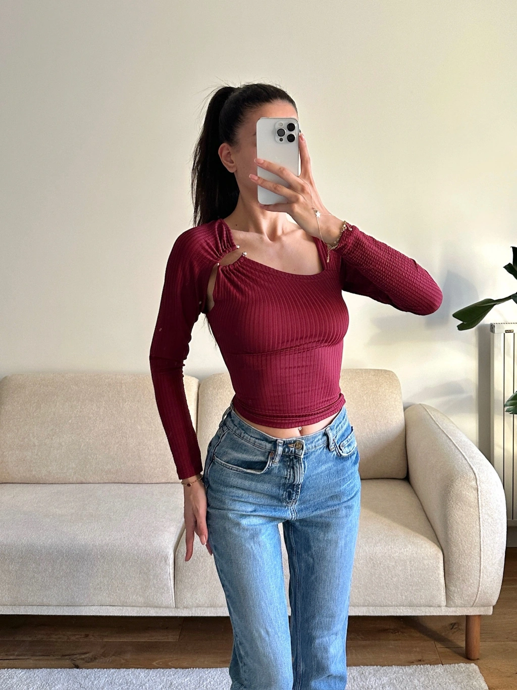 Metal Tokalı Fit Bluz - BORDO