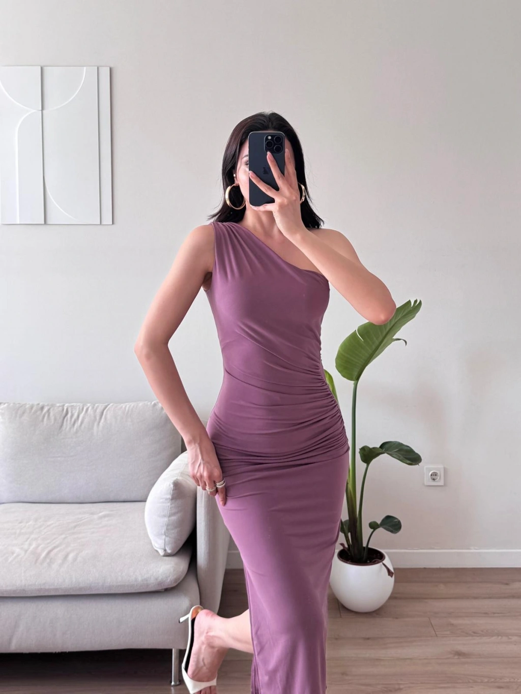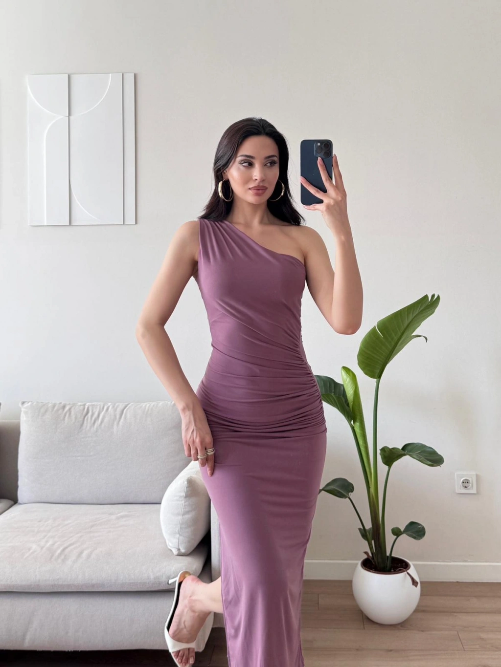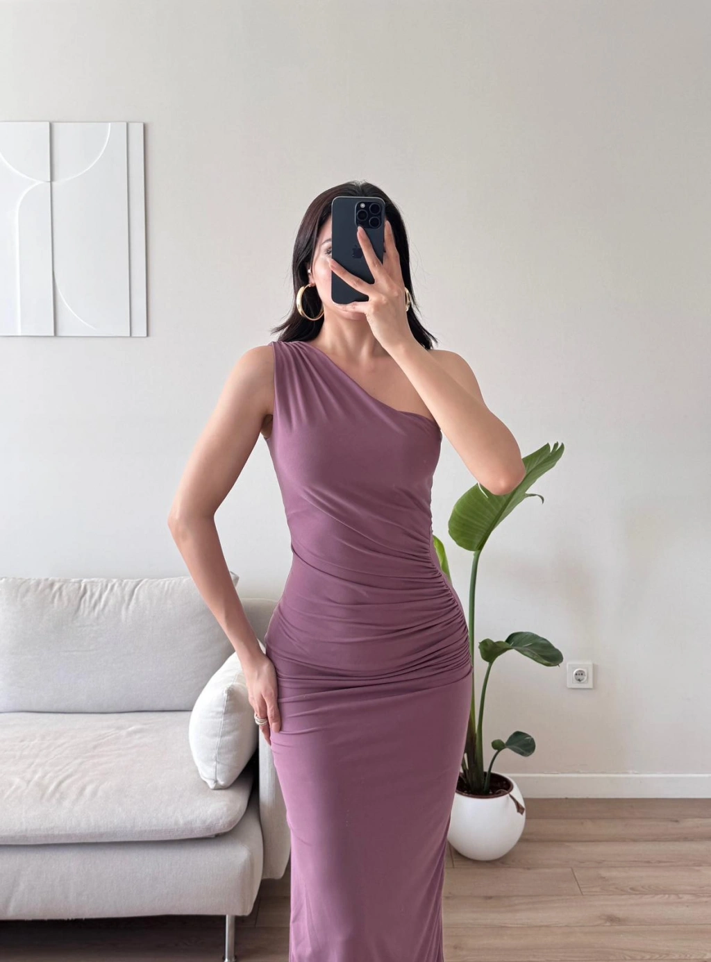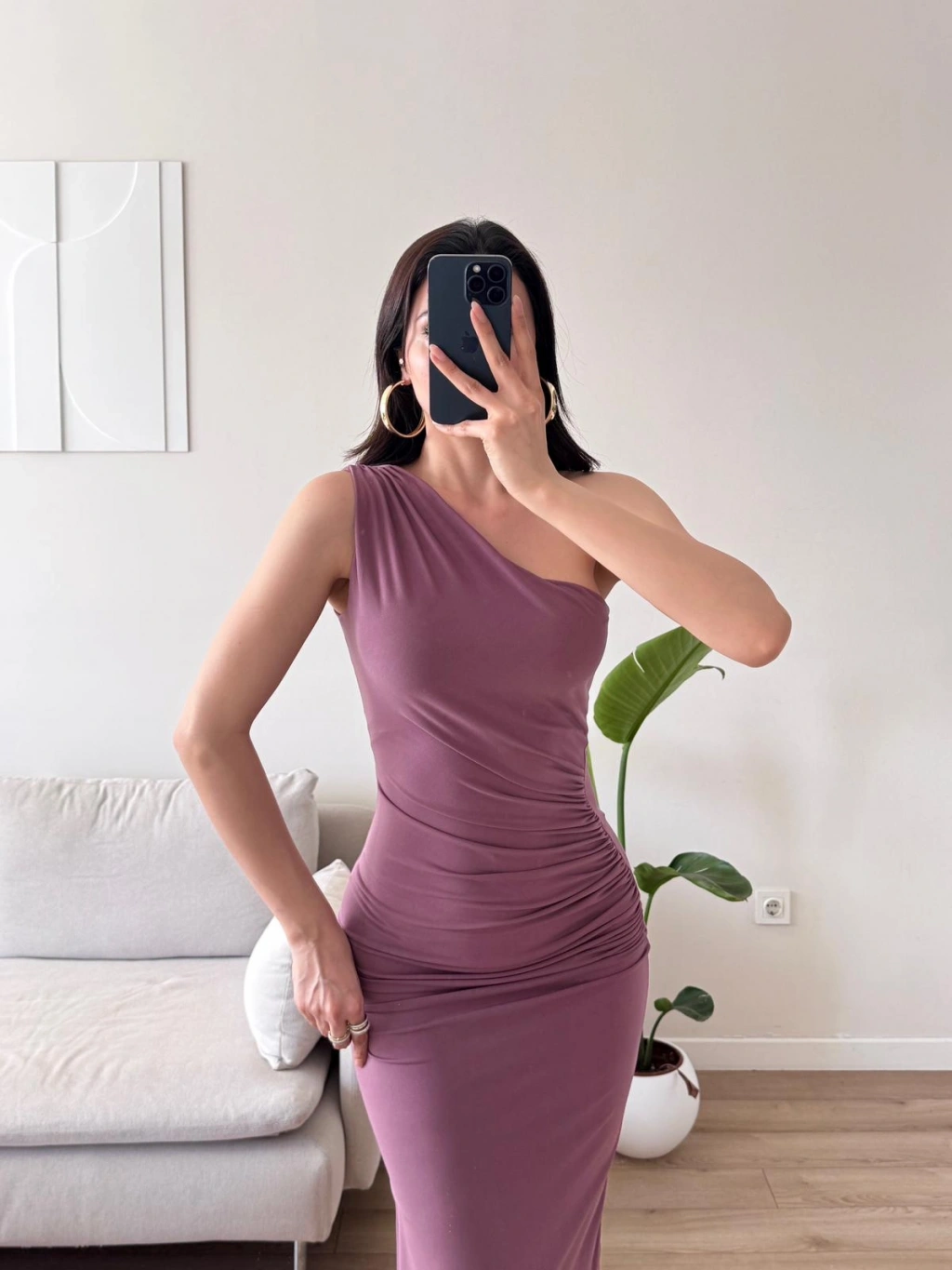 Omuz Detay Drapeli Elbise - GÜL KURUSU