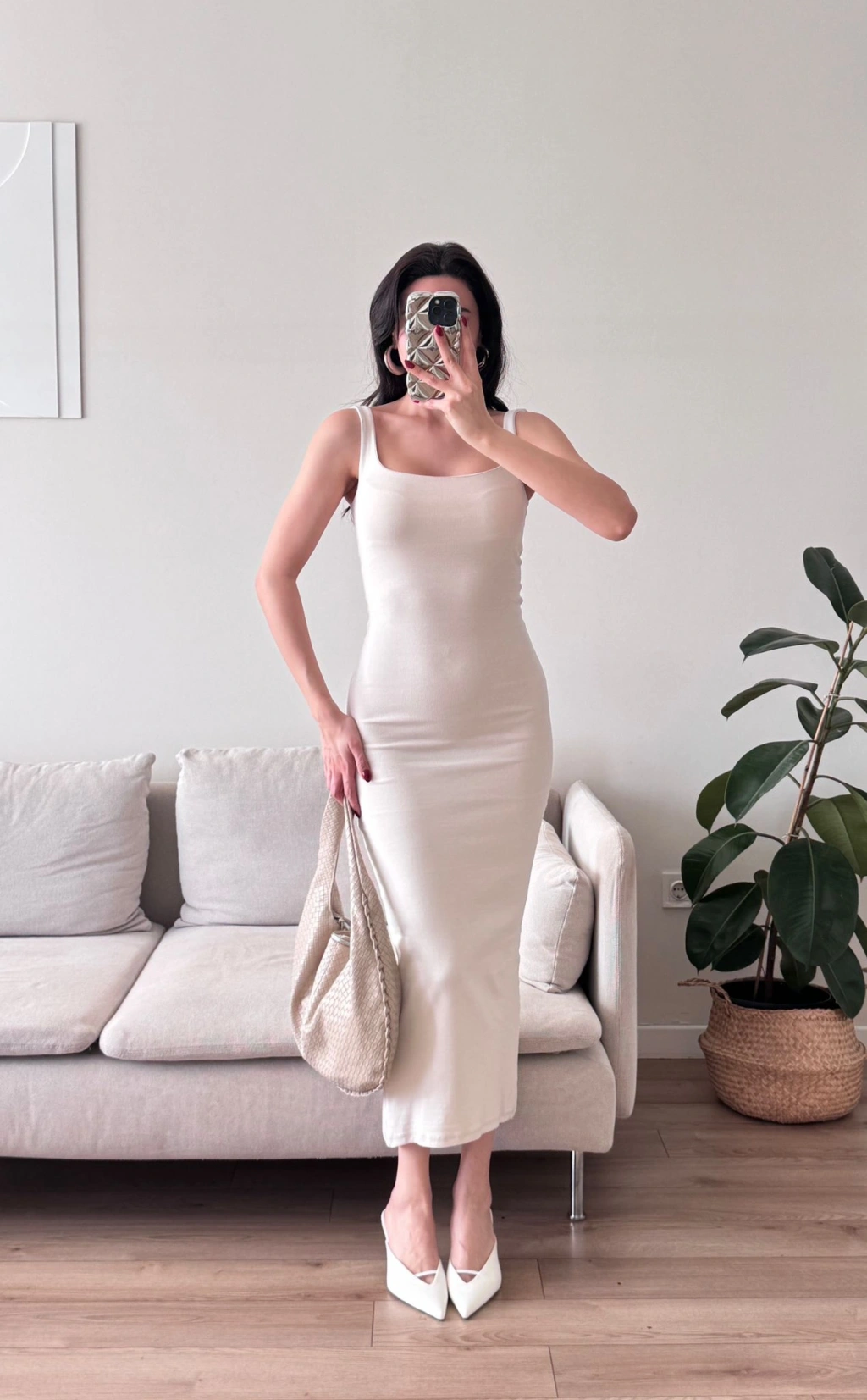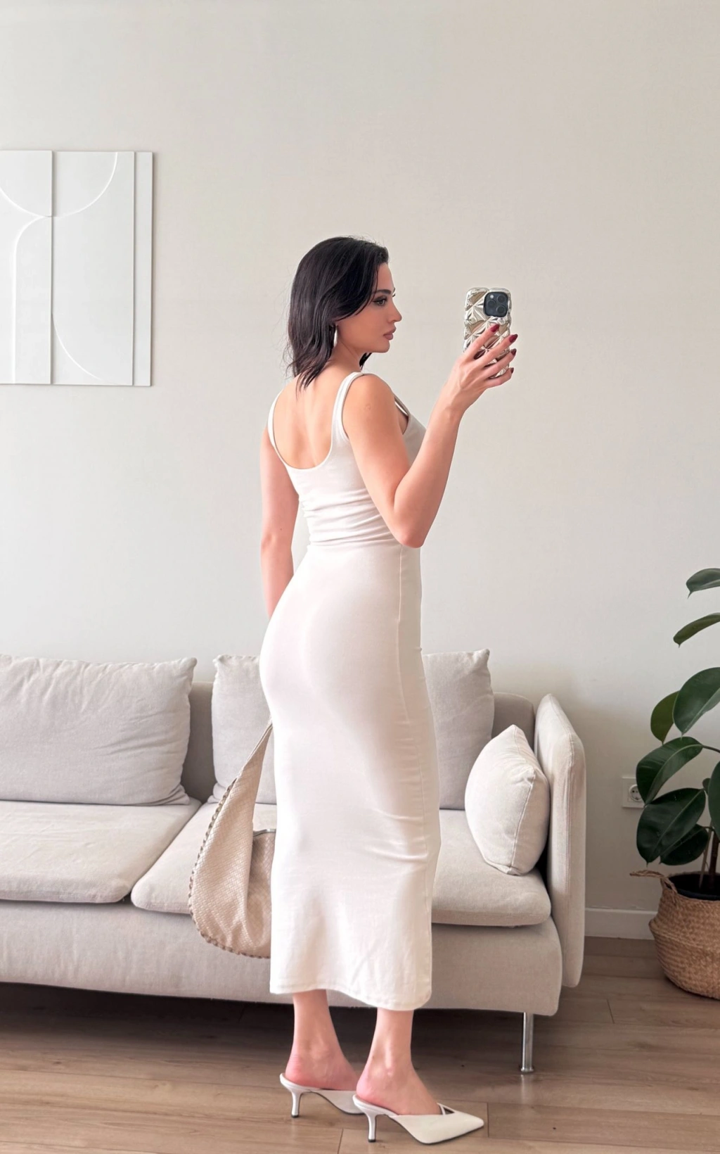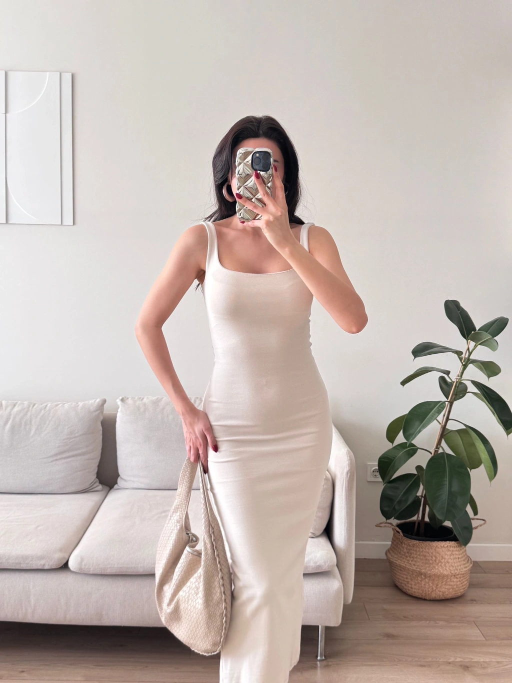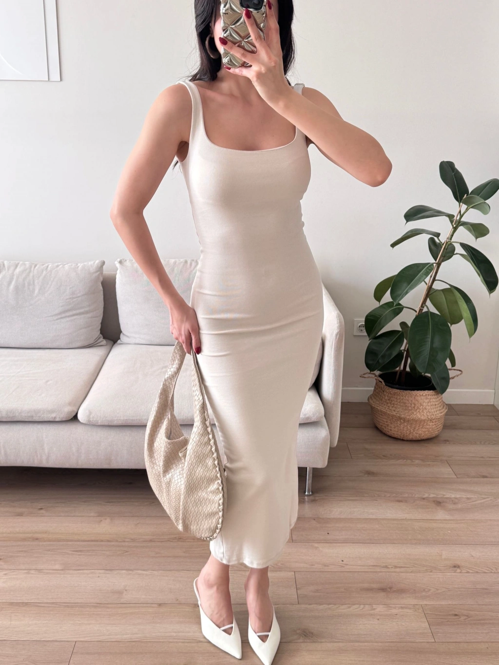 Ön Arka Kare Elbise - BEJ