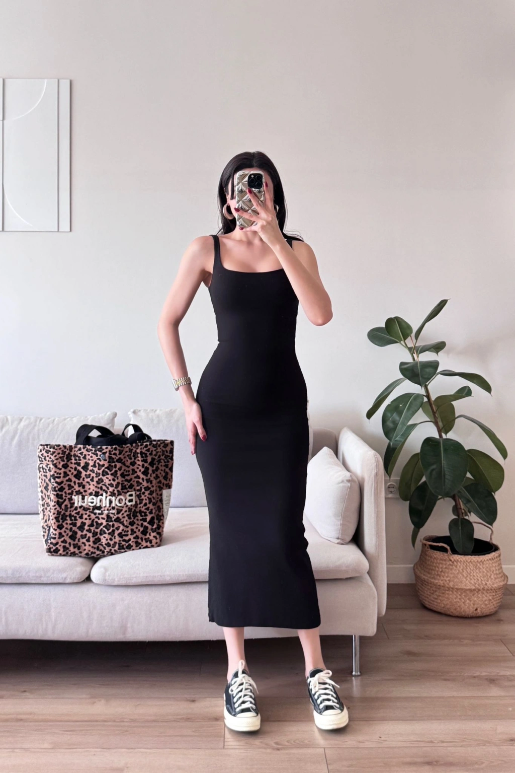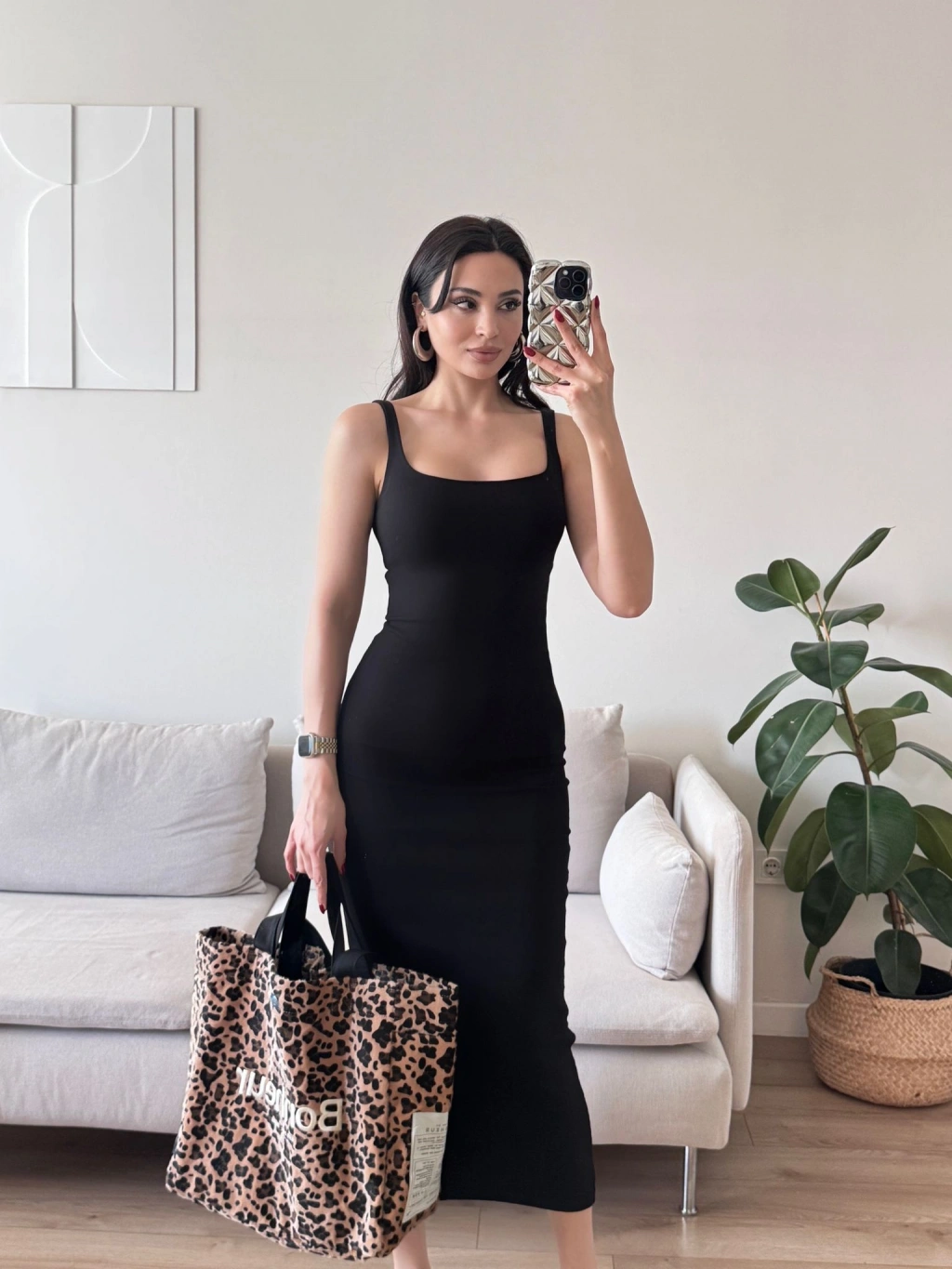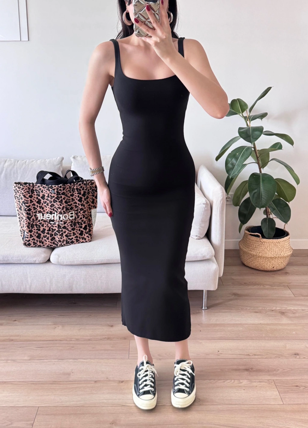 Ön Arka Kare Elbise - SİYAH