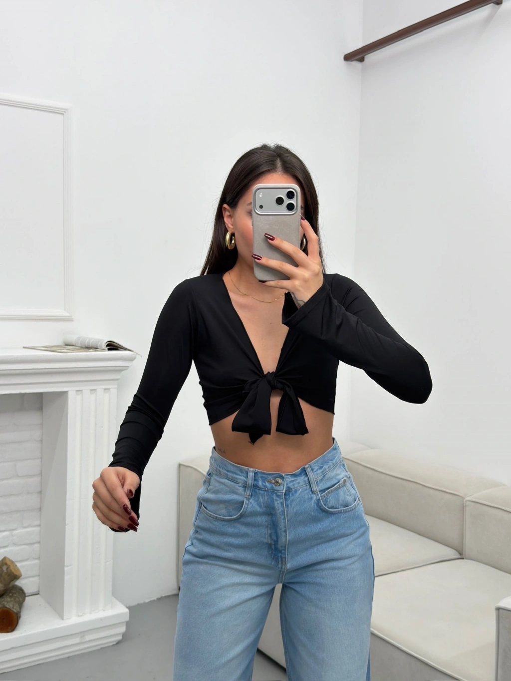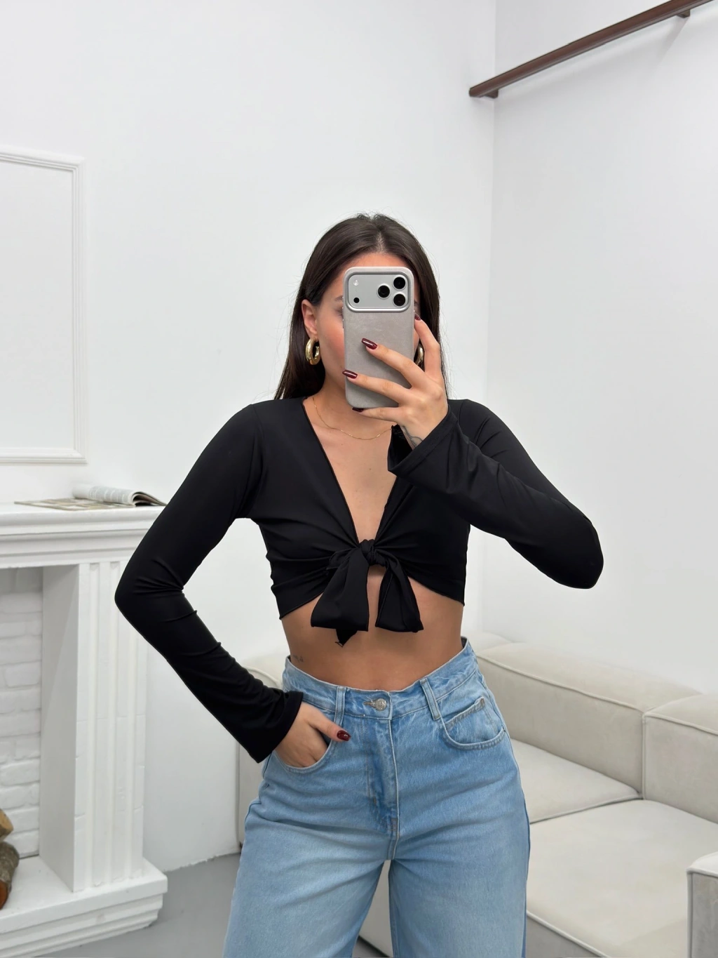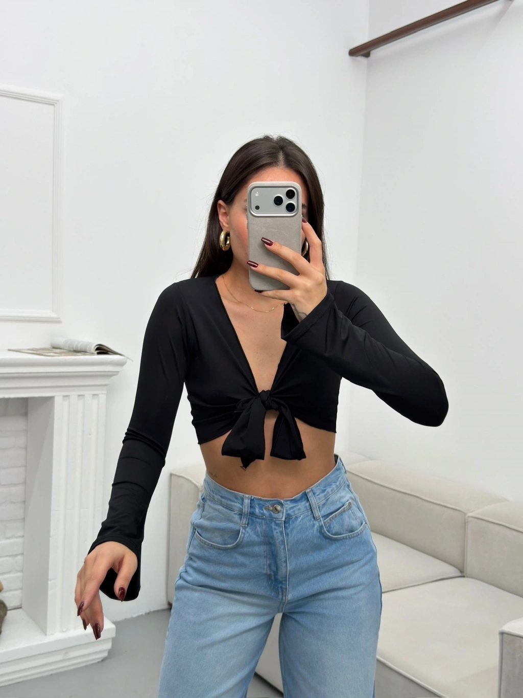 Ön Bağlamalı Crop - SİYAH