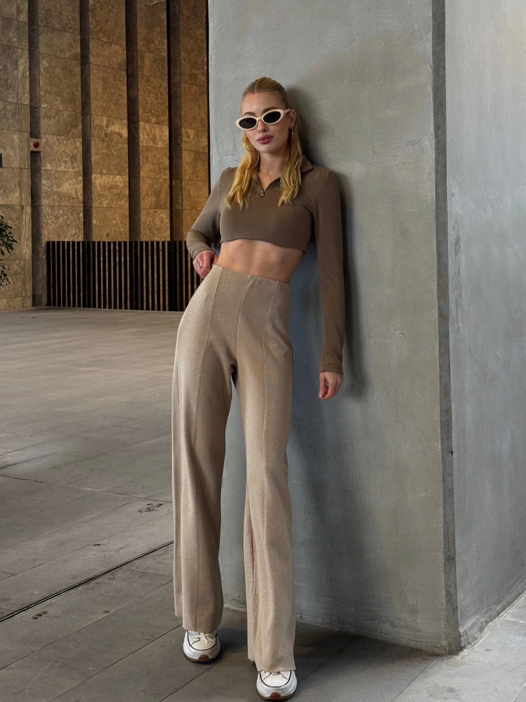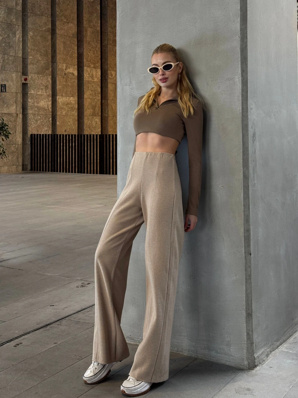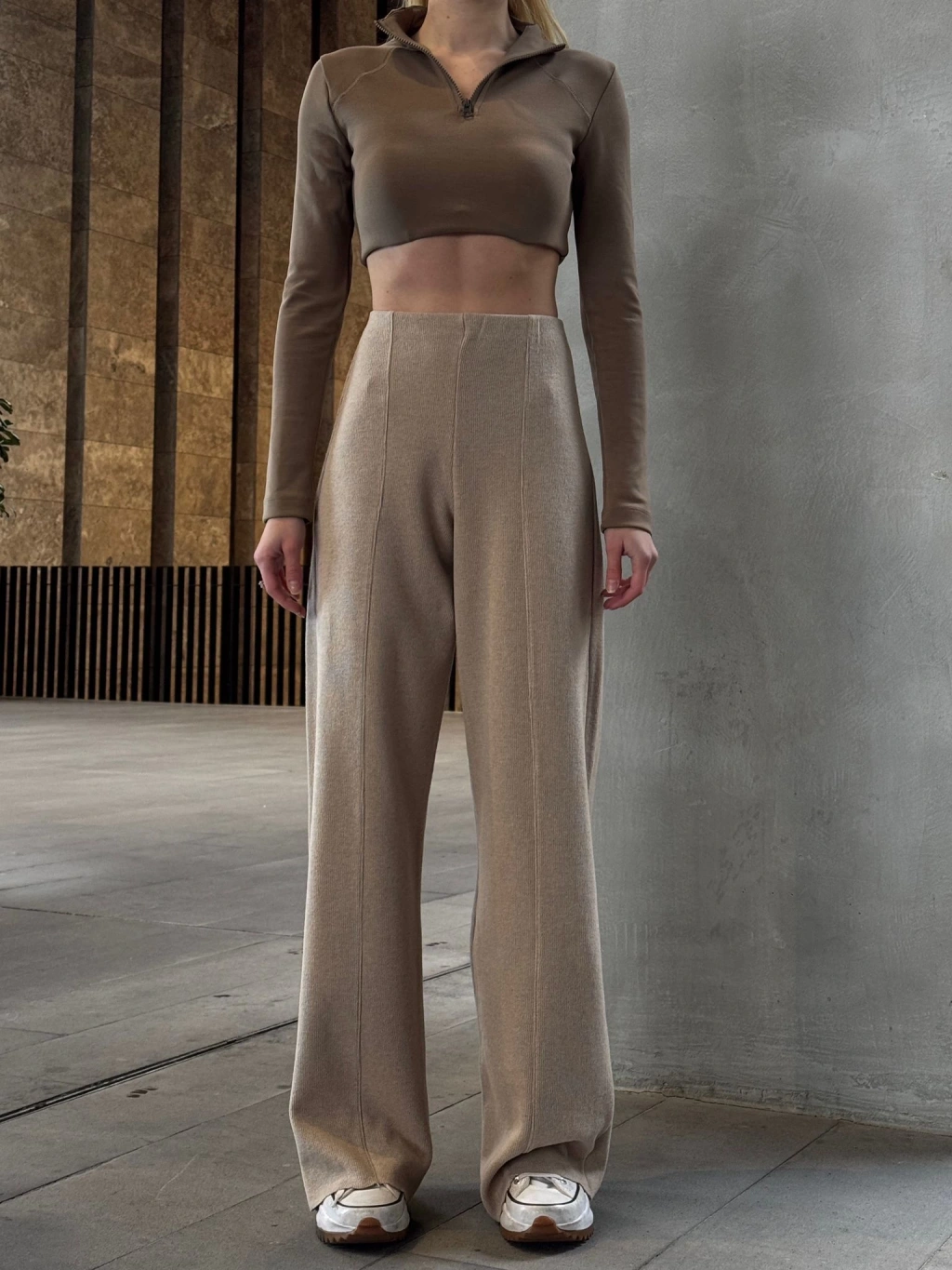 Ön Dikişli Selanik Pantolon - SÜTLÜ KAHVE