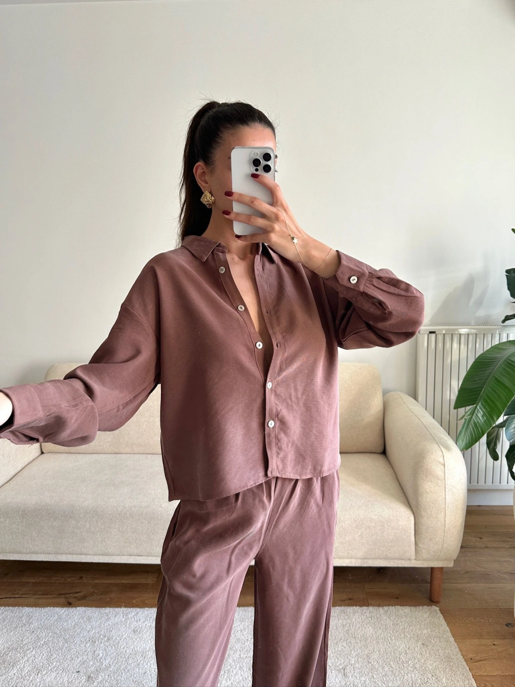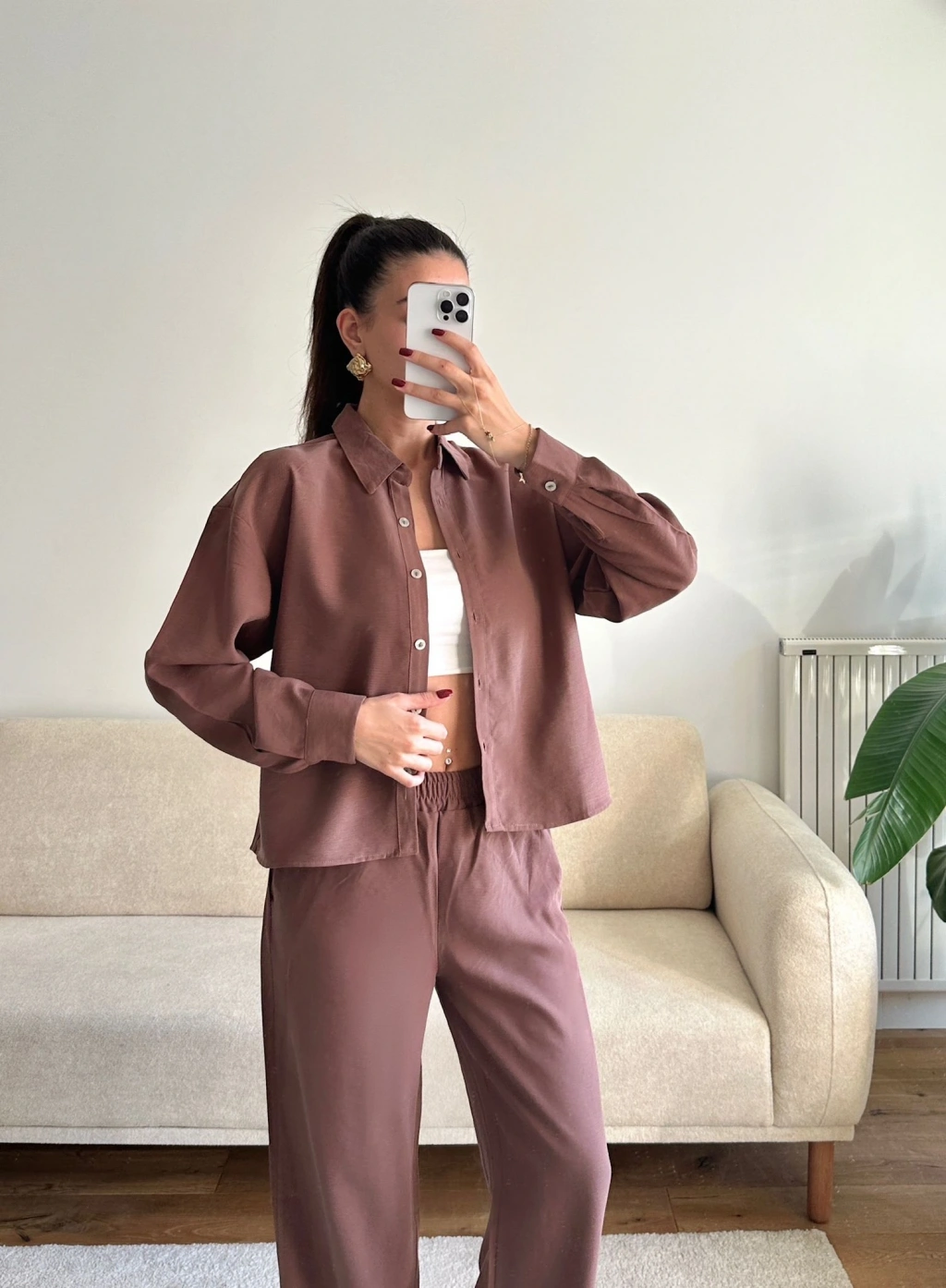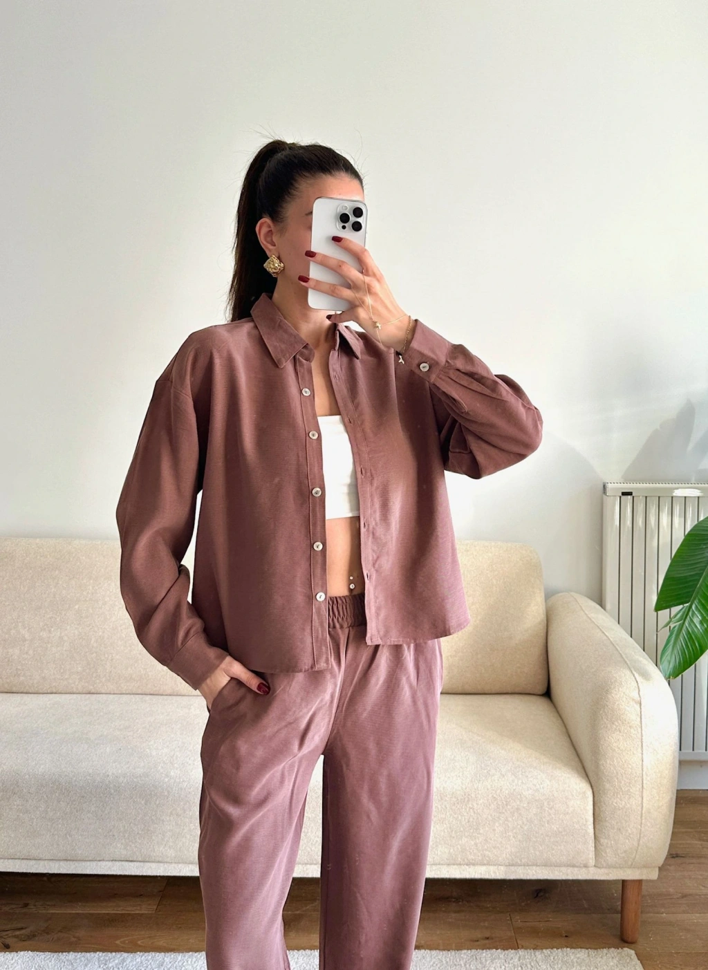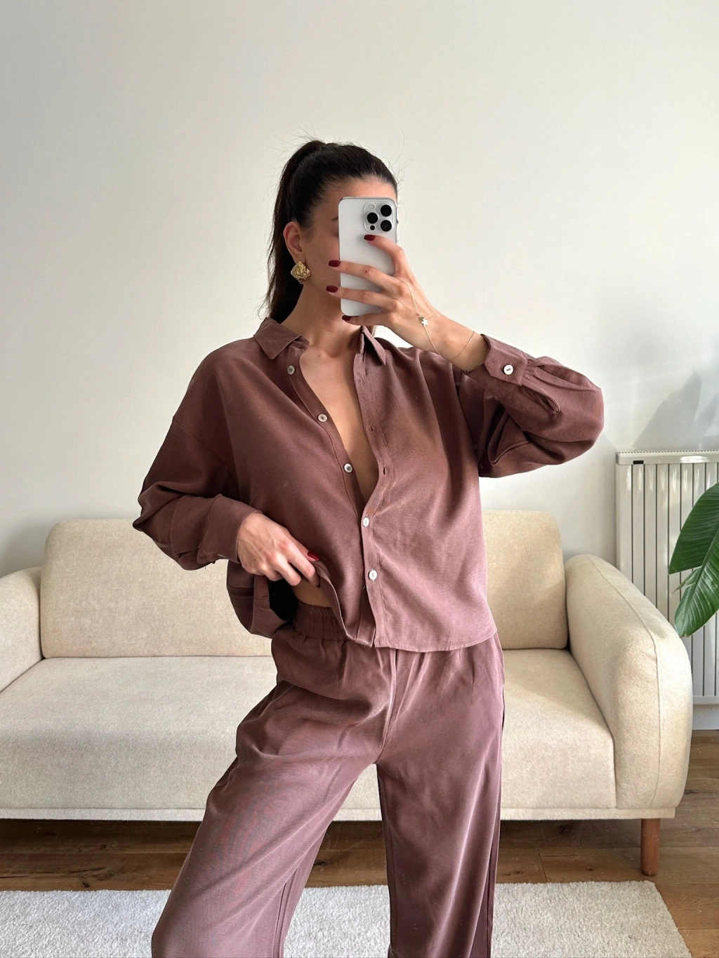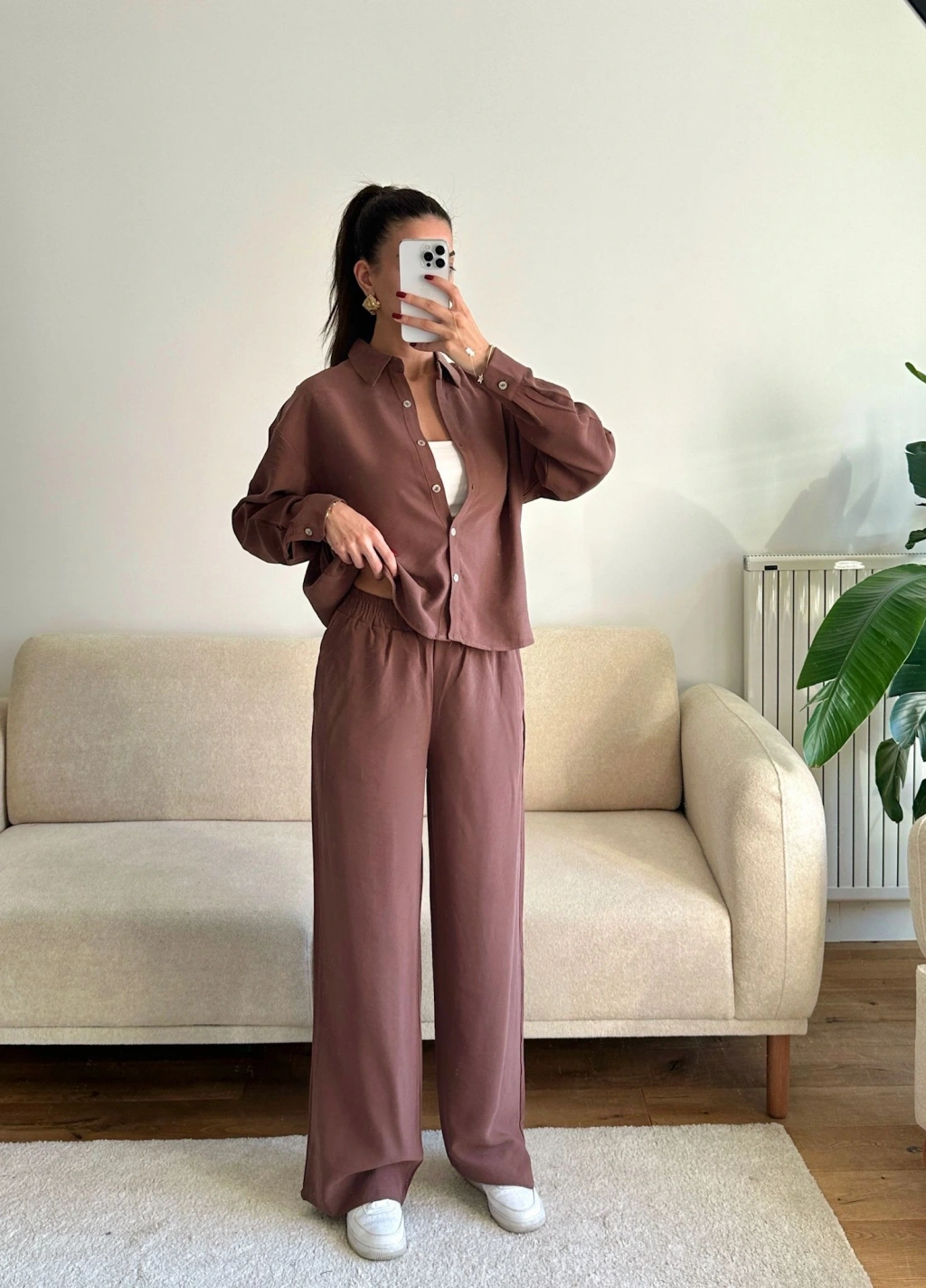 Oversize Gömlek & Pantolon Takım - KAHVE