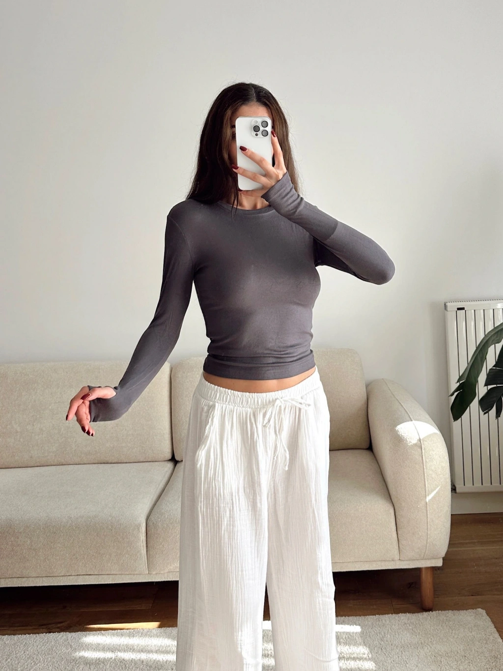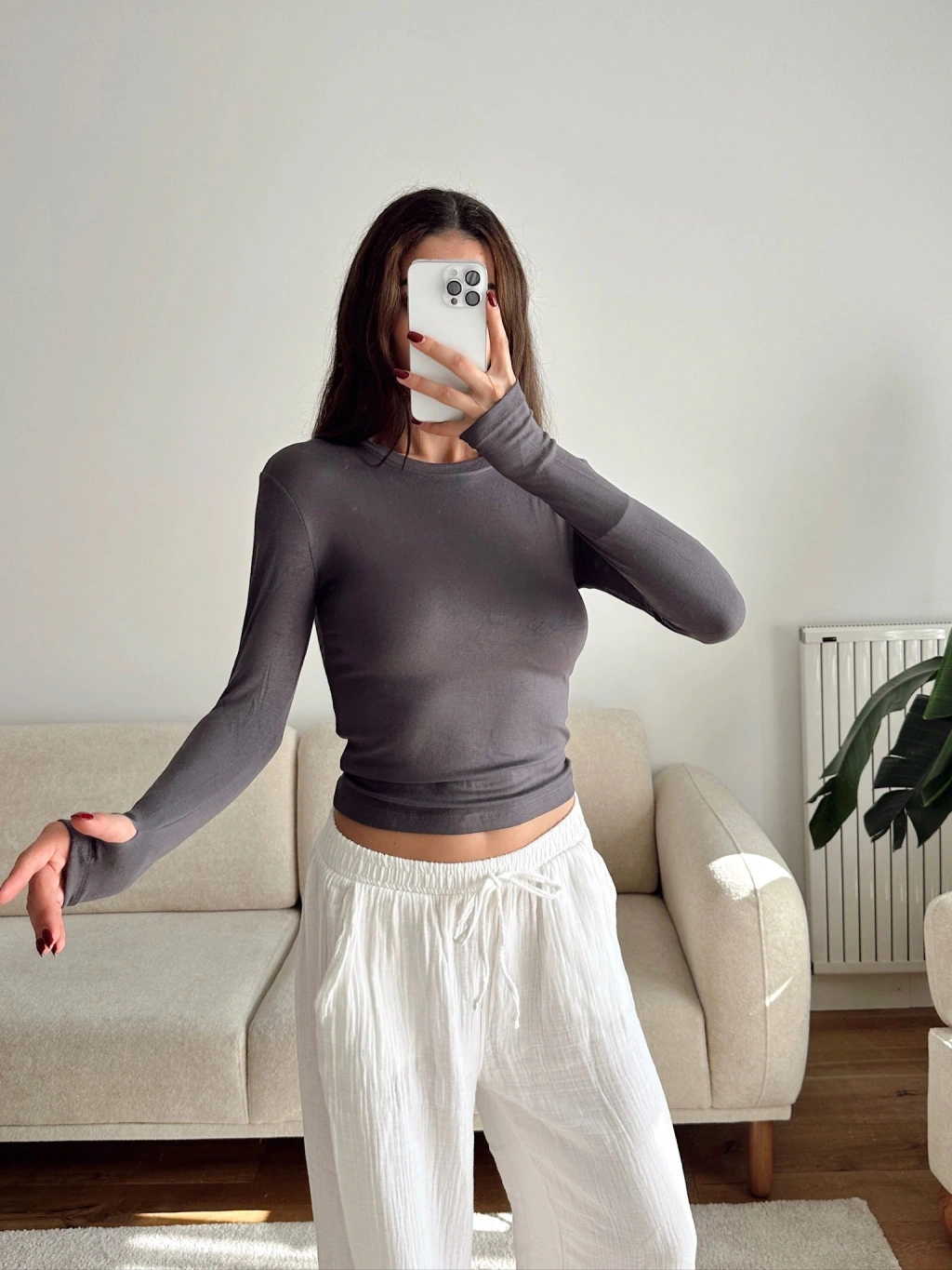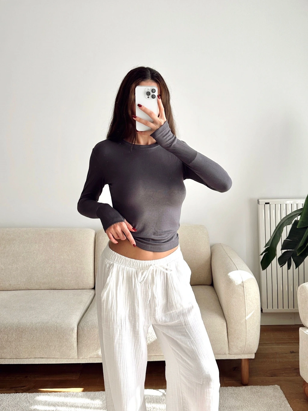 Parmak Geçmeli Basic Crop - GRİ