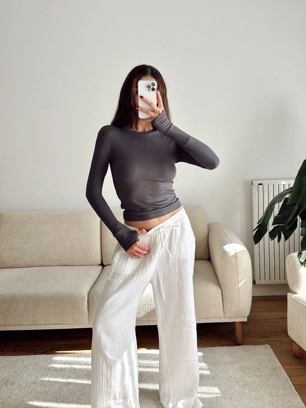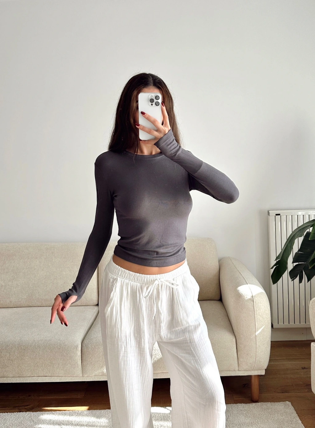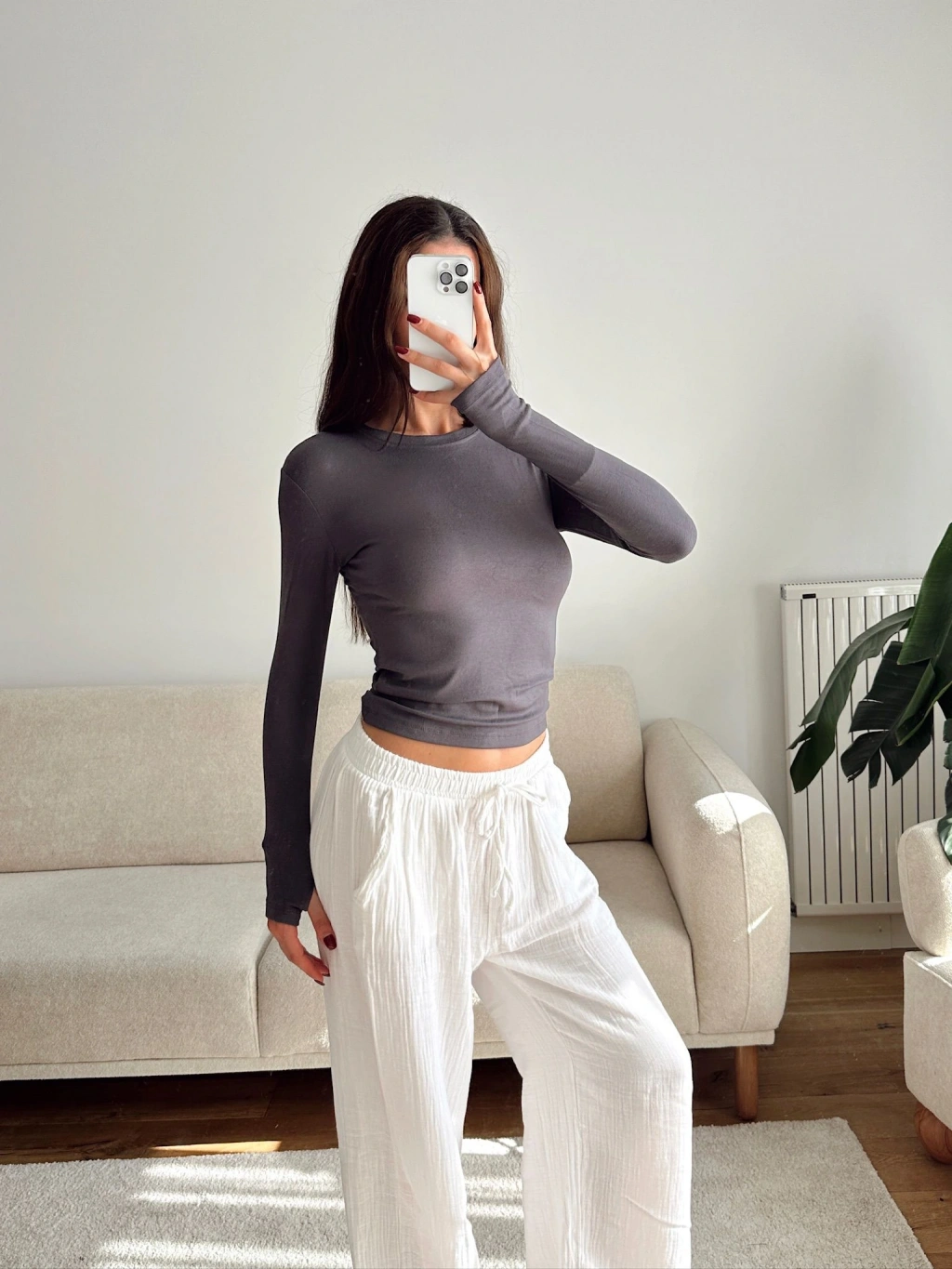 Parmak Geçmeli Basic Crop - GRİ