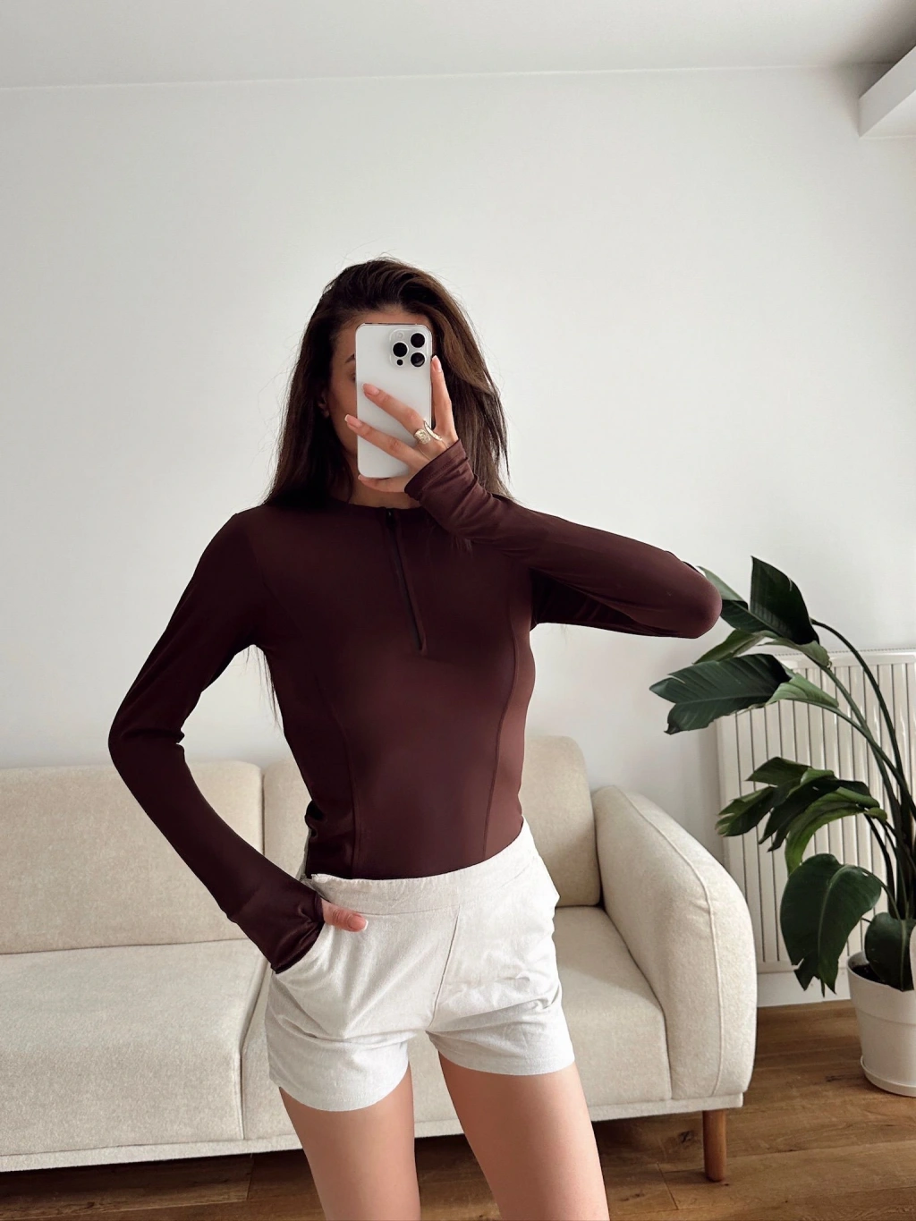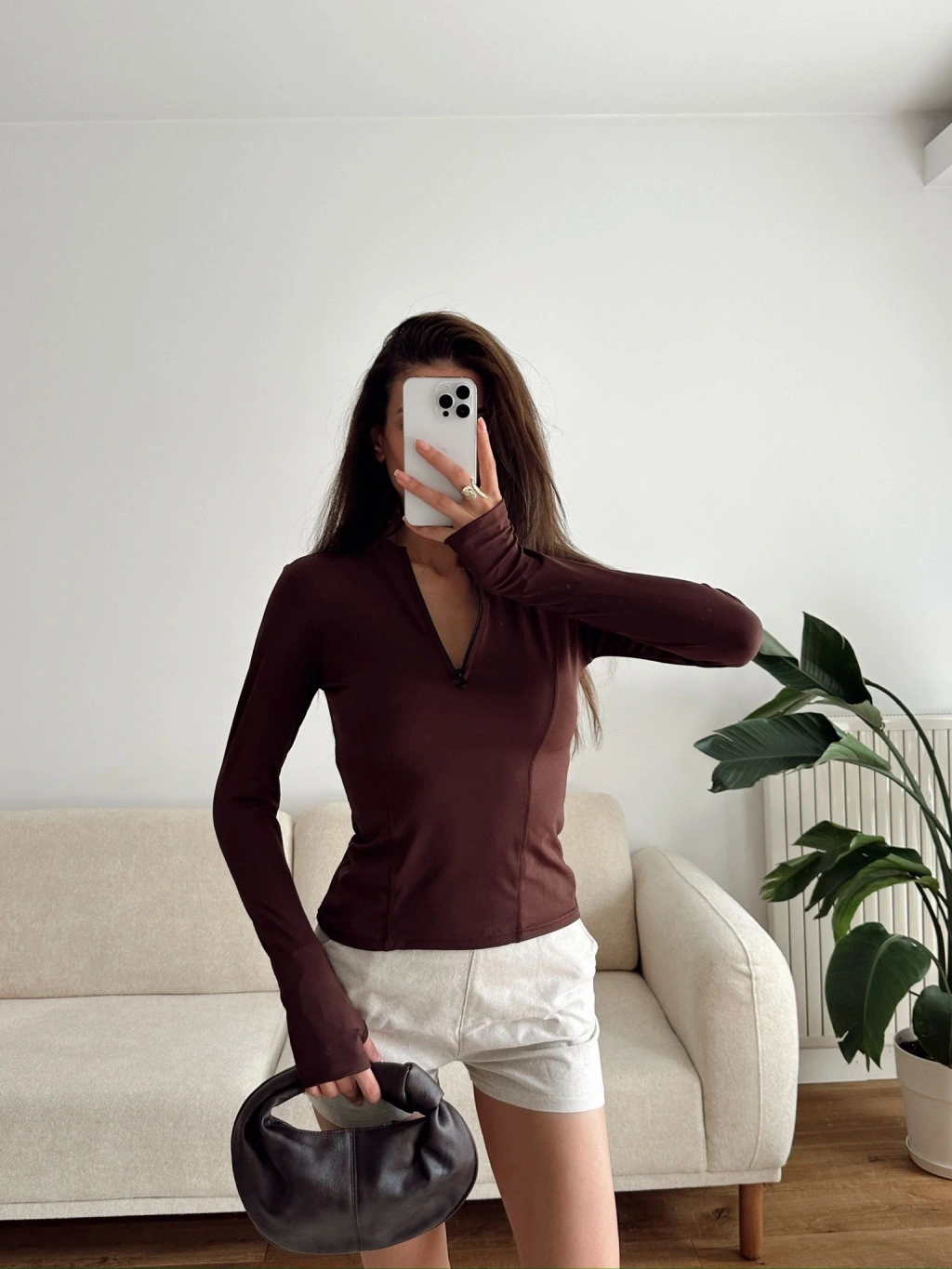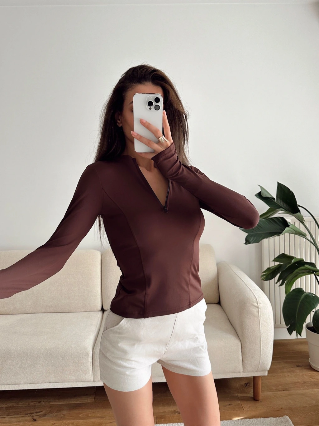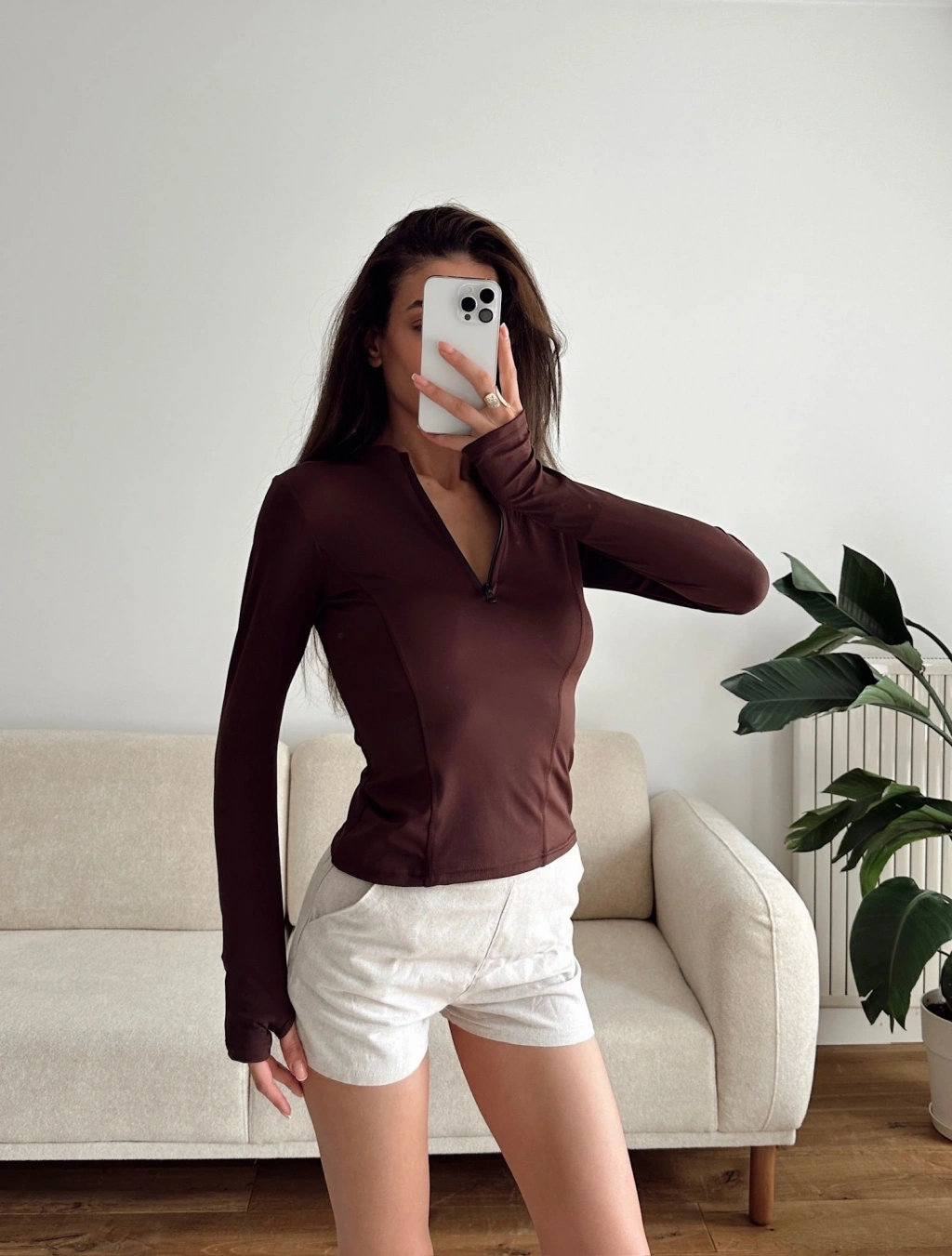 Parmak Geçmeli Fermuar Crop - KAHVE