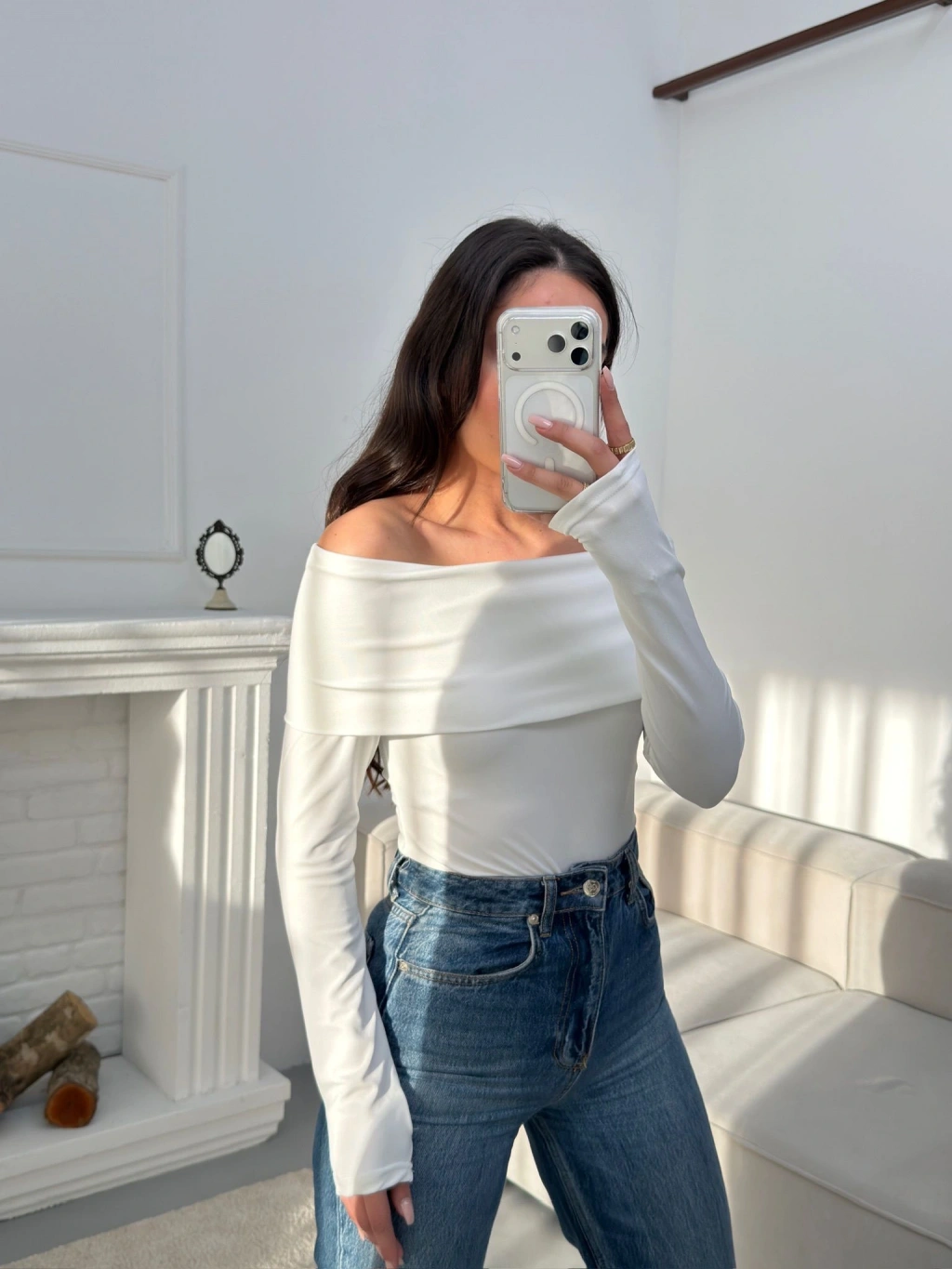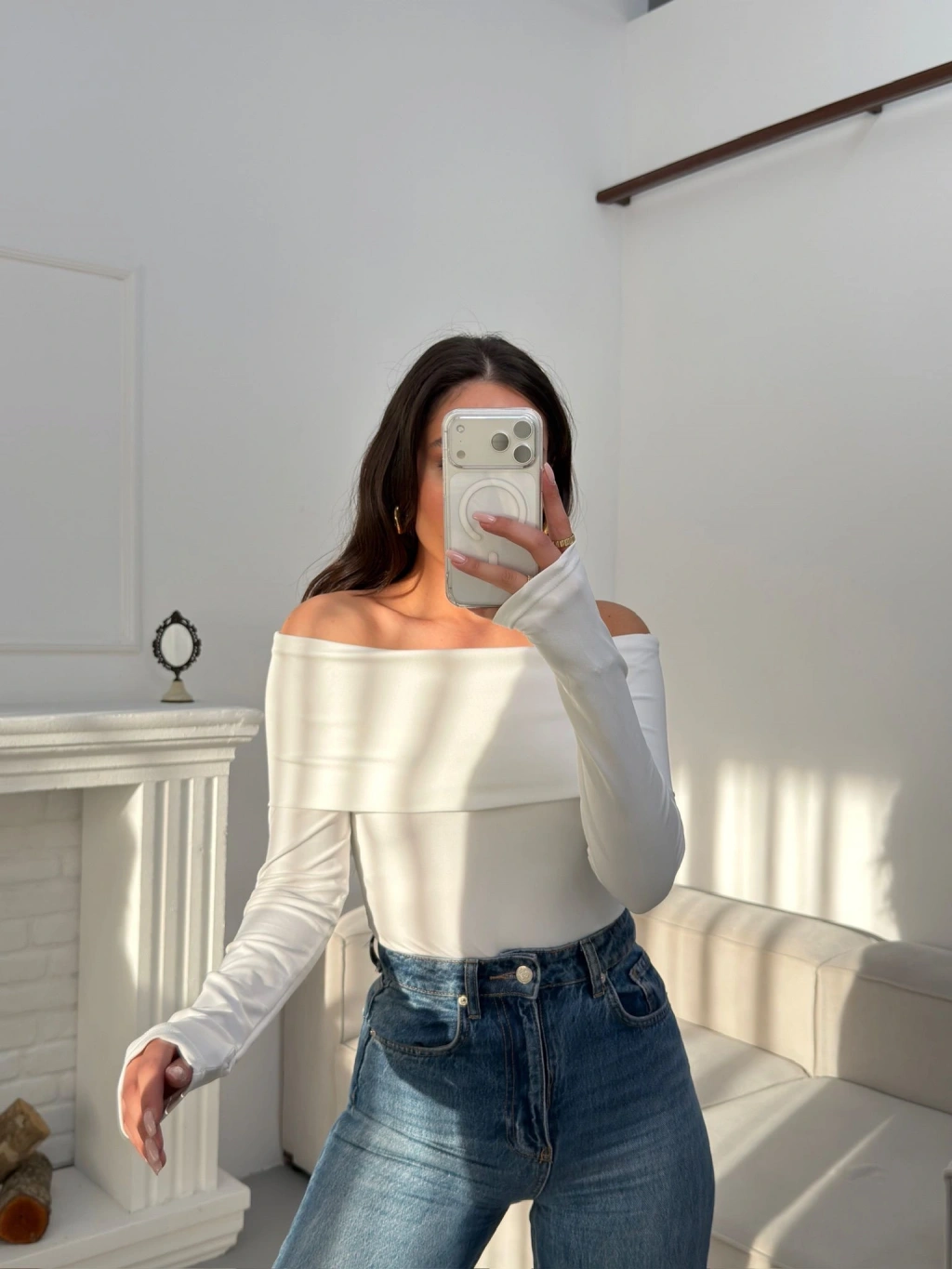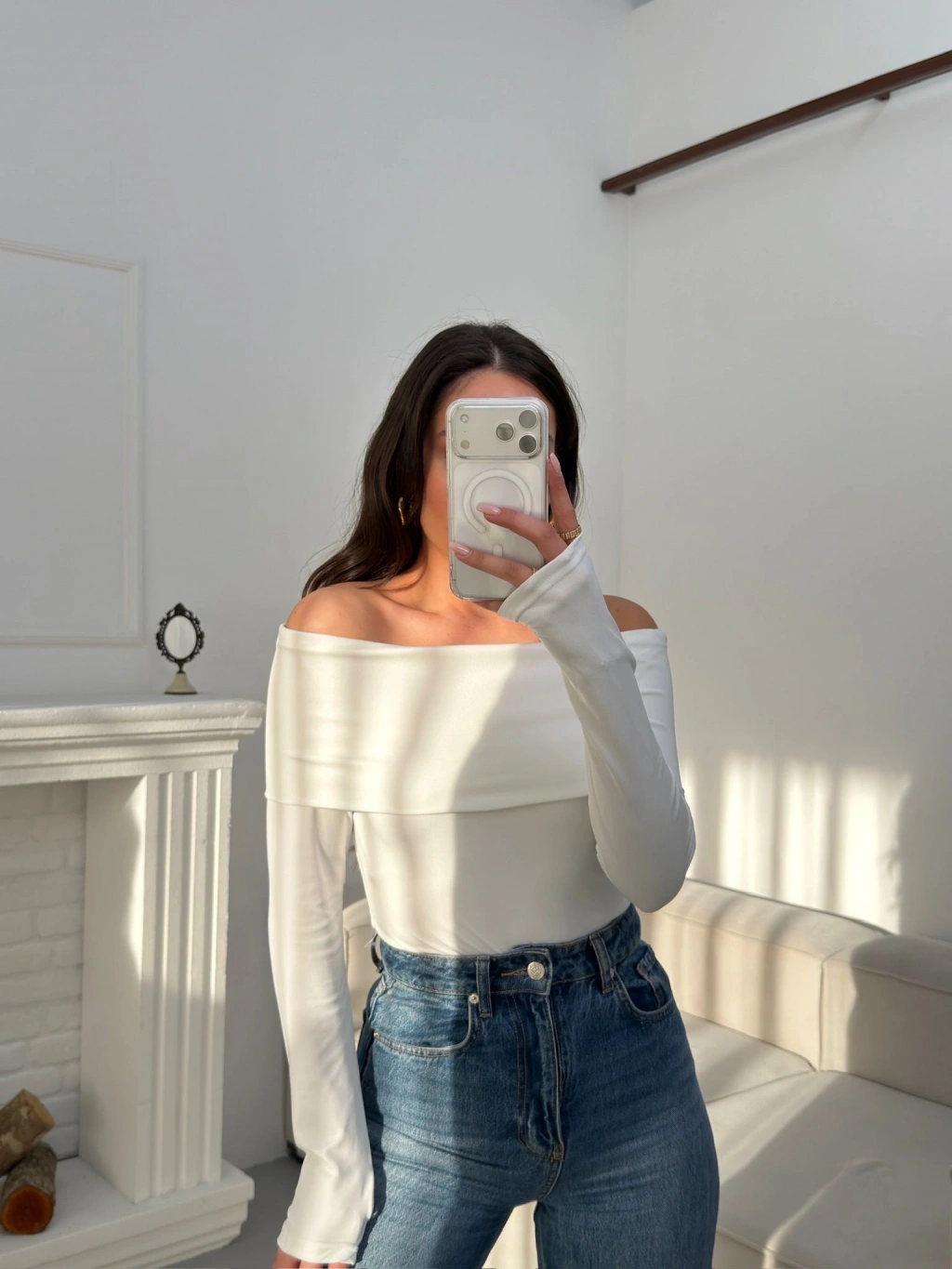 Parmak Geçmeli Madonna Bodysuit - BEYAZ