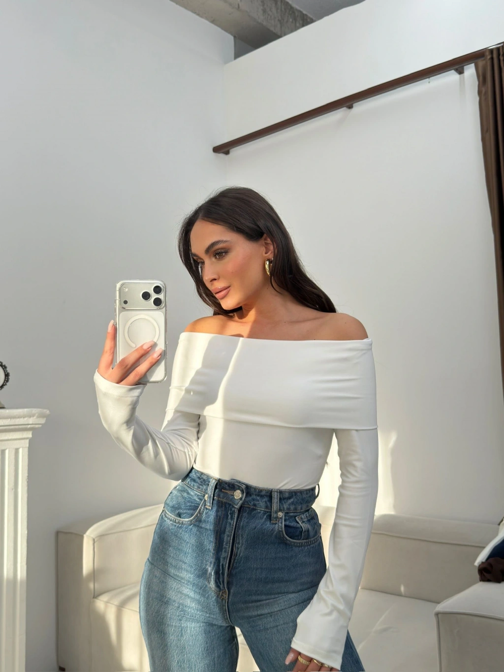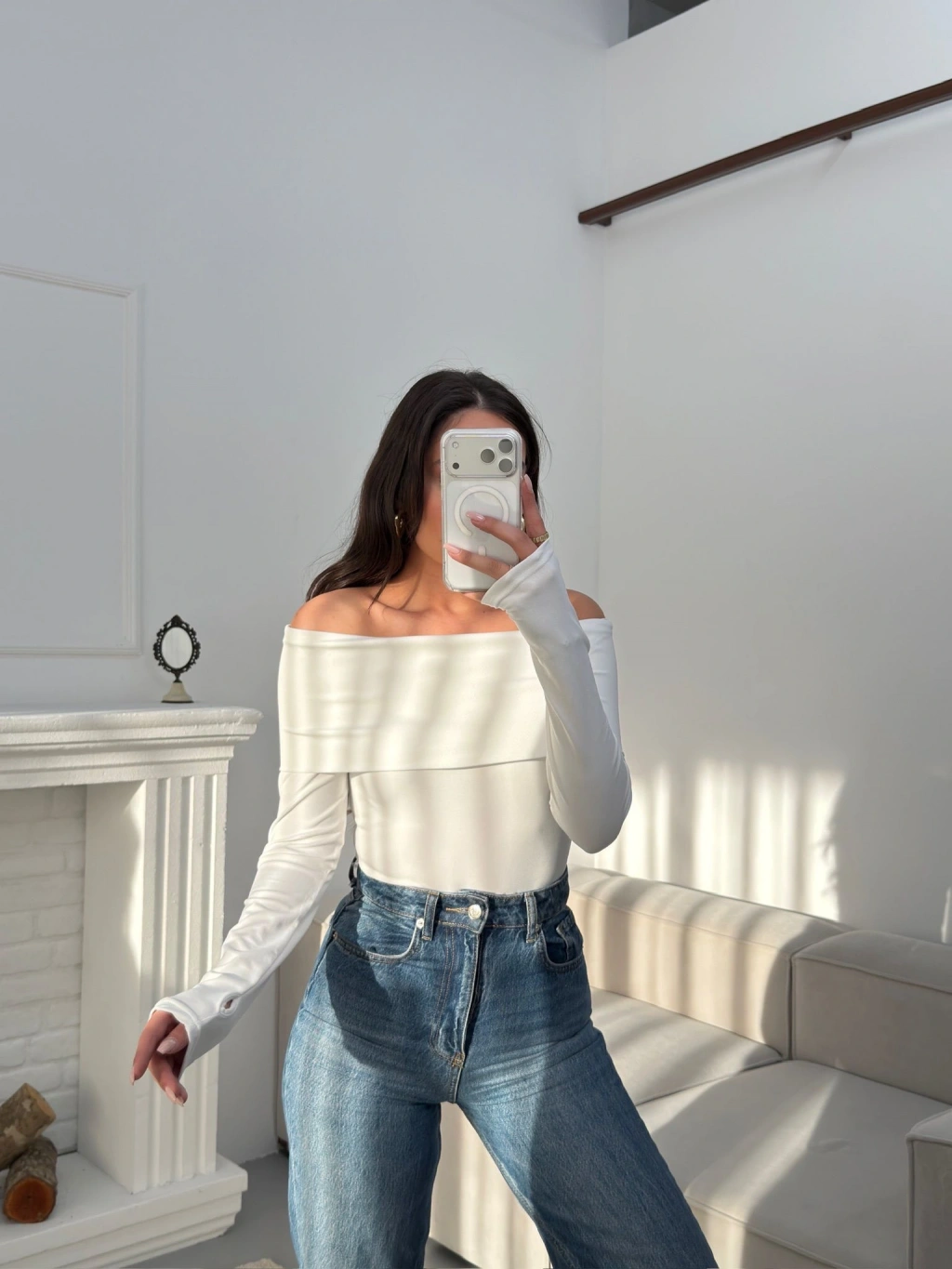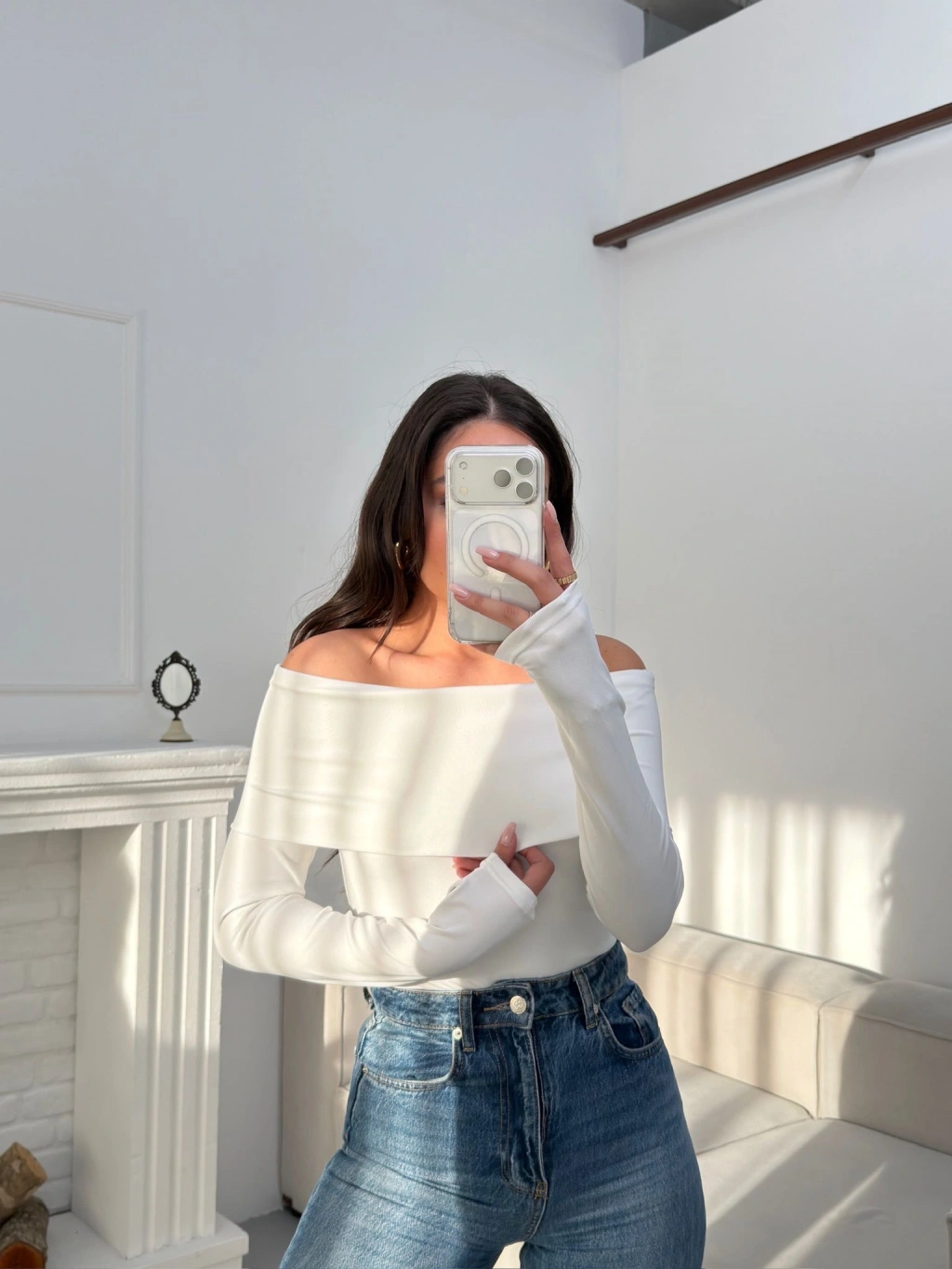 Parmak Geçmeli Madonna Bodysuit - BEYAZ