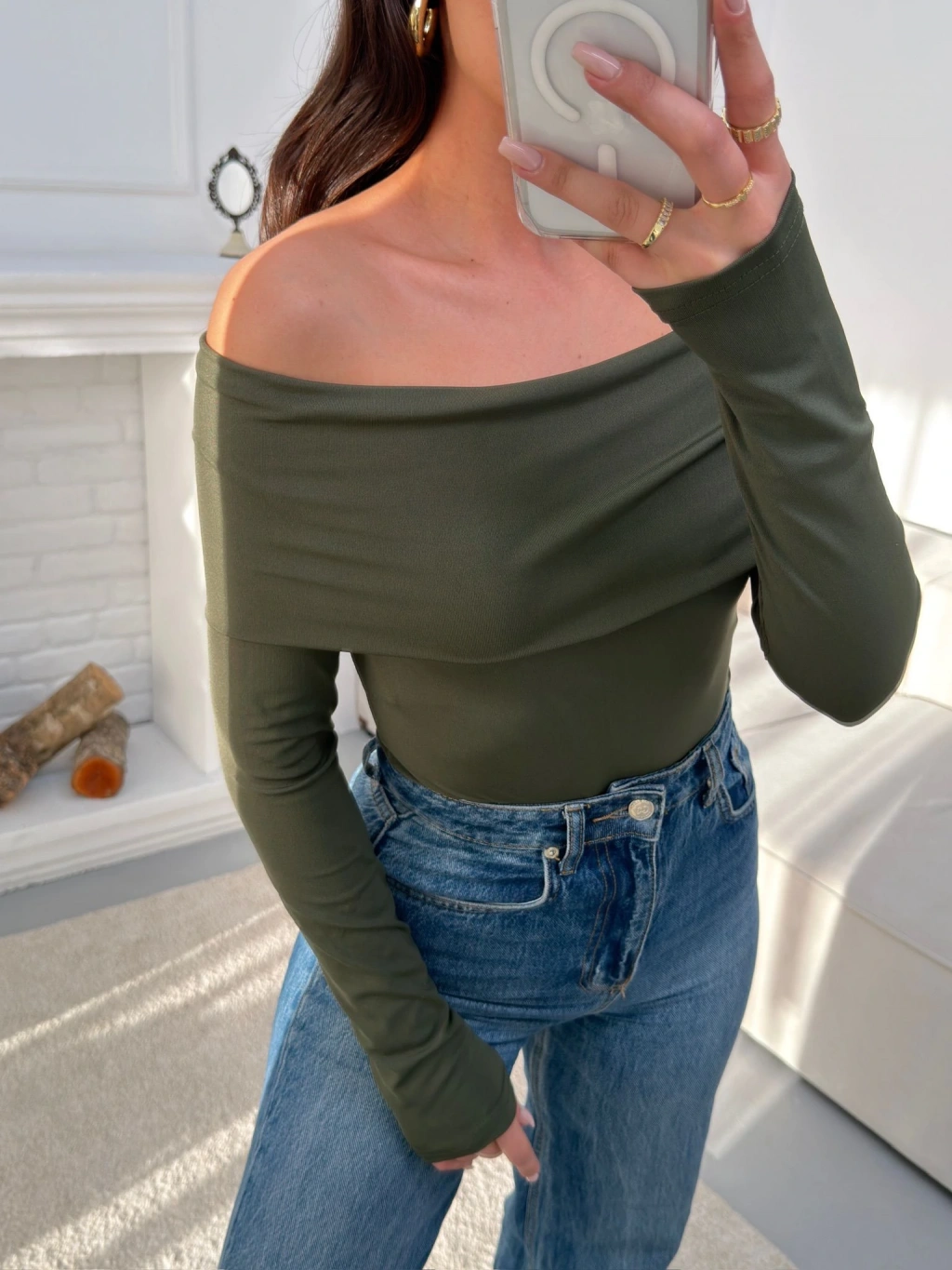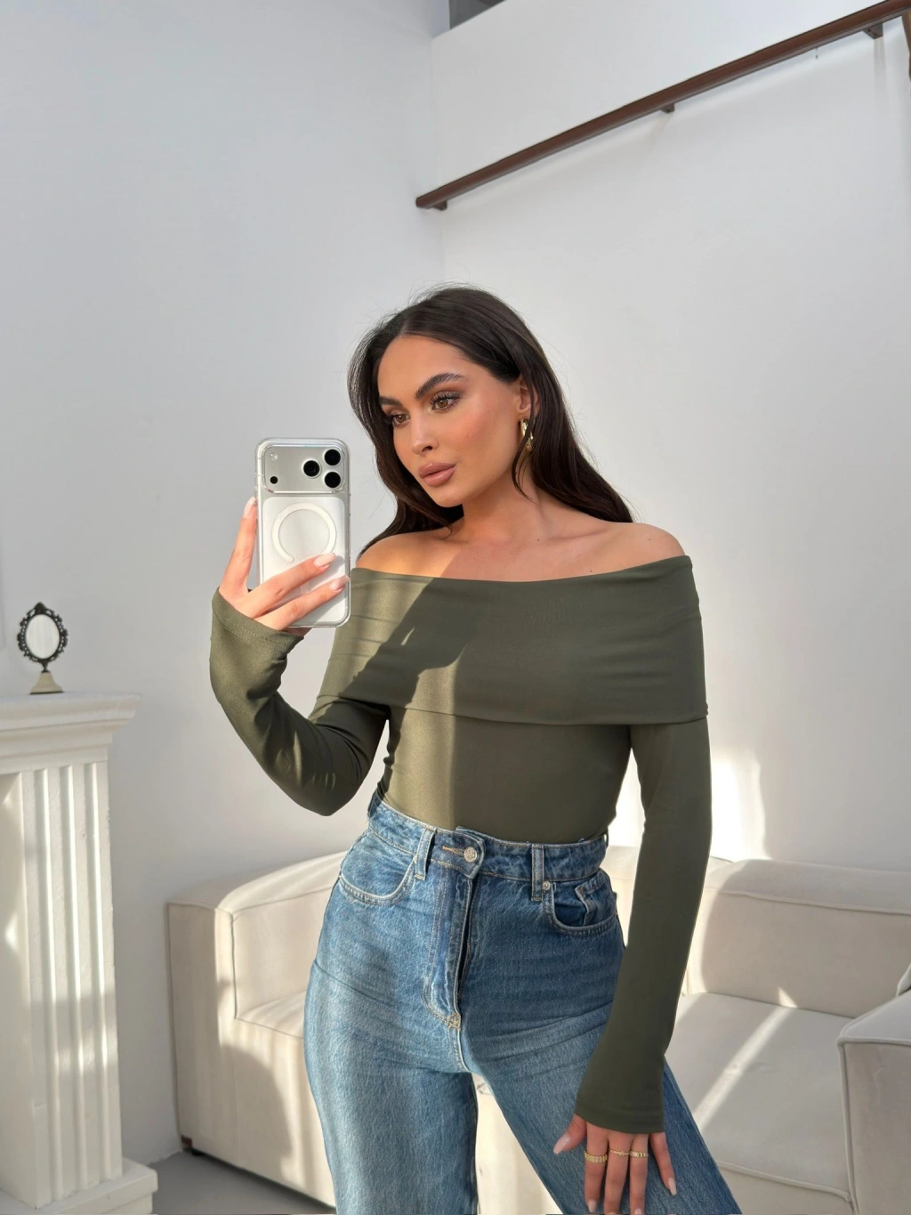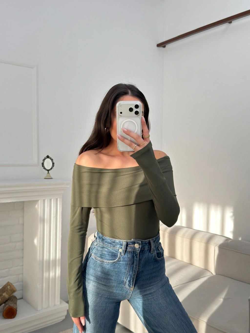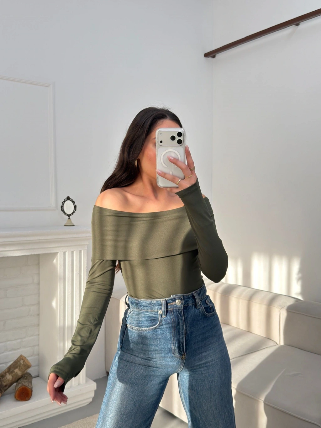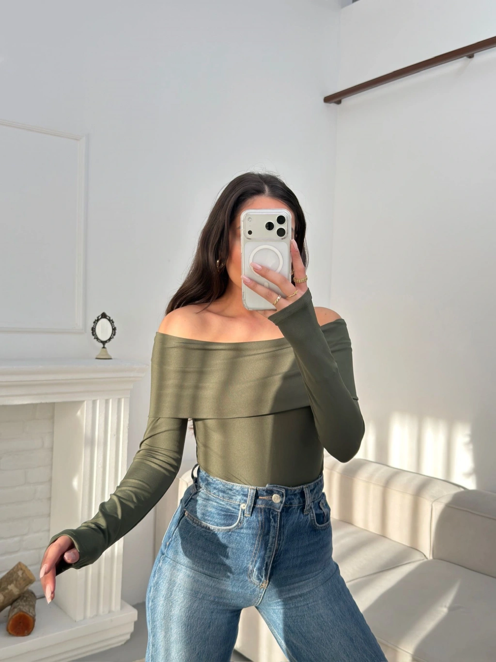 Parmak Geçmeli Madonna Bodysuit - HAKİ