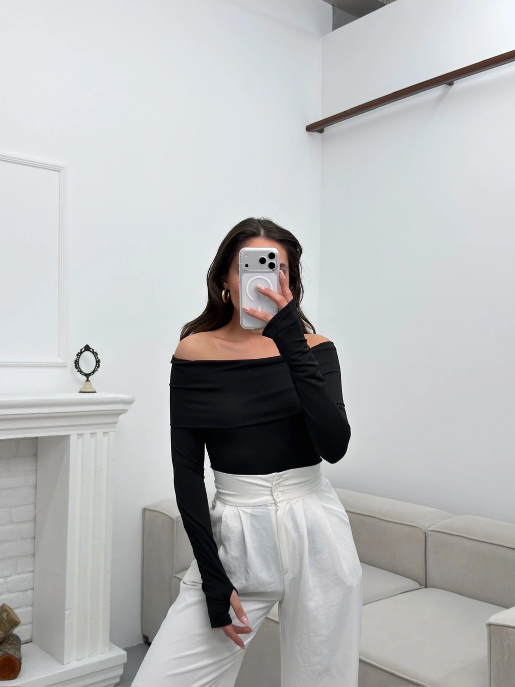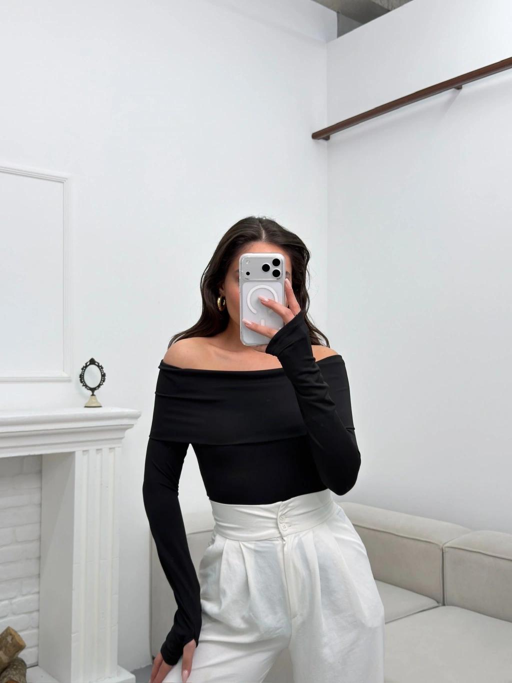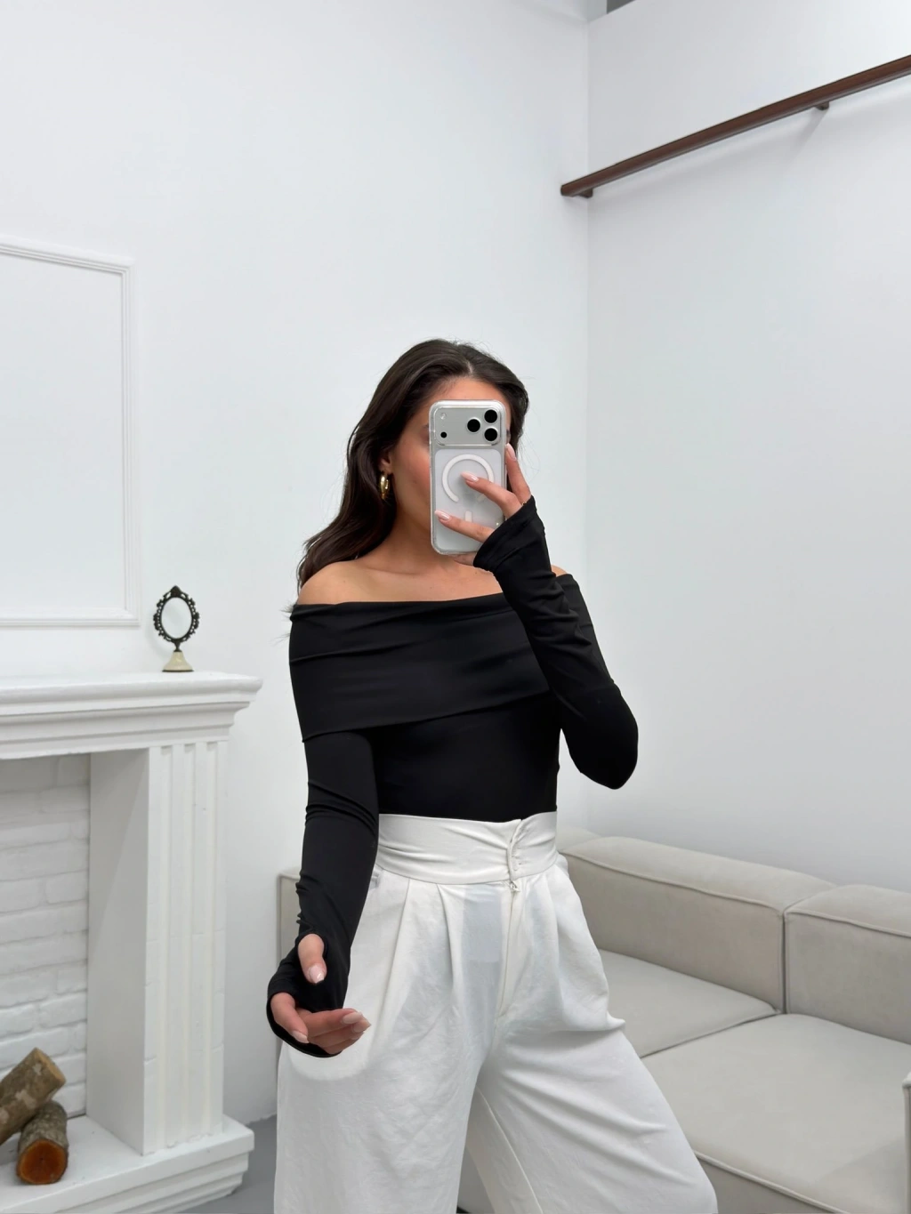 Parmak Geçmeli Madonna Bodysuit - SİYAH
