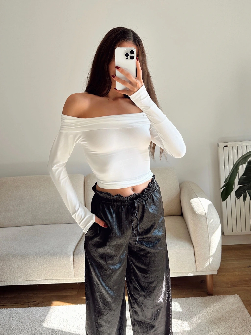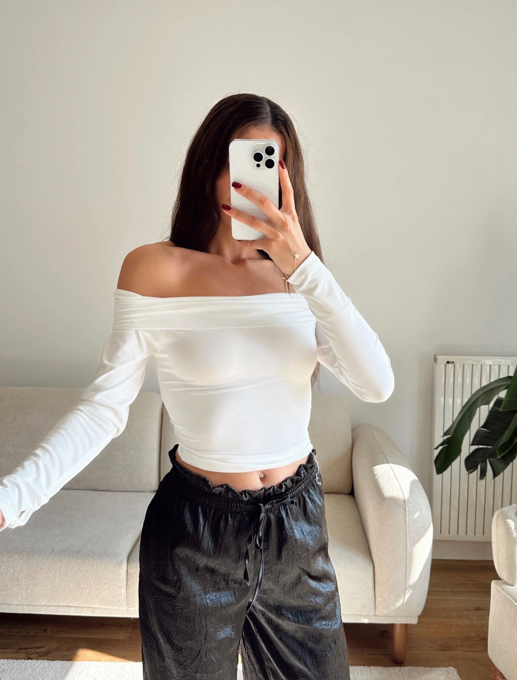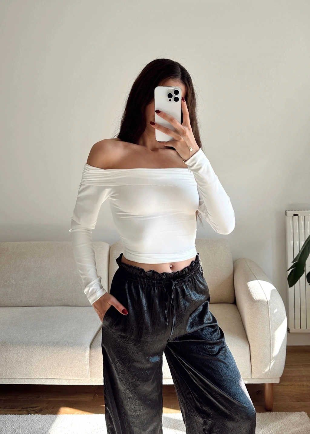 Parmak Geçmeli Madonna Crop - BEYAZ