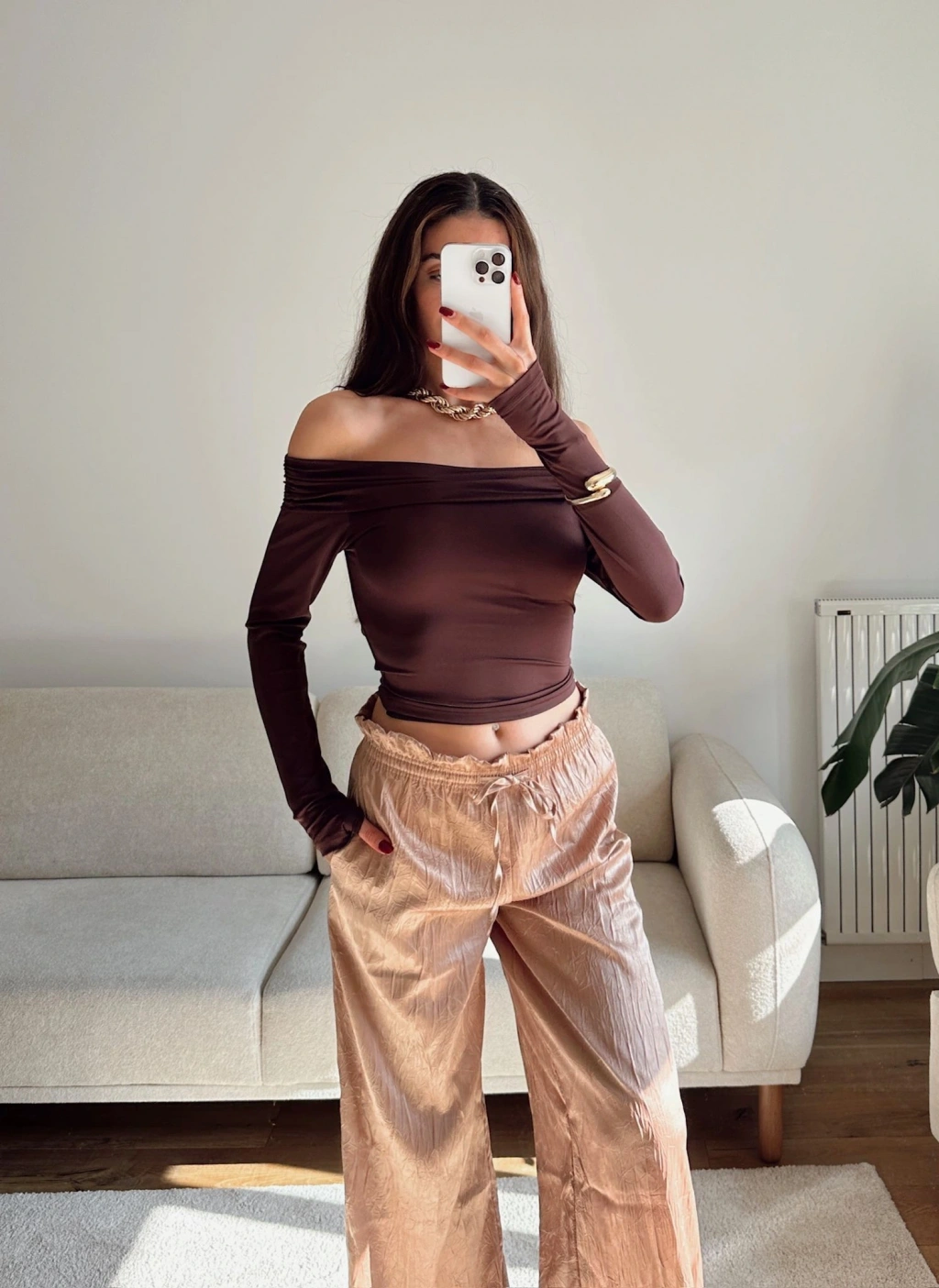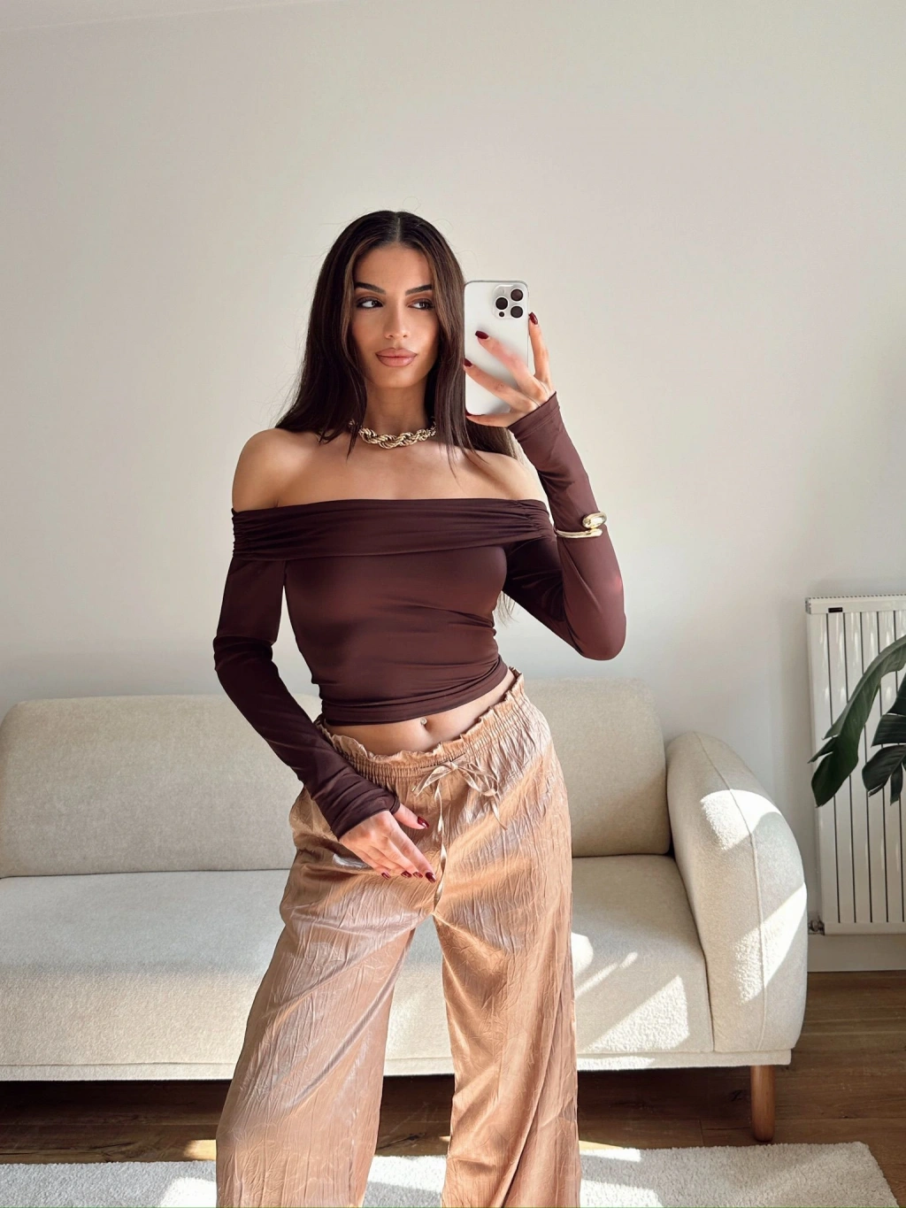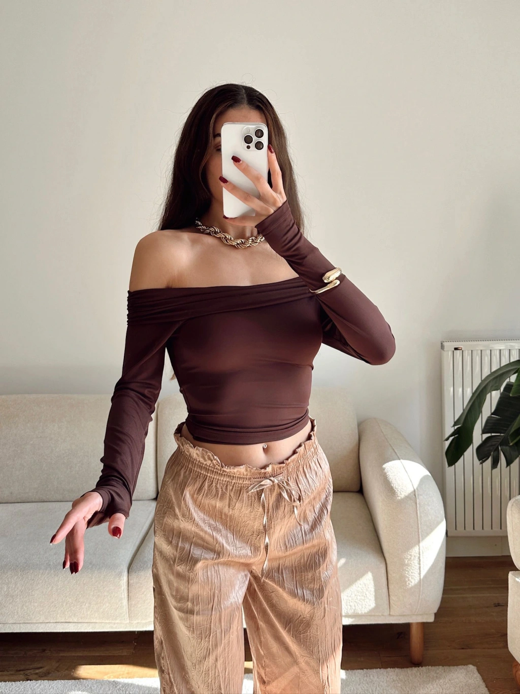 Parmak Geçmeli Madonna Crop - KAHVE