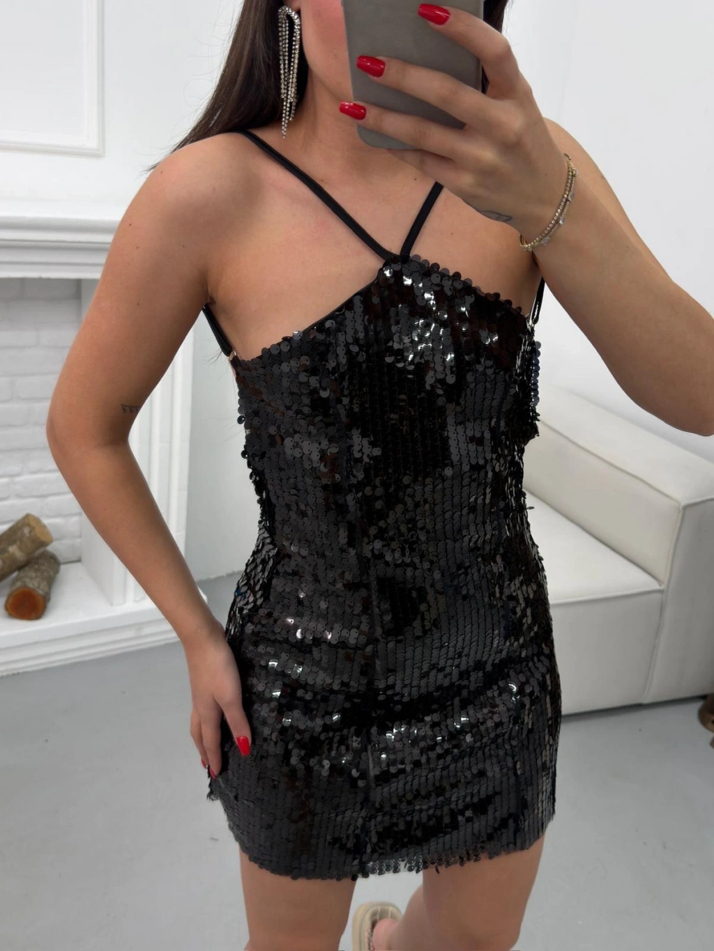 Payetli Sırt Dekolte Elbise - SİYAH