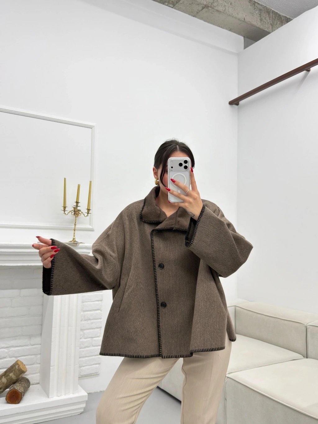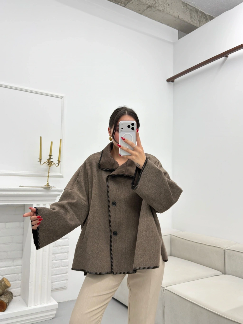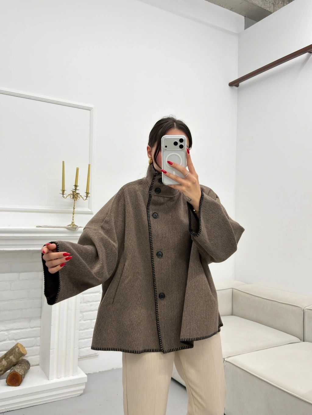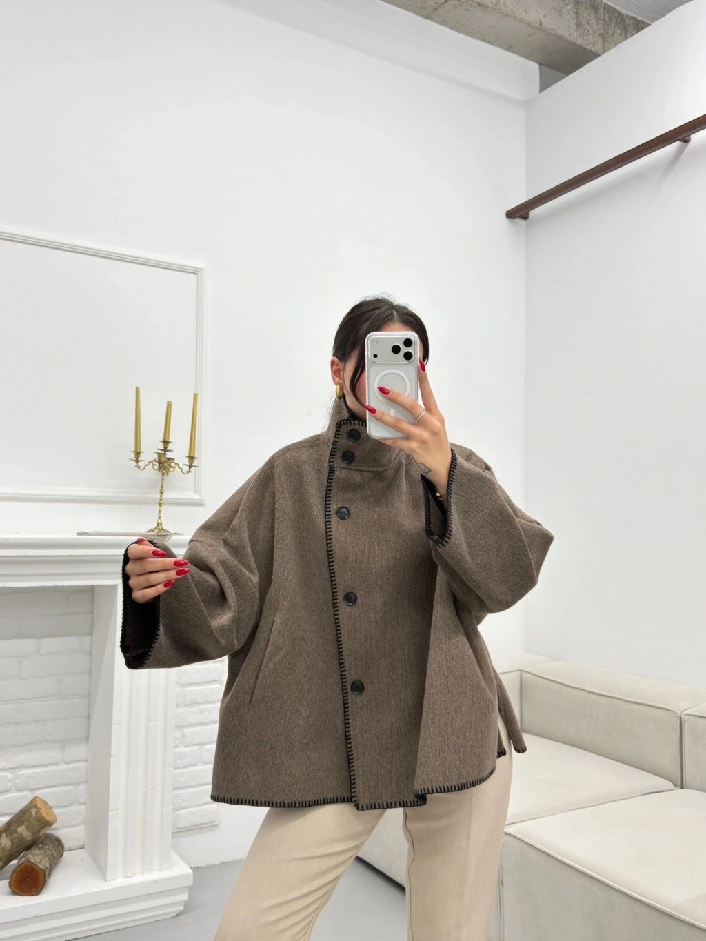 Premium Kaşe Düğmeli Ceket - VİZON