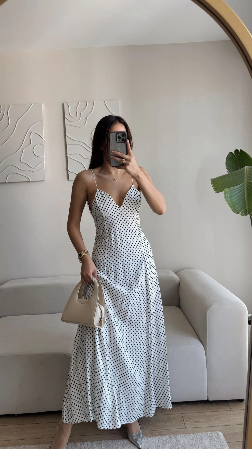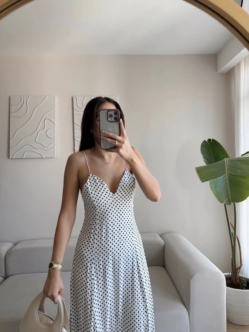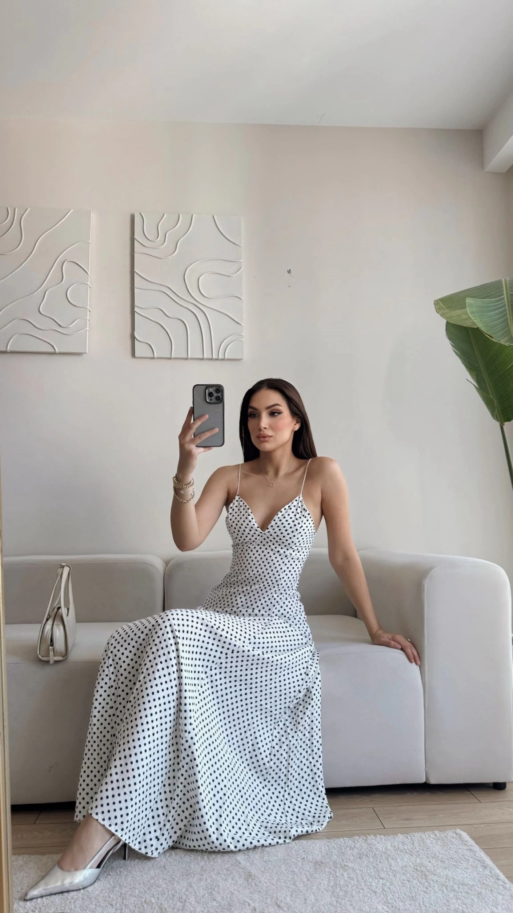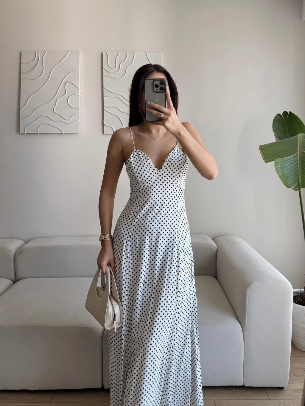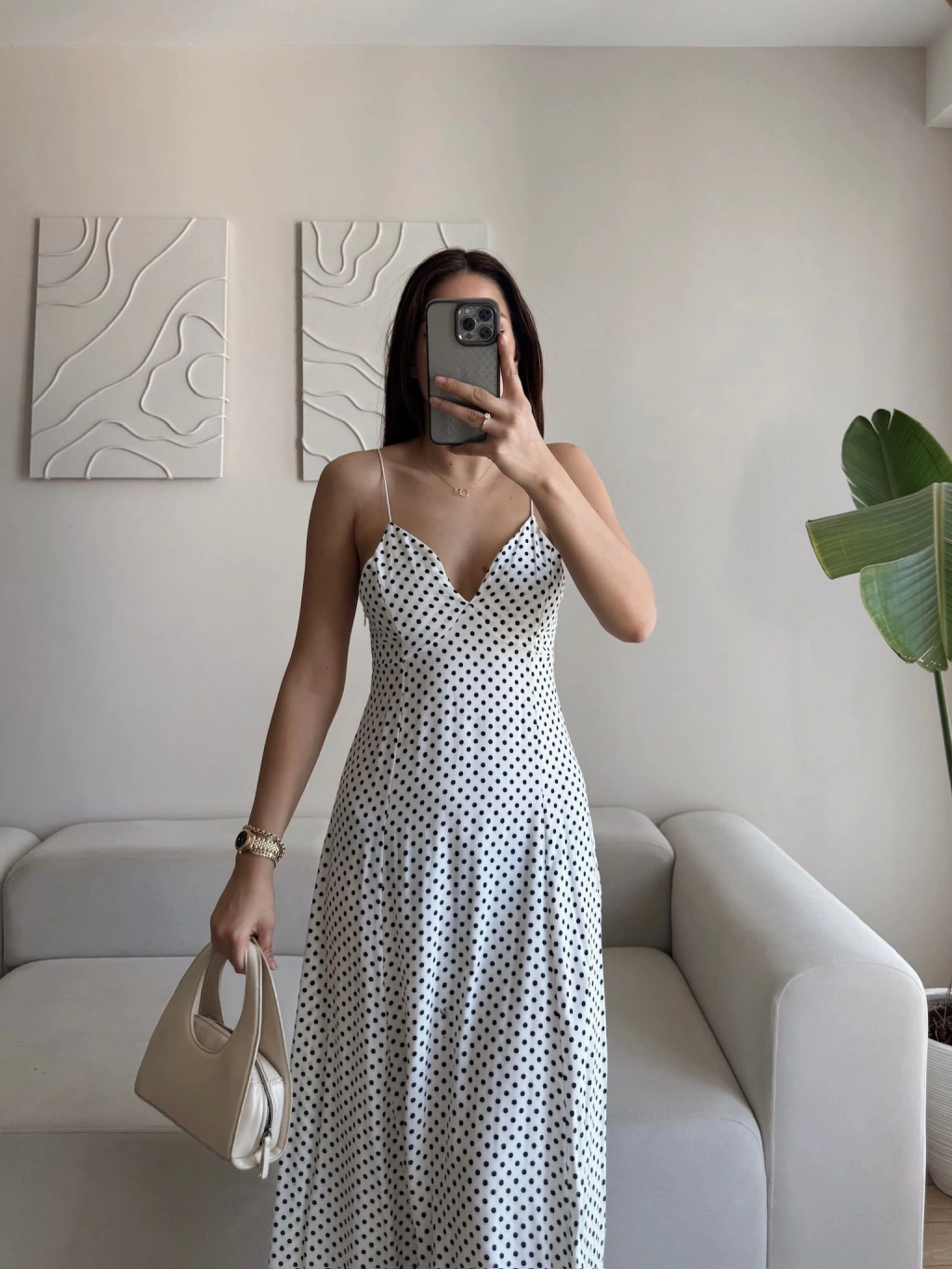 Puantiyeli Askılı Elbise - BEYAZ